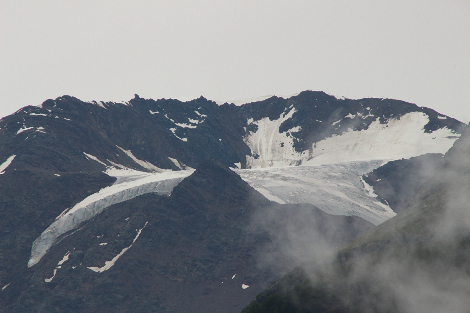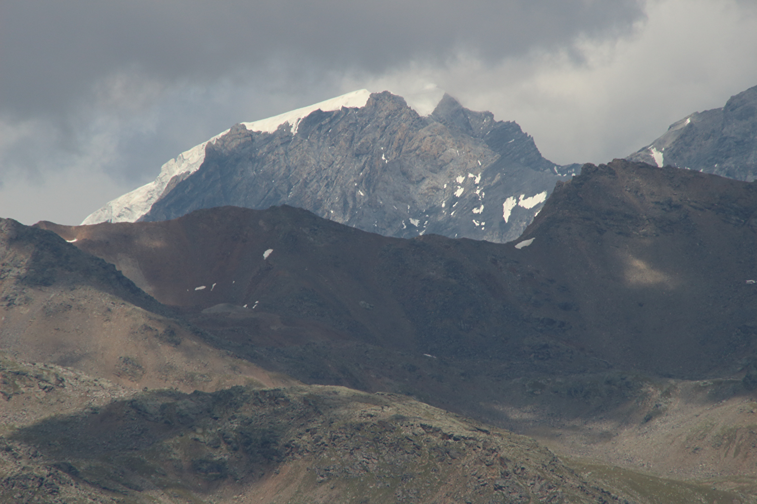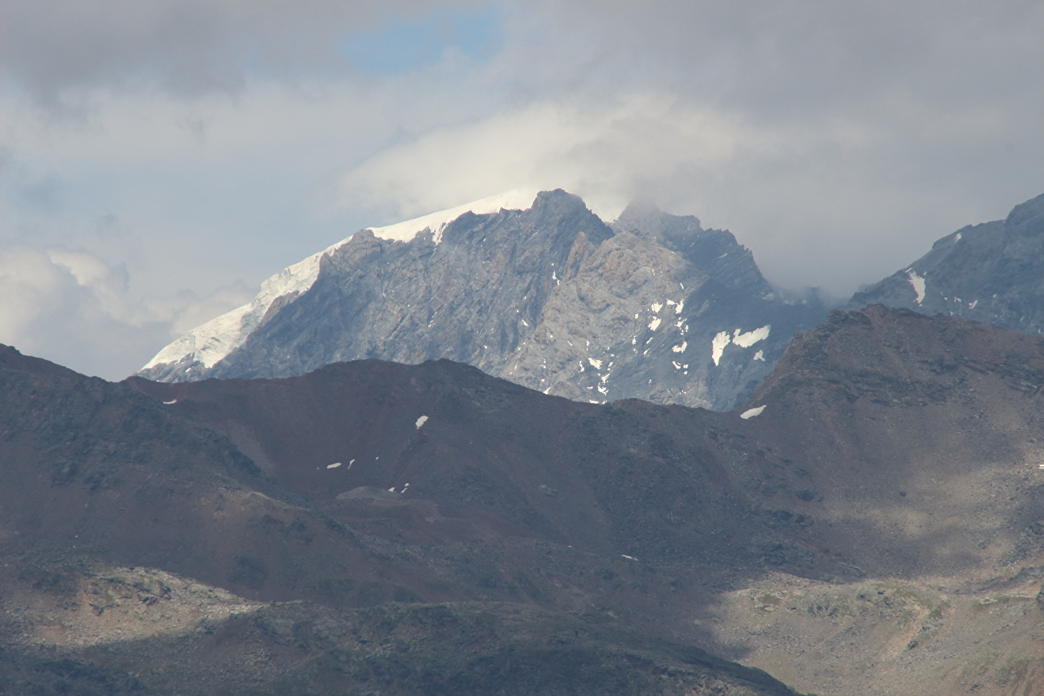 Blick über das Val di Forni auf Monte Pasquale und Monte Cevedale (Gipfel in Wolken) ![]() 300 dpi JPEG |