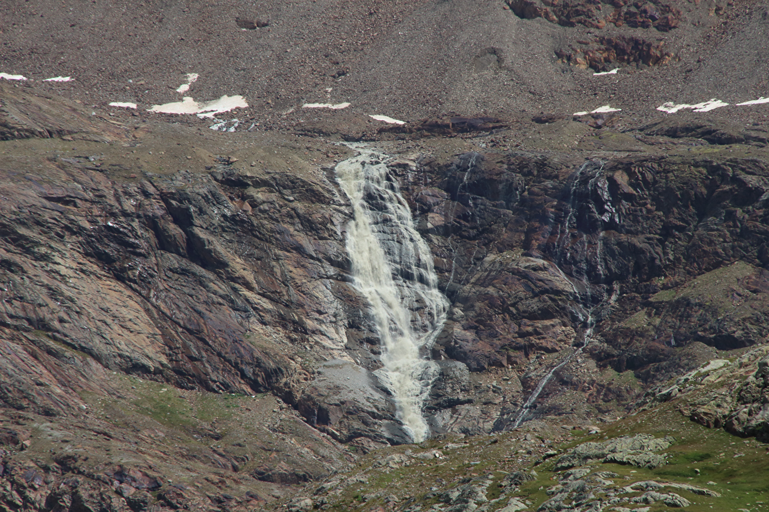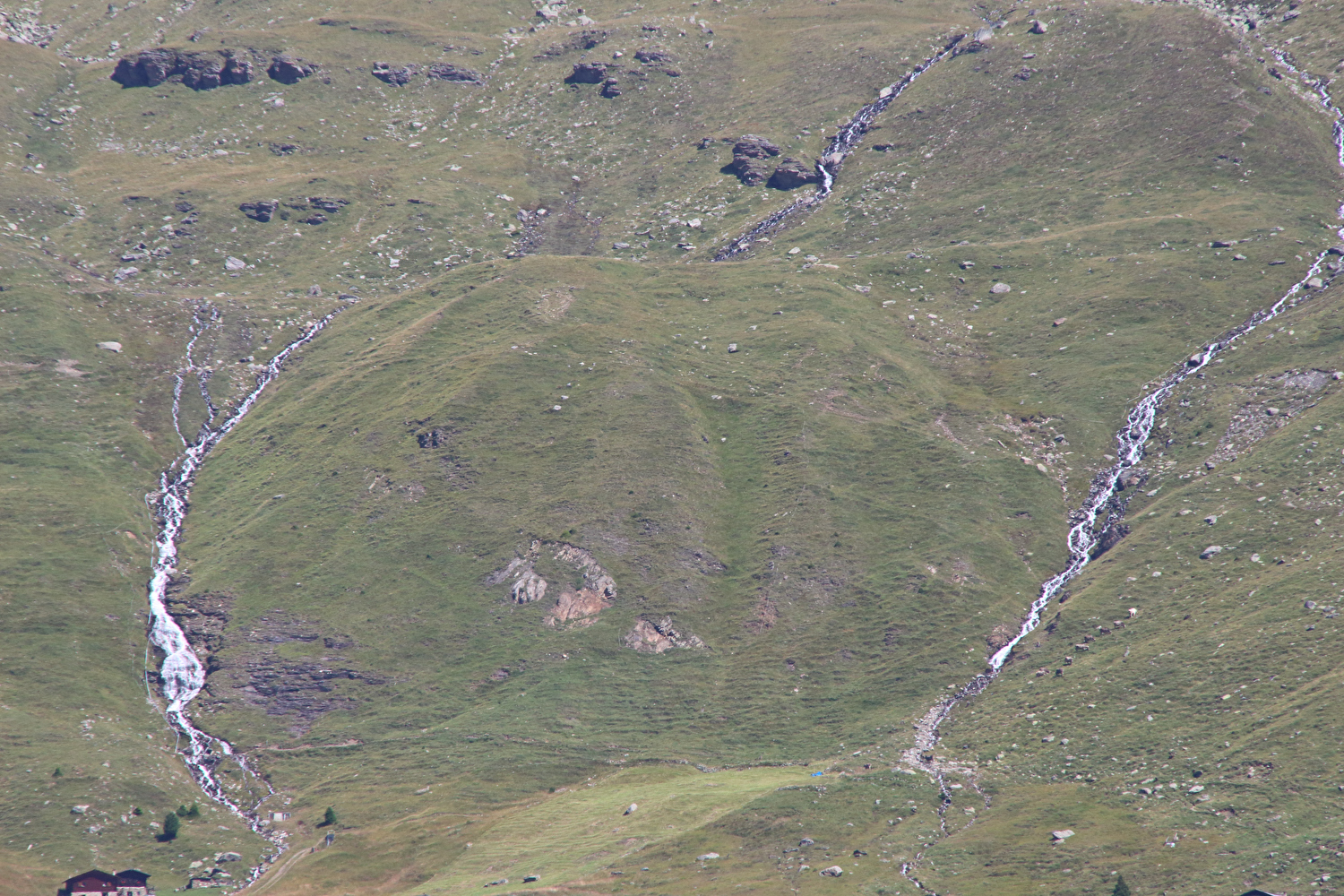 der Torrente del'Alpe, Blick flussabwärts auf Pizzo Tresero mit Vedretta di Tresero und Punta Segnale ![]() 300 dpi JPEG |