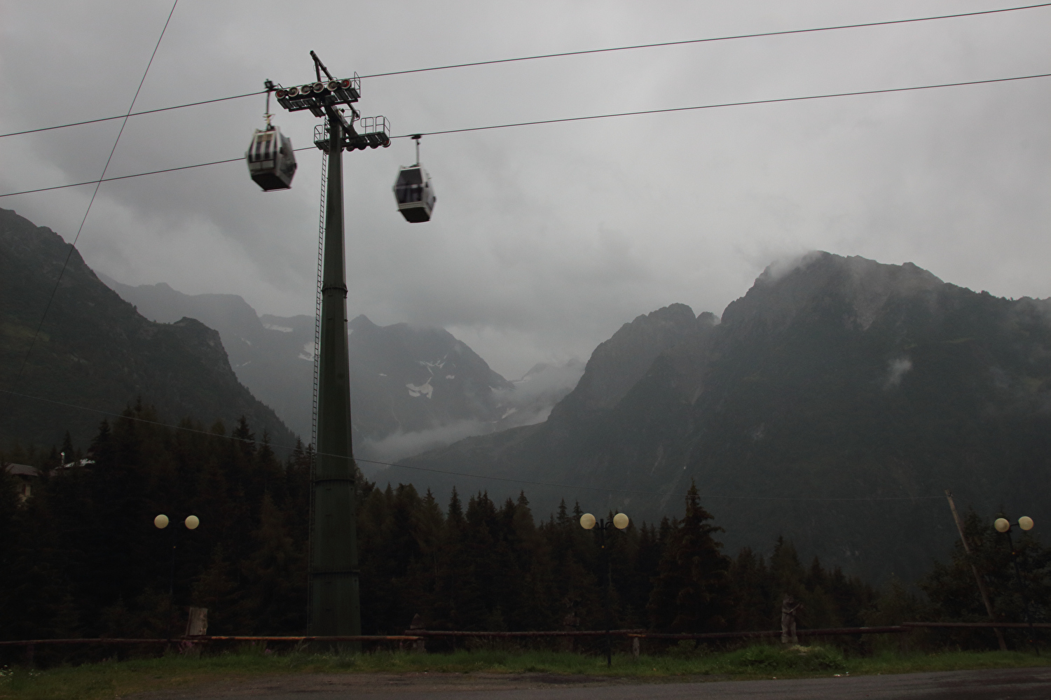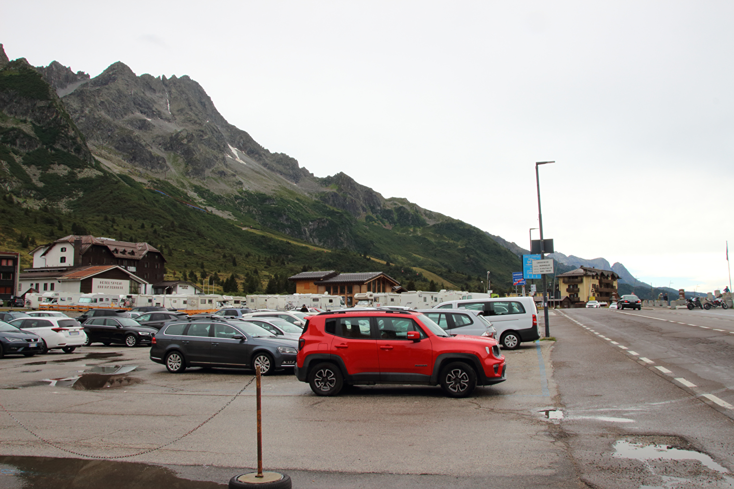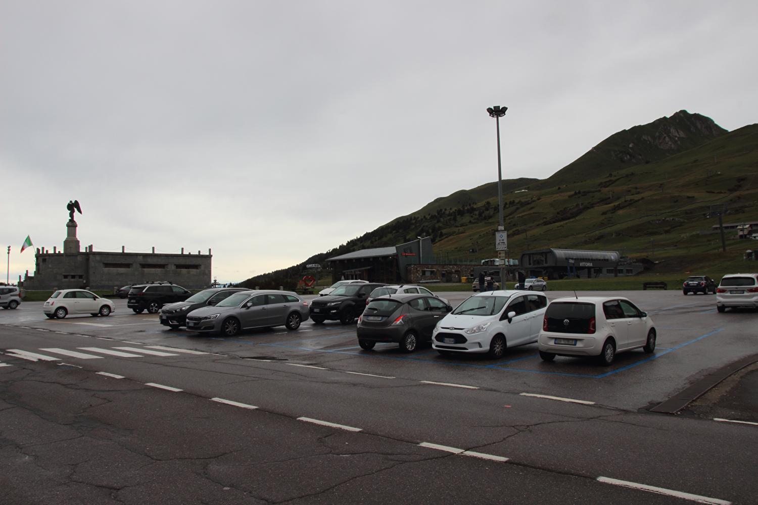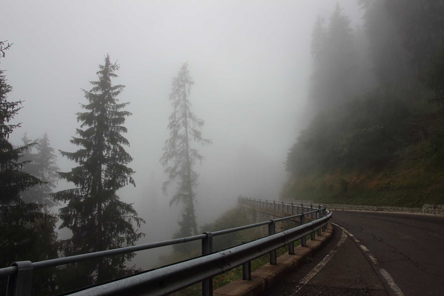Beschreibung | Die Strecke dieser Etappe war bereits vor drei Jahren schon einmal gefahren worden. Dieses Mal endete die Etappe jedoch schon in Mestriago im Val di Sole. Zum Etappenstart schien die Sonne und es wurde schnell wärmer. Aber schon vor dem Erreichen des Abzweigs der Strada Provinciale 29 del Gavia von der Strada Statale 42 del Tonale e della Mendola zogen von Westen kommend über dem Valcamonica dunkle Wolken gefolgt von Regen auf. Als sich wenig später auch von Süden über die Gruppo dell'Adamello kommend Regenwolken zeigten, wurde in der von Ponte di Legno aus gezählten vierten Kehre gehalten und Gepäck und Kamera wurden auf Regenfahrt vorbereitet. Dann fielen auch schon die ersten Tropfen. Da es noch recht warm war, wurden nur Regenjacke und Regen-Helmüberzieher für die Bergauffahrt angelegt. Der Regen intensivierte sich rasch und dann kam auch noch ein Gewitter dazu. Unterhalb der von Ponte di Legno aus gezählten fünften und sechsten Kehre, mit denen die Passtraße eine Talstufe im Valcamonica überwindet, wurde an einem geschlossenen Hotel untergezogen und das Gewitter abgewartet. Nach einer halben Stunde konnte die Fahrt bei starkem Regen fortgesetzt werden. Der Regen hielt bis zur Passhöhe des Passo del Tonale an. Auf der ausgesprochen hässlichen Passhöhe war der Regen dann auch irgendwie egal. Da sich am Westhorizont wieder blauer Himmel zeigte, wurde die Mittagspause auf der Passhöhe etwas in die Länge gezogen. Der Regen hörte während der Mittagspause auf, aber die Wolken blieben, wodurch es entsprechend kalt blieb. Daher erfolgte die Abfahrt ins Val di Sole in langen Klamotten. Trotz Wolken und stellenweise Nebel boten sich einige Blicke auf Berge mit Gletscherresten in der Gruppo dell'Adamello. Val di Sole bedeutet auf Deutsch „Tal der Sonne“, aber die Sonne schimmerte selbst zum Ende der Etappe nur matt durch einen Grauschleier aus Schichtwolken. Etwa ab Fucine abwärts nimmt das Val di Sole deutlich voralpinen Charakter an, und die Straße fällt nur noch gemächlich ab. |