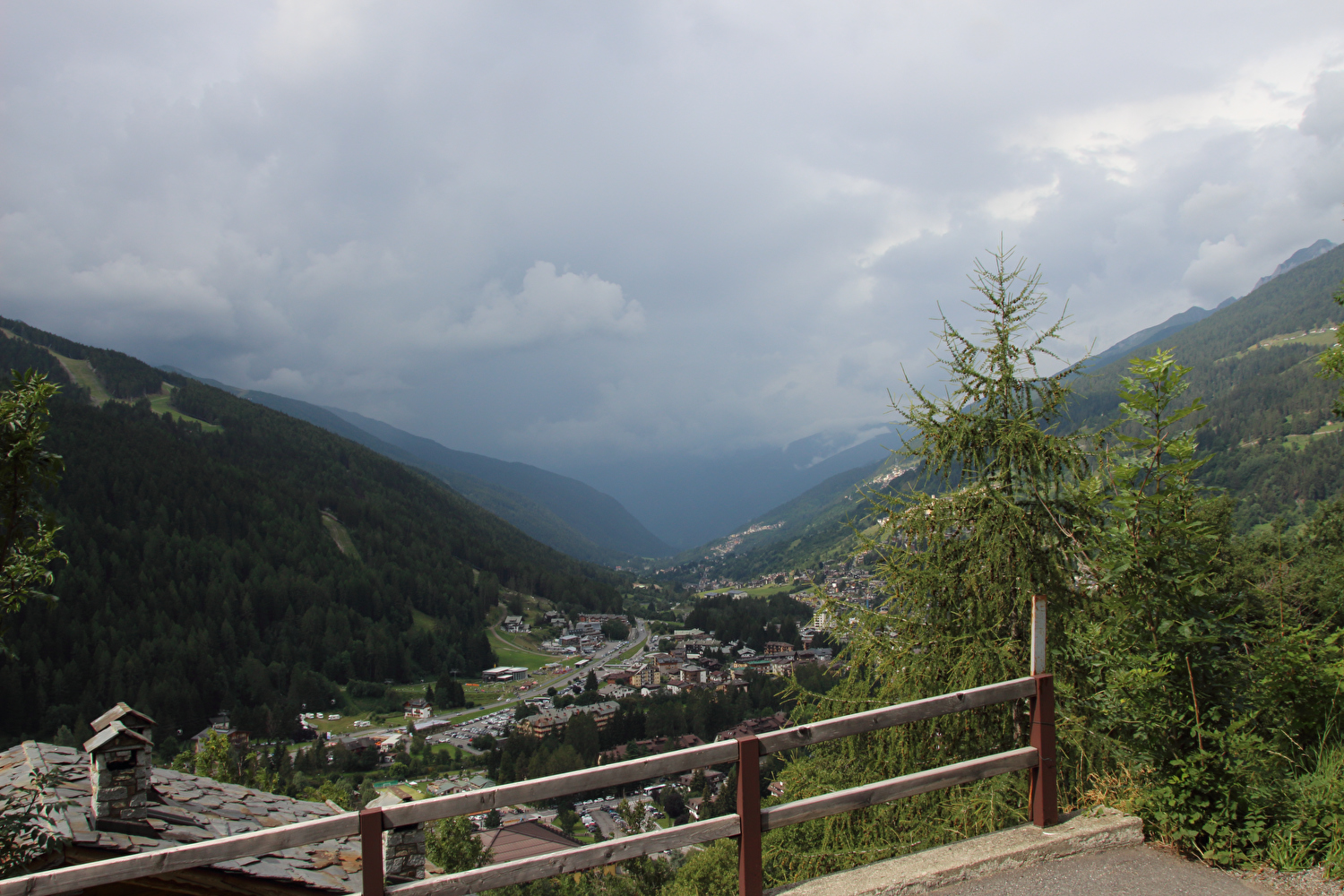 Blick über Ponte di Legno ins Valcamonica talabwärts ![]() 300 dpi JPEG |