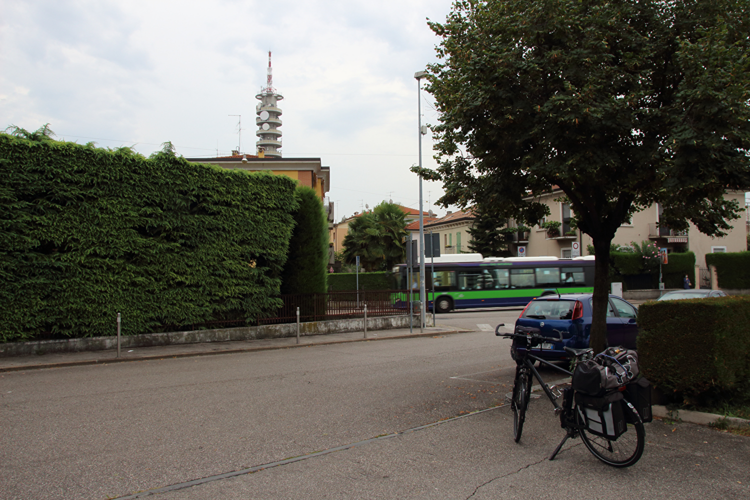 Beschreibung | Schluss, Aus, Ende, vorbei! Die erste vollständige Alpenüberquerung in Nord-Süd-Richtung war nun Vergangenheit. Immerhin konnte diese Tour trotz Coronavirus-Pandemie wie geplant gefahren werden. Was auf dem Fahrrad 14 Tage (Westufer des Tegernsees bei Reit → Garda; beides keine Übernachtungsorte), wenn auch mit dem einen oder anderen Umweg über vier für diese Alpenüberquerung in Nord-Süd-Richtung geografisch nicht notwendige, für maximalen Fahrradfahrspaß aber zwingend erforderliche Bergpässe, dauerte, erledigte der Fernverkehrszug in der Gegenrichtung (Tunnel bei Chiusa di Verona → Kiefersfelden; beides keine Halte dieses Zuges) in knapp 5 Stunden. Die Bahnstrecke Ferrovia del Brennero / Brennerbahn, die Verona mit Innsbruck verbindet, folgt zunächst dem Lauf der Adige / Etsch. Mit der Durchquerung eines Tunnels im Bereich der Chiusa di Verona (Deutsch historisch: Veroneser Klause) werden von Süden kommend die Alpen erreicht. Ab Bozen / Bolzano folgt die Bahnstrecke dem Verlauf der Eisack / Isarco bis zum Brennerpass/ Passo del Brennero. Dort wird die Grenze von Italien nach Österreich überquert. Die Bahnstrecke folgt nun dem Verlauf der Sill bis Innsbruck. Dort wechselt der Zug auf die Bahnstrecke Unterinntalbahn, die Innsbruck mit Kufstein verbindet und an der Grenze zwischen Österreich und Deutschland bei Kufstein endet. Dort wechselt der Zug auf die Bahnstrecke Rosenheim–Kufstein Grenze. In Kiefersfelden werden die Alpen nach Norden fahrend verlassen. Der EC nach München Hbf. verlief Verona Porta Nuova mit nur 4 min Verspätung. Zunächst war er recht leer. Ab Bozen / Bolzano füllte er sich aber zunehmend, wurde aber nicht überfüllt. Bis zum Endpunkt München Hbf. blieb er gut gefüllt, womit sich der derzeit gebotene Abstand zwischen den Fahrgästen erledigt hatte. So nervig der „Maskenball“ im Zug auch war, erfüllten die Mund-Nase-Bedeckungen, die soweit sichtbar von allen Fahrgästen und dem Zugpersonal getragen wurden, immerhin ihren Zweck. Im Nachgang der Bahnabreise stellten sich keine Symptome von COVID-19, Grippe, Erkältung oder irgendeiner anderen durch Tröpfcheninfektion übertragbaren Seuche ein. München Hbf. wurde pünktlich erreicht. Dort reichte die Umsteigezeit zum Kauf einer warmen Mahlzeit. Der Zug nach Nürnberg Hbf. sah nicht nach einem ICE4 aus. An dem Wagen, der eigentlich das Fahrradabteil enthalten sollte, fehlte ein entsprechendes Symbol. An der Tür zu diesem Wagen wartete aber bereits ein Zugbegleiter und erklärte kurz die Situation. „Gebucht ist gebucht“ – und so konnte die Fahrt in dem Zug fortgesetzt werden. Für die Fahrradmitnahme waren zwei Sechserabteile als Sonderabteile für Personen gesperrt und die Tische darin hochgeklappt, sodass dort jeweils einige Fahrräder rein passten. Dieser Zug war wieder recht leer. Nürnberg Hbf. wurde pünktlich erreicht. In Nürnberg war ein fahrplanmäßiger Aufenthalt von fast anderthalb Stunden. Eine kleine Fahrradrunde durch Nürnberg zur Überbrückung der Wartezeit kam aber nicht in Frage, denn ein Verpassen des Anschlusszuges nach Hannover Hbf. etwa wegen einer Fahrradpanne hätte sehr leicht zu einem weiteren Reisetag führen können. Bei einem Ausfall des Zuges von Nürnberg Hbf. nach Hannover Hbf. wäre eine Fahrt mit Nahverkehrszügen am selben Tag gerade noch möglich gewesen, Hannover Hbf. wäre nachts mit dem letzten Zug ab Göttingen Hbf. erreicht worden. Bei so einer Fahrt mit Nahverkehrszügen hätte aber bereits eine einzige Verspätung mit Verpassen eines Anschlusses zu einer Übernachtung unterwegs geführt. Der ICE4 von Nürnberg Hbf. nach Hannover Hbf. blieb auf der gesamten Strecke recht leer. Hannover Hbf. wurde mit 4 min Verspätung erreicht – seltsame unerklärbare Fernwirkung von Verona Porta Nuova aus? Diese Tour war seit langem mal wieder eine, bei der weder bei der Anreise noch bei der Abreise per Bahn problematische Verspätungen, verpasste Anschlüsse oder gar Zugausfälle auftraten. Die geplante Bahnabreise war nicht ganz ohne Risiko. Der Ausfall des Zuges von Verona Porta Nuova nach München Hbf. hätte unweigerlich zu einer Übernachtung in Österreich oder Süddeutschland und somit zu einem weiteren Bahnreisetag geführt. Die Alpentour 2020 war mit 14 Etappen die Tour mit der bis dato längsten Reisezeit. Sie führte über den bis dato höchstgelegenen Fahrrad fahrend erreichten Punkt, den Passo dello Stelvio (2757 m s.l.m.), der der zweithöchste Alpenpass mit einer durchgehend asphaltierten Straße ist. Höher liegt nur noch der Col de l’Iseran in Frankreich, dessen Passhöhe 7 m höher liegt als die des Passo dello Stelvio. Alle noch höher gelegenen Alpenpässe erfordern ein geländegängiges Fahrrad oder sind nur zu Fuß passierbar. Alle Straßen in den Alpen, die auf Höhen oberhalb des Col de l’Iseran führen, sind für nicht geländegängige Fahrräder Sackgassen. Da sich Etappen mit einer Sackgasse als Bergziel bei den Alpentouren bisher nicht bewährten und eine Fahrt über den Col de l’Iseran und somit durch Frankreich zumindest alltagstaugliche Grundkenntnisse der französchen Sprache erfordert, dürften Höhen oberhalb des Passo dello Stelvio nur schwierig erreichbar sein. Diese Tour beinhaltete die bis dato größte Höhendifferenz (2698 m) zwischen dem „Dach der Tour“ auf der Passhöhe des Passo dello Stelvio (2757 m s.l.m.) und dem „Keller der Tour“ in Verona (59 m s.l.m.). Für eine größere Höhendifferenz müsste eine Tour am Unterlauf des Po oder an der Mittelmeerküste beginnen oder enden und über den Passo dello Stelvio führen, wobei ein Beginn oder Ende an der Mittelmeeerküste auch nur weitere 59 m Höhendifferenz, dafür aber zusätzliche Flachetappen brächte. Die Übernachtung im Berghotel Franzenshöhe (2188 m s.l.m.) war die bis dato höchstgelegene. Diese Tour war die erste vollständige Alpenüberquerung gefahren in Nord-Süd-Richtung beginnend am Westufer des Tegernsees bei Re