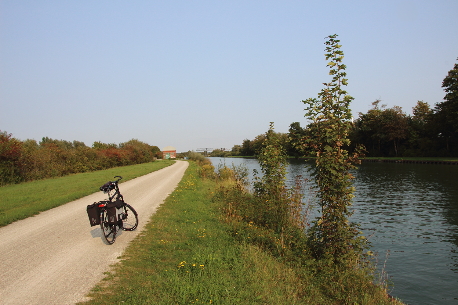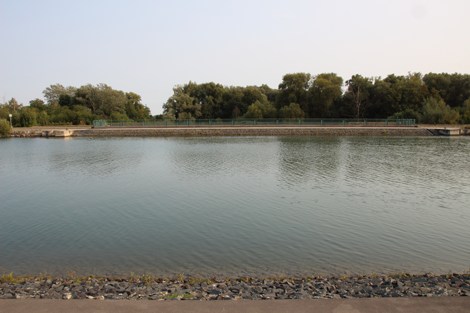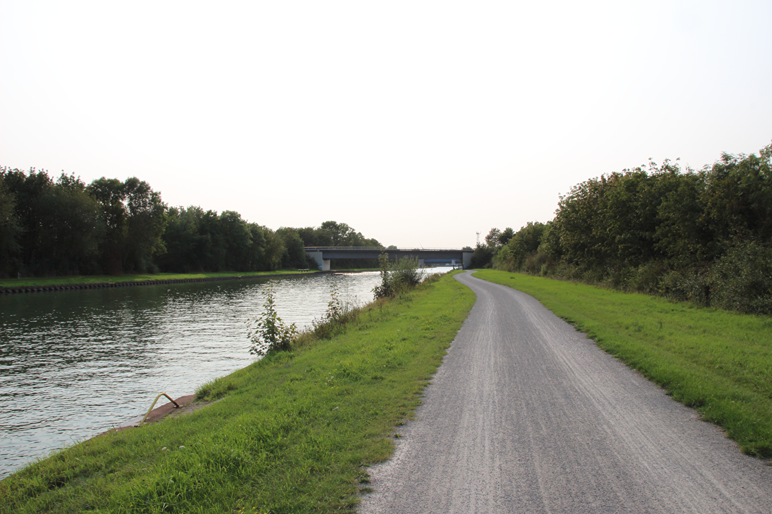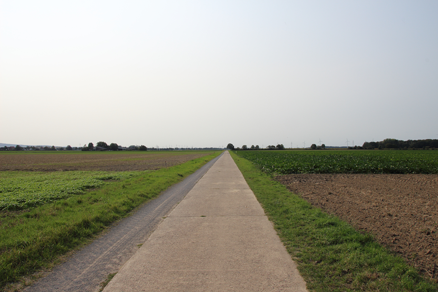 Beschreibung | An diesem Tag war der Himmel trotz stabiler Hochdruckwetterlage milchig eingetrübt. Anders als beim Durchzug einer Warmfront, bei der der Himmel in allen Richtungen recht gleichmäßig durch Schichtwolken eingetrübt ist, zeigte sich an diesem Tag die Trübung in Sonnennähe stärker als in Sonnenferne. Ursache für die Trübung waren Rußpartikel, die von den schon seit geraumer Zeit lodernden Waldbränden im Südwesten der USA in die Atmosphäre der Nordhalbkugel der Erde eingetragen wurden. An diesen Rußpartikeln kondensierte reichlich Wasserdampf, was zu der milchigen Trübung führte. Dem entsprechend verhalten waren die Temperaturen. Zudem blies ein recht kräftiger Wind. Daher wurde nur eine kurze Tour gefahren. In Dedensen fiel wegen der nun schon sinkenden Temperatur die Entscheidung für die Umkehr. Diese Route verlief unter anderem über die Trogbrücke des Mittellandkanals über die Leine, die bis dato noch nicht gefahren worden war. Auf dem Leineradweg war diese Trogbrücke hingegen schon zig mal unterquert worden. Nach deren Überquerung folgte auch dieses Mal die Unterquerung, um die Tour nicht weiter in die Länge zu ziehen. Die Trogbrücke ist als Doppeltrogbrücke ausgeführt. Der Mittellandkanal wird in zwei baulich getrennten Fahrrrinnen auf der Brücke geführt. In Kanalrichtung sind die beiden Überbrückungen der Leine und des hier als Wirtschaftweg ausgebauten Leineradwegs durch eine Erdaufschüttung, die als Brückenlager dient, voneinander getrennt. |