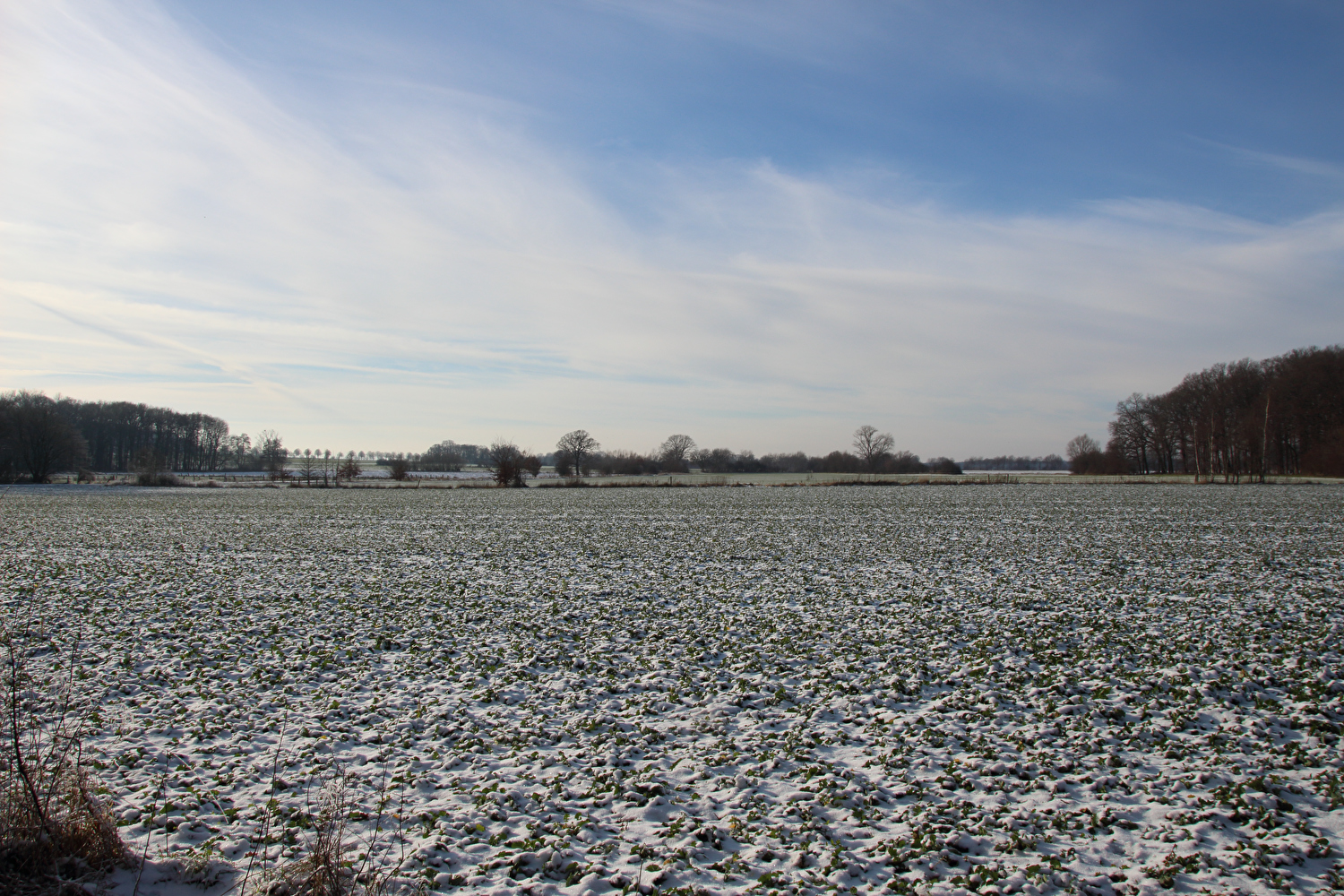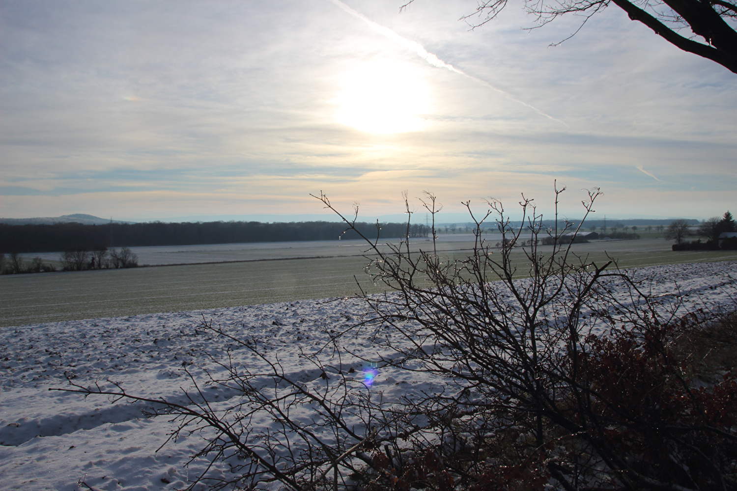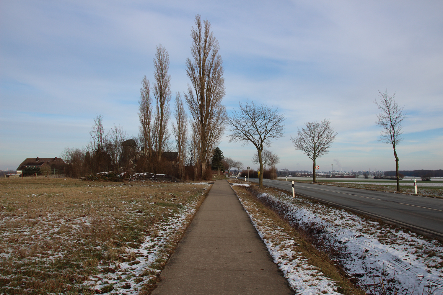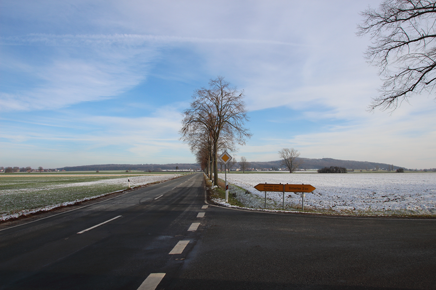 Beschreibung | Der widerlich weiße Winter hatte Einzug gehalten. Dazu gibt es ein passendes Lied (Text & Noten). Da eine Fahrt über den Benther Berg geplant war, wurde mit dem geländegängigen Fahrrad gefahren. Der ziemlich vereiste Weg südlich von Velber ließ aber schon Böses erahnen. Am Nordhang des Benther Berges zeigte sich der Weg bergauf derart vereist, dass von einer Fahrt über den an diesem Tag zudem reichlich überbevölkerten Benther Berg abgesehen wurde. Die Tour wurde daher „auf Asphalt“ fortgesetzt, wofür das geländegängige Fahrrad nicht ideal war. Pünktlich zu Tourbeginn schoben sich Schleierwolken vor die Sonne. Die schien da zwar durch, aber die Temperatur sank schnell von +4 °C auf +2 °C und lag bei Tourende noch bei +1 °C, also viel zu niedrig für eine längere Tour. |