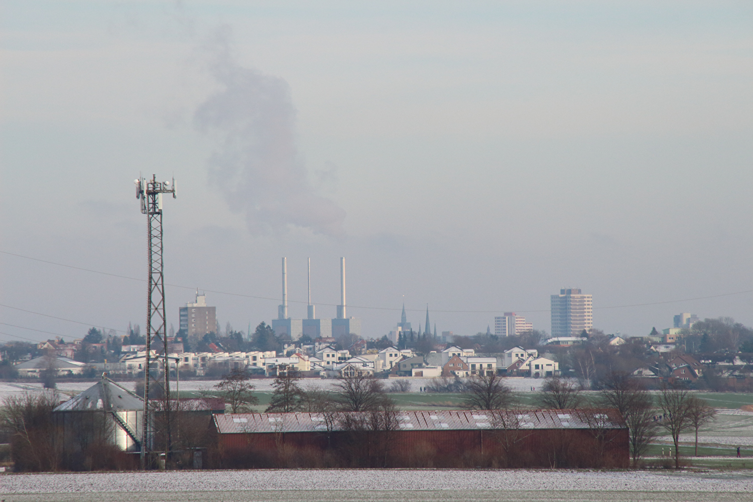 … Blick in die Norddeutsche Tiefebene und zum Gemeinschaftskraftwerk Hannover … ![]() 300 dpi JPEG |