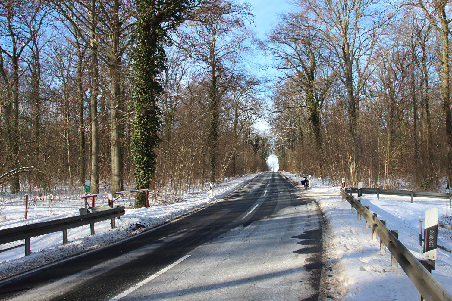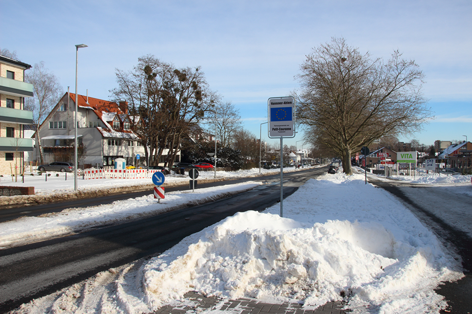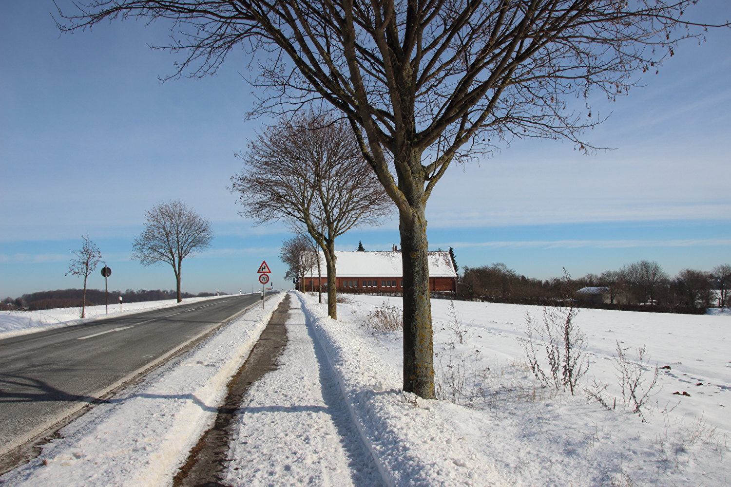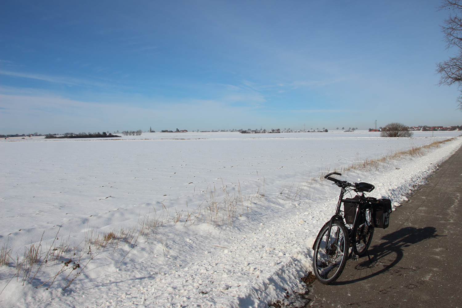Beschreibung | Nachdem schon Ende Januar der Winter ein erstes Vorspiel gegeben hatte, war der weiße Alptraum nun wahr geworden. Noch kälter, noch weißer und vor allem noch viel widerlicher hatte der Winter zu Wochenbeginn die Landschaft mit einem dicken weißen Leichentuch überzogen. Dazu gibt es ein passendes Lied (Text & Noten). Die Sonne gab es an diesem Tag also nur mit Schnee. Nach den trüben Tagen zuvor ließ das sonnige Wetter aber keine Alternative zu einer kältebedingt kurzen Tour. Gefahren wurde auf dem Alltagsfahrrad mit Spikes-Winterreifen, die an einigen Stellen auf Fahrradwegen auch gebraucht wurden. Da in den Wohngebieten in Hannover kein Winterdienst stattfand, mussten die ersten und letzten 150 m der Tour schiebend zurückgelegt werden, da auf dem über 10 cm hohen zerfahrenen Schnee auf der Straße die Spikes-Winterreifen keinen Halt fanden. |