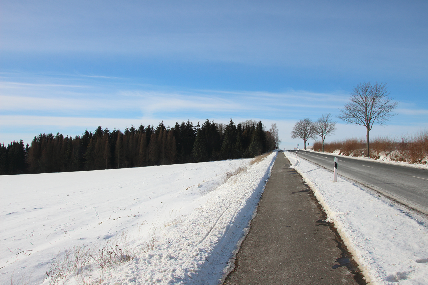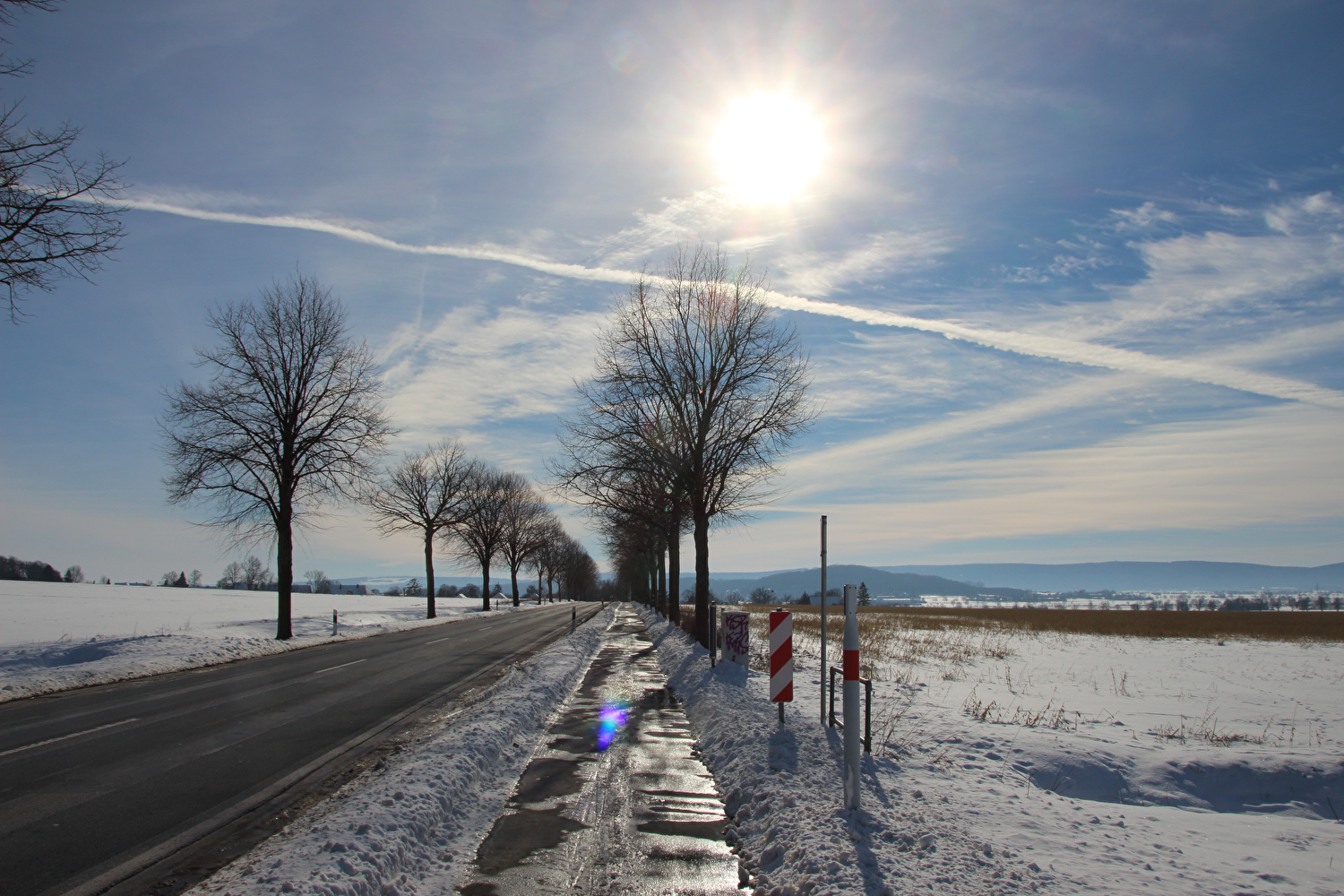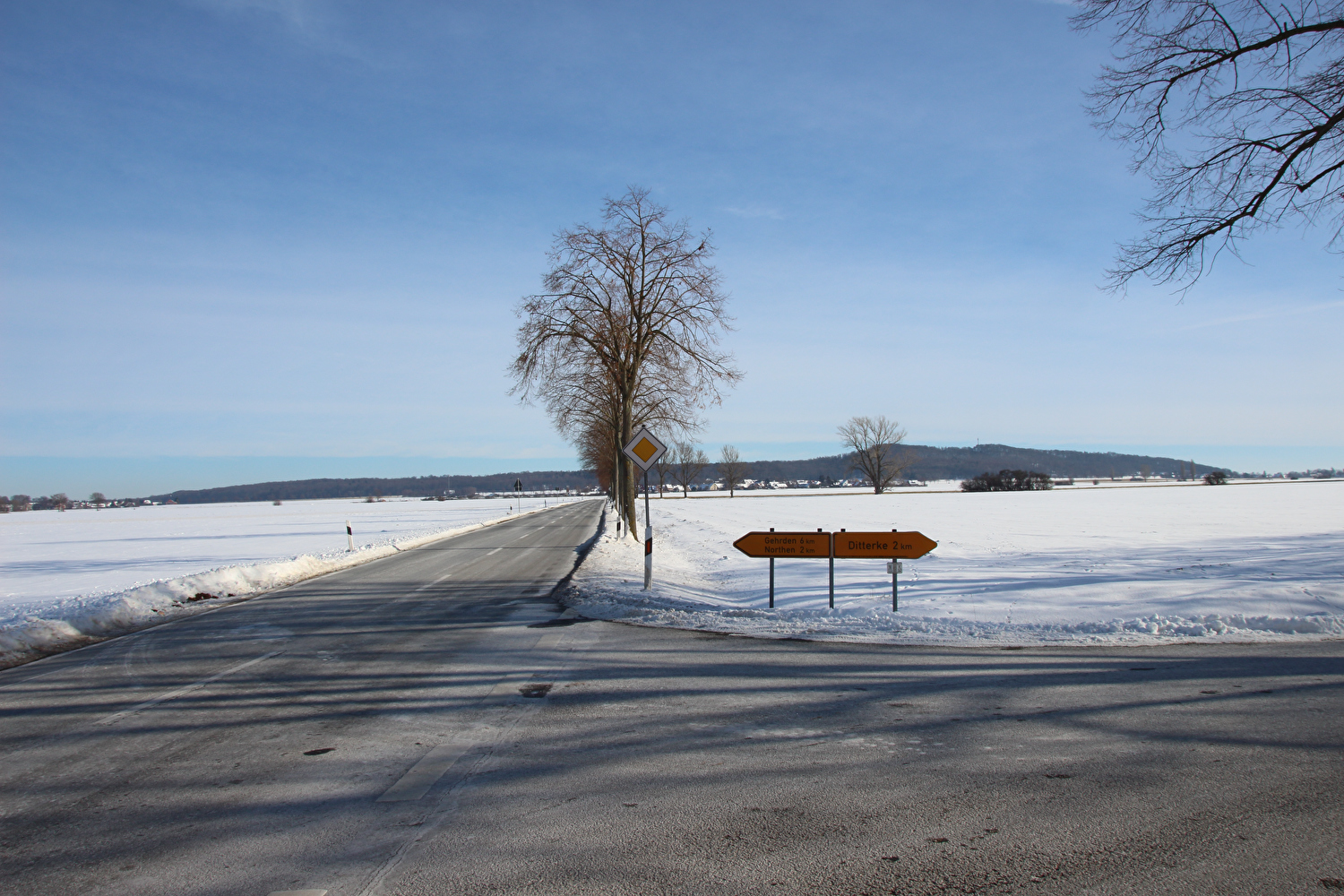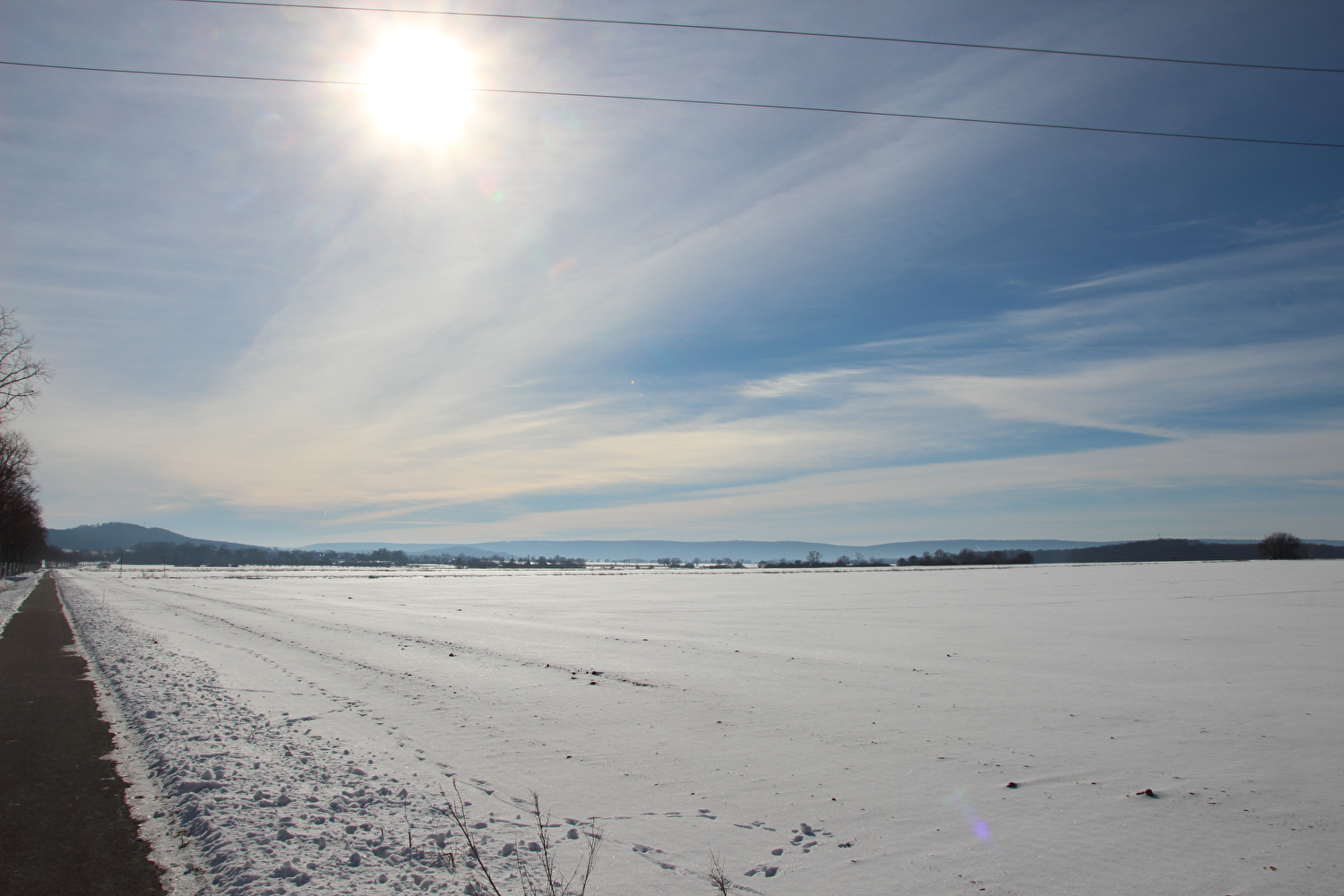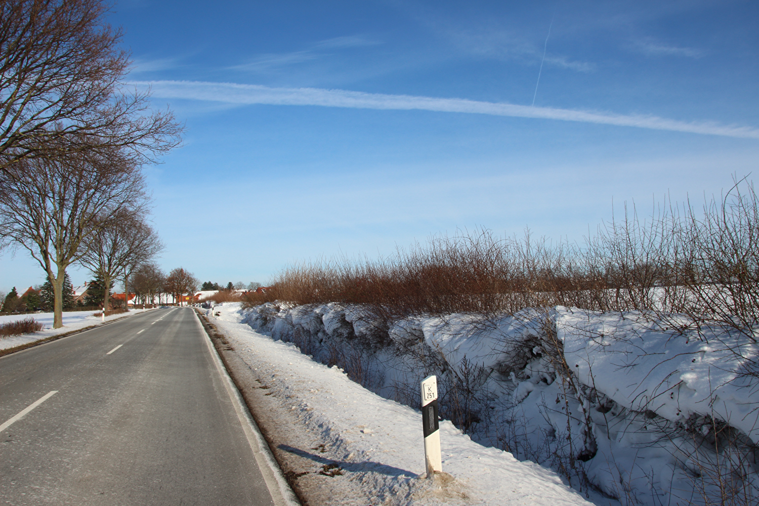 Beschreibung | Nachdem schon Ende Januar der Winter ein erstes Vorspiel gegeben hatte, war der weiße Alptraum nun wahr geworden. Noch kälter, noch weißer und vor allem noch viel widerlicher hatte der Winter zu Wochenbeginn die Landschaft mit einem dicken weißen Leichentuch überzogen. Dazu gibt es ein passendes Lied (Text & Noten). Die Sonne gab es an diesem Tag also nur mit Schnee. Nach den trüben Tagen zuvor ließ das sonnige Wetter aber keine Alternative zu einer kältebedingt kurzen Tour. Gefahren wurde auf dem Alltagsfahrrad mit Spikes-Winterreifen, die an einigen Stellen auf Fahrradwegen auch gebraucht wurden. Da in den Wohngebieten in Hannover kein Winterdienst stattfand, mussten die ersten und letzten 150 m der Tour schiebend zurückgelegt werden, da auf dem über 10 cm hohen zerfahrenen Schnee auf der Straße die Spikes-Winterreifen keinen Halt fanden. |