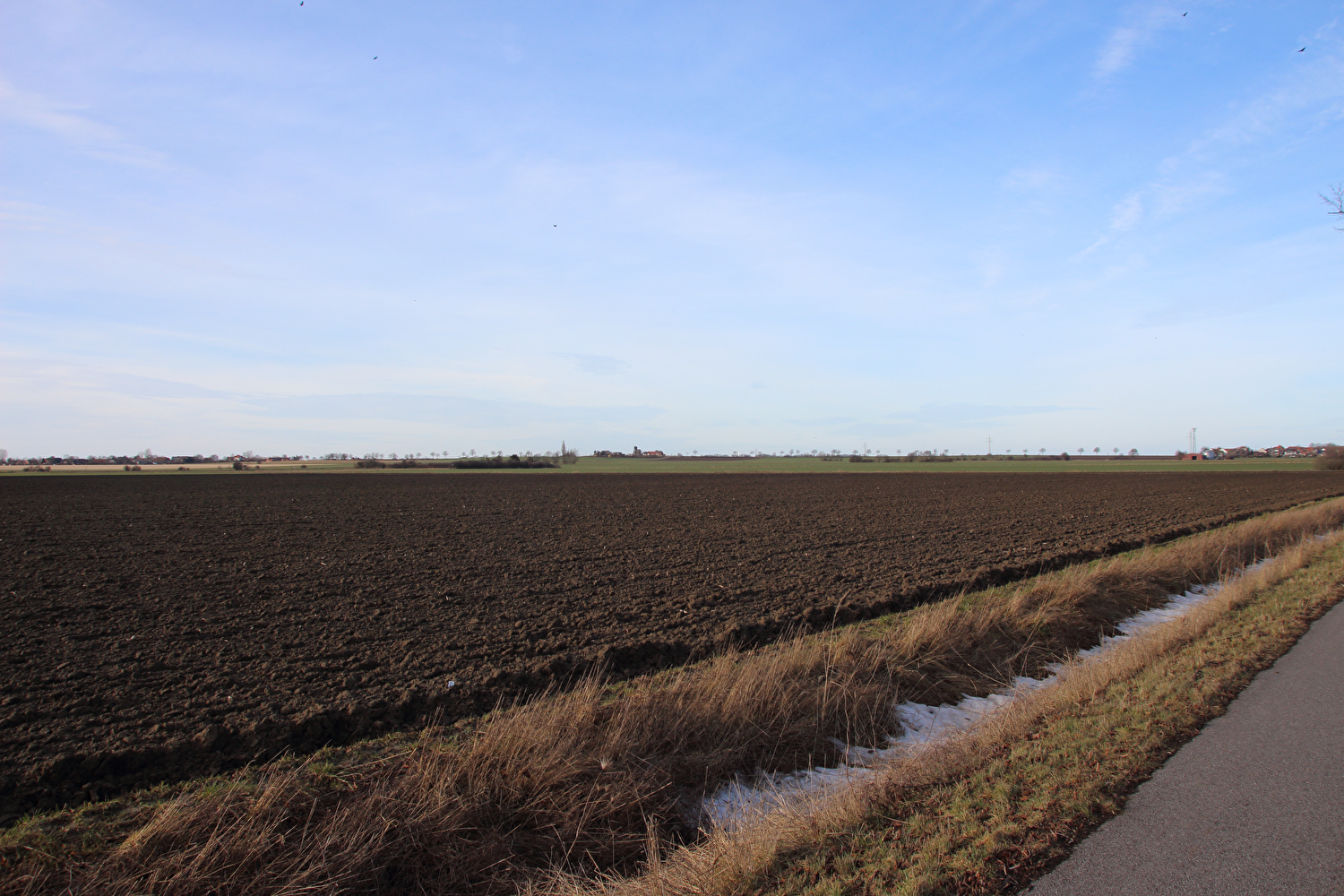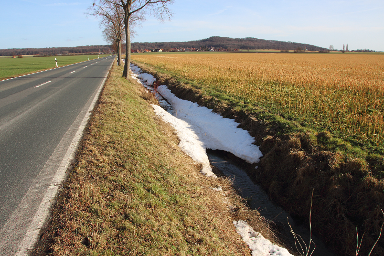 Beschreibung | Eine warme südliche Luftströmung hatte den weißen Alptraum binnen weniger Tage beendet. Daher konnte wieder auf dem Reiserad gefahren werden. Trotz Sonnenschein waren die Temperaturen aber noch recht verhalten, weshalb es bei einer kurzen Tour blieb. Die Fernsicht war zum Ende der Tour hin extrem gut, der Brocken im Harz zeigte auf die Entfernung ungewöhnlich viele Details. |