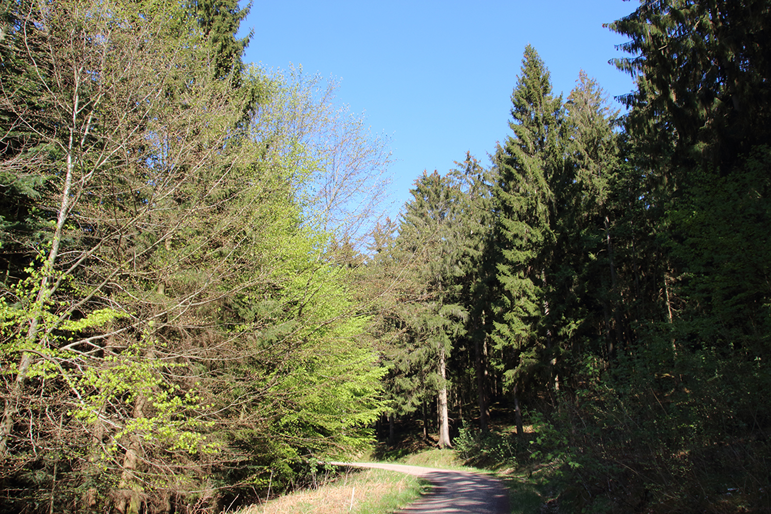 Beschreibung | Wie schon am Vortag blieb es für Anfang Mai zu kalt. Lediglich die nun schon recht hoch stehende Sonne an diesem Tag vermittelte ansatzweise Frühlingswärme. Somit konnte endlich mal wieder bergauf gefahren werden. Wegen der Coronavirus-Pandemie wurde eine Tour ohne Bahnan- und -abreise gewählt, womit bergauf nur eine Deistertour auf dem geländegängigen Fahrrad in Frage kam. Zeitweise schoben sich während der Tour Wolken vor die Sonne, wodurch es dann recht frisch wurde. Der Laubaustrieb an Laubbäumen und Sträuchern war trotz der Kälte recht weit fortgeschritten, da der April zwar kalt aber sonnig war. |