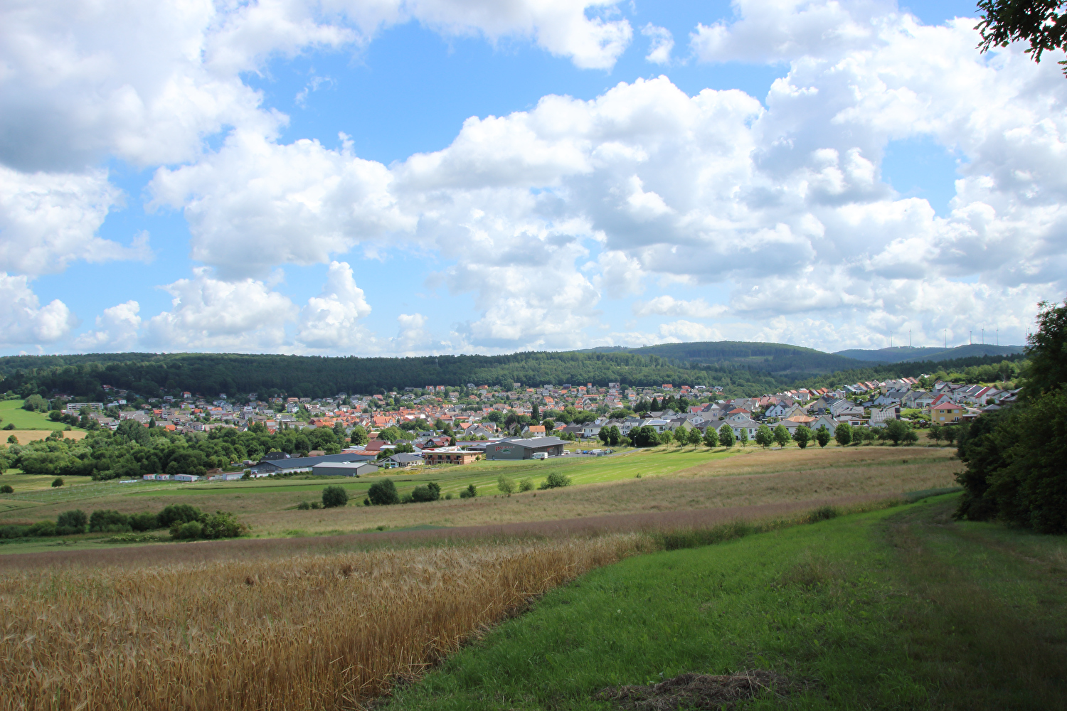 dritter Sattelpunkt der Etappe zwischen Vollmarshausen und Wellerode, Blick auf Wellerode ![]() 300 dpi JPEG |