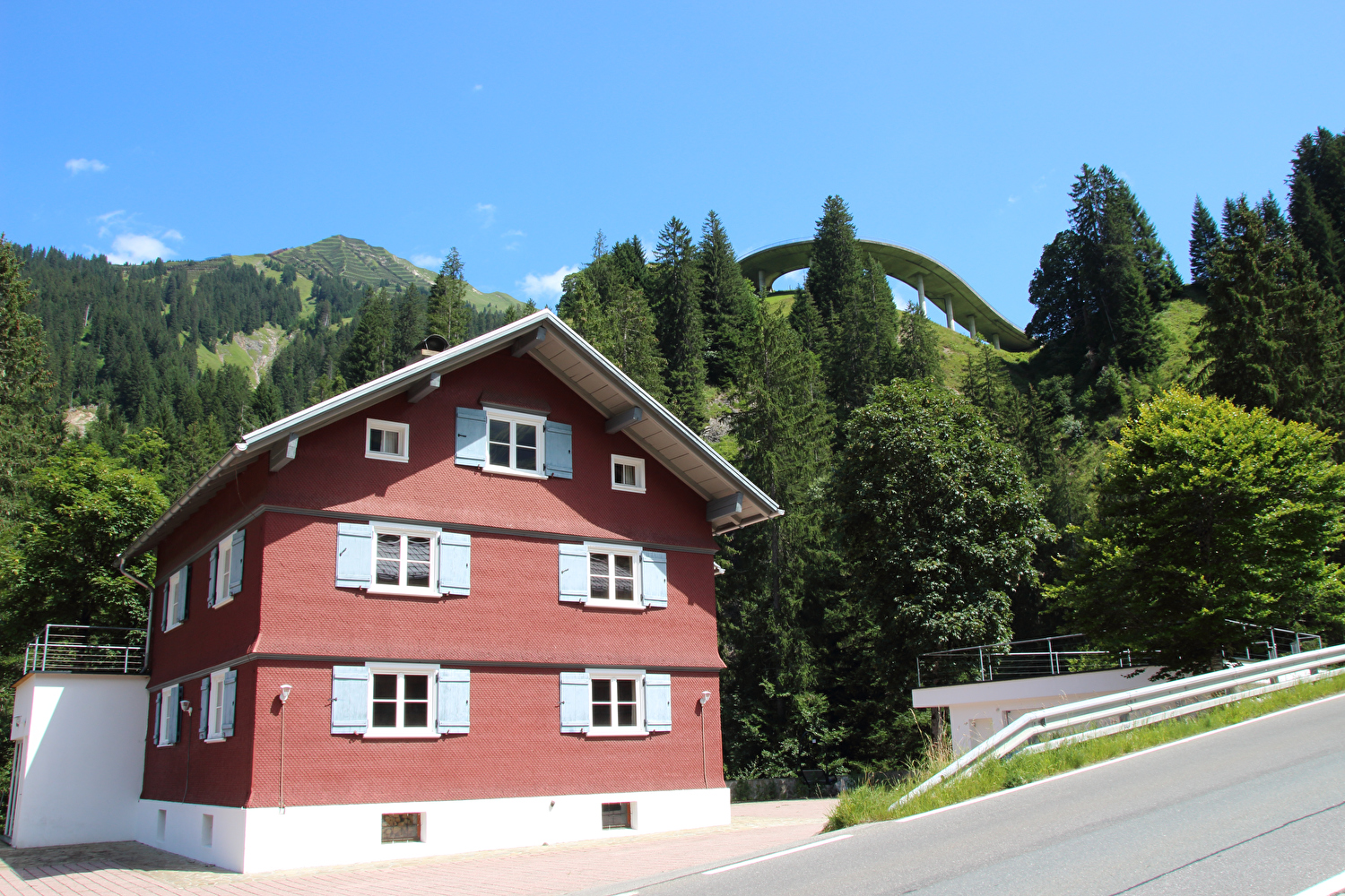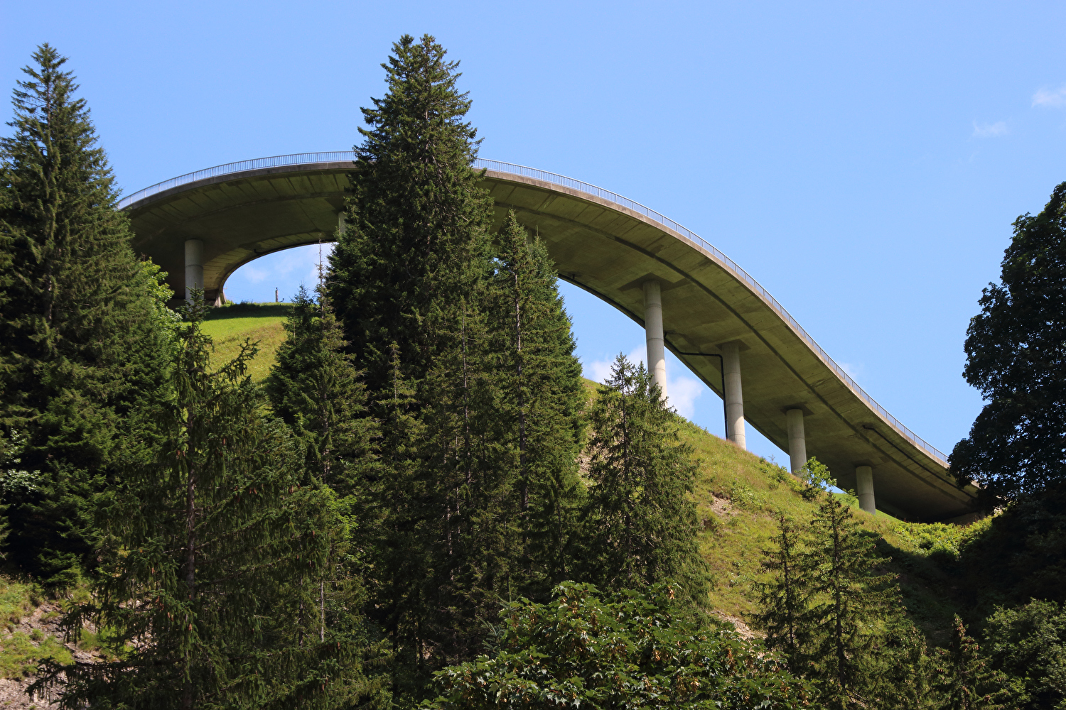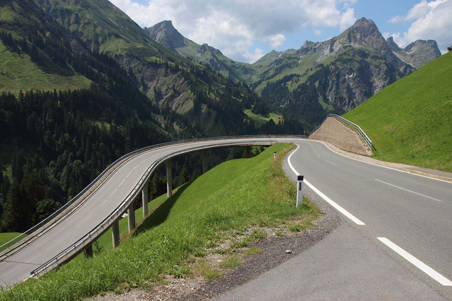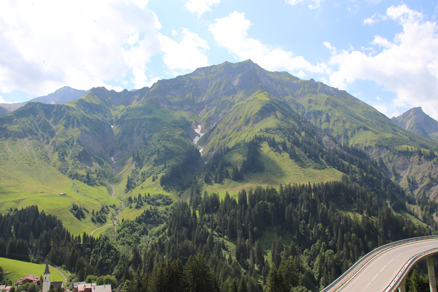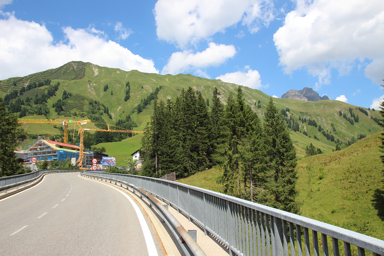 in Schröcken, Blick auf Höferspitze und Kurvenbrücke im Verlauf der Westrampe ![]() 300 dpi JPEG |
