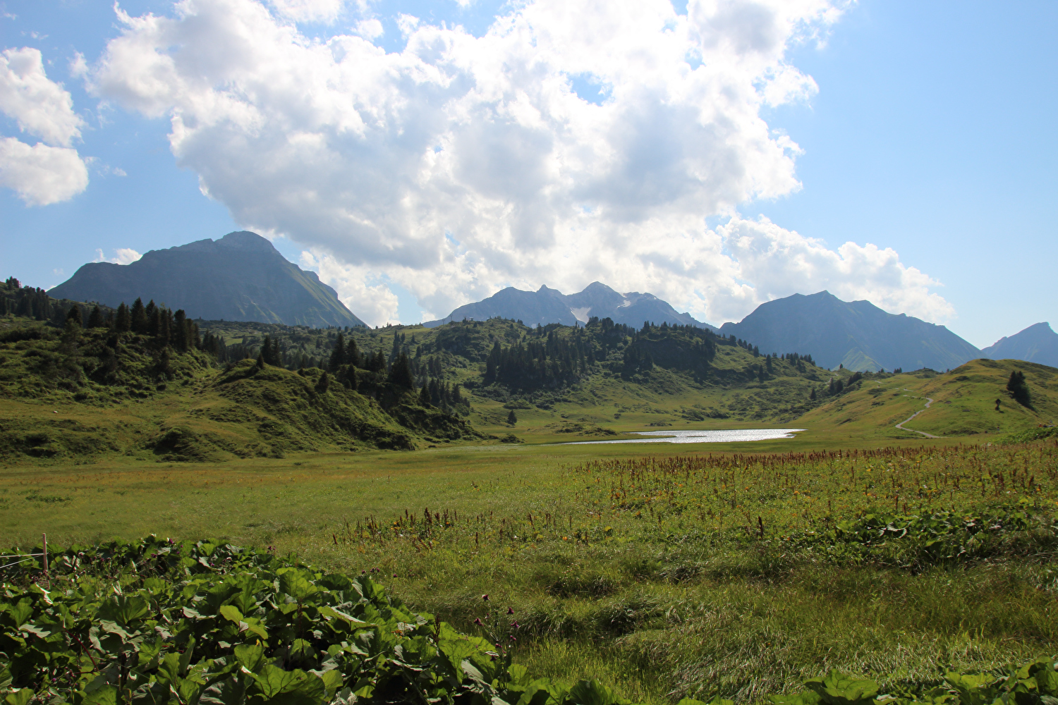 … und Blick talabwärts auf die Damülser Berge mit Mittagsspitzkamm und Kanisfluh ![]() 300 dpi JPEG |
