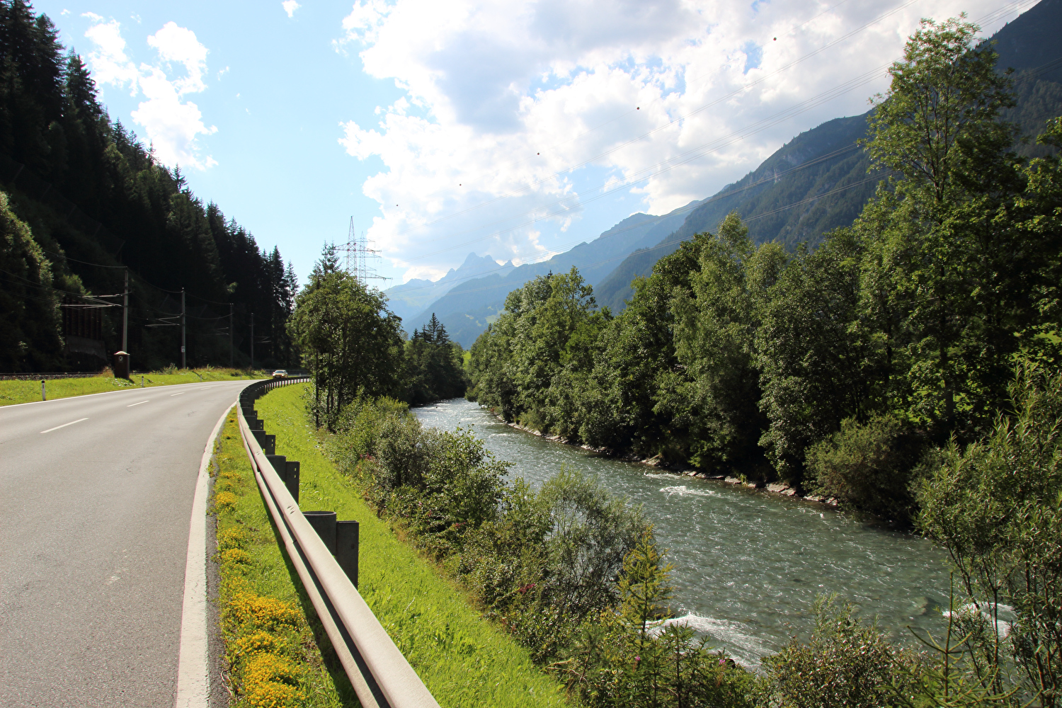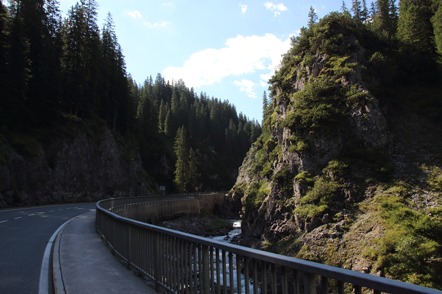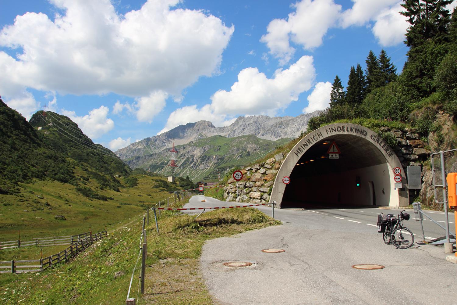 Beschreibung | Obwohl diese Etappe mit dem Flexenpass und dem Arlbergpass über zwei Bergpässe führte, waren wesentlich weniger Höhenmeter bergauf zu fahren als am Vortag. Die Etappe überquerte mit den beiden Pässen zweimal die Europäische Hauptwasserscheide. Zudem war diese Etappe die einzige Etappe im Rahmen dieser Tour, die komplett oberhalb 1000 m.ü.A. verlief. Anders als bei der am 27.07.2016 gefahrenen Etappe, in deren Verlauf es sich immer mehr zugezogen hatte und in der Abfahrt vom Arlbergpass im Stanzertal Regen eingesetzt hatte, schien diesmal die Sonne und es herrschte sehr gute Fernsicht. Dementsprechend gab es dieses Mal sehr viel von der umliegenden Bergwelt zu sehen bis hin auf Berge im Rätikon an der Staatsgrenze zwischen Österreich und der Schweiz. Die Nordrampe des Flexenpasses enthält keine Steilstücke. Dafür enthält sie mit der Monzabongalerie einen unschönen Abschnitt. Die Bankette bergauf rechts neben der Straße ist in der Monzabongalerie so breit, dass sie als Radweg genutzt werden kann, wodurch direkte Konflikte mit dem Stinkeverkehr vermieden werden. Allerdings muss gleich am Nordportal der Monzabongalerie auf diese Bankette aufgefahren werden, da sie innerhalb der Monzabongalerie durchgängig mit einer Leitplanke von der Straße getrennt ist. Über den Flexenpass verläuft die hier von der Rhein-Donau-Wasserscheide gebildete Europäische Hauptwasserscheide. Die Südrampe des Flexenpasses verläuft durch die dreiteilige Flexengalerie. Dort muss komplett auf der Straße gefahren werden, was nicht so schön, bergab aber recht schnell vorbei geht. Dafür bieten sich von den beiden freien Abschnitten zwischen den drei Teilen der Flexengalerie sehr weite Ausblicke, da das Gelände im Bereich der Flexengalerie extrem steil abfällt. Die Straße, die unterhalb der Flexengalerie zum Arlbergpass abzweigt und am 27.07.2016 noch eine Baustelle war, ist die neue Trasse im Verlauf der Westrampe des Arlbergpasses. Die alte Trasse wurde in diesem Bereich aufgegeben. Die Westrampe des Arlbergpasses vom unteren Ende der neu gebauten Straße bis zur Passhöhe enthält keine Steilstücke. Über den Arlbergpass verläuft die hier von der Rhein-Donau-Wasserscheide gebildete Europäische Hauptwasserscheide. Auf dem Arlbergpass steht kein Passhöhenschild. Es wäre vermutlich eh komplett mit diesen sinnfreien Bapperln zugeklebt. An einem Gebäude auf der Passhöhe findet sich die falsche Höhenangabe 1800 m. Die Passhöhe liegt auf 1793 m.ü.A.. Die Ostrampe des Arlbergpasses fällt recht steil ins Stanzertal ab. Bei Sankt Anton liegt eine markante Talstufe. Sankt Anton selbst liegt teilweise darunter, teilweise aber genau in der Talstufe, weshalb es innerorts sehr viele sehr steile Straßen gibt. Unterhalb von Sankt Anton fällt das Stanzertal bis Strengen deutlich flacher ab. Nur oberhalb von Pettneu liegt noch eine kleinere Talstufe. Der Stinkeverkehr hielt sich bei dieser Etappe trotz des schönen Wetters in Grenzen. Der Fernverkehr zwischen Inntal und Rheintal wird ohenhin auf der „Arlberg Schnellstraße“, die durch zahlreiche Tunnel verläuft und den Arlbergpass im Arlbergstraßentunnel unterquert, geführt und belastet somit nicht die Passstraße. Die Arlbergbahn unterquert den Arlbergpass im Arlbergbahntunnel. Der „Radweg Stanzertal Arlberg“ zwischen Sankt Anton und Flirsch wurde wegen der enthaltenen Schotterabschnitte und mindestens einer Baustelle in dessen Verlauf nicht genutzt. Bei der Annäherung an Strengen von Flirsch kommend deutet die hier wieder zunehmend tiefer eingeschnittene Rosanna an, dass das Stanzertal unterhalb von Strengen wieder steiler abfällt. |