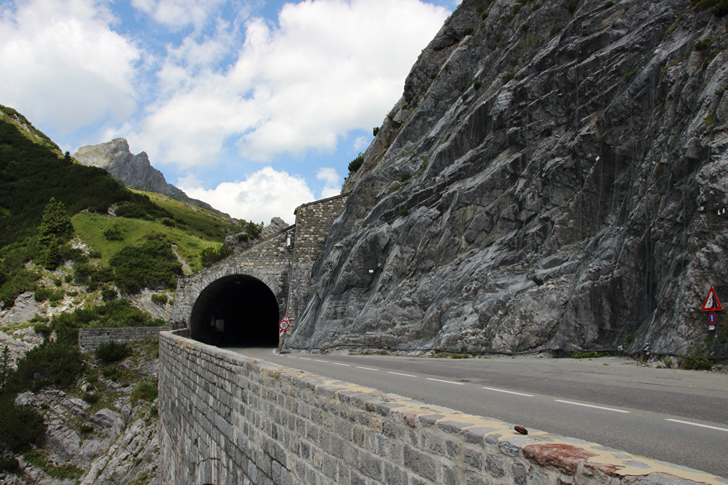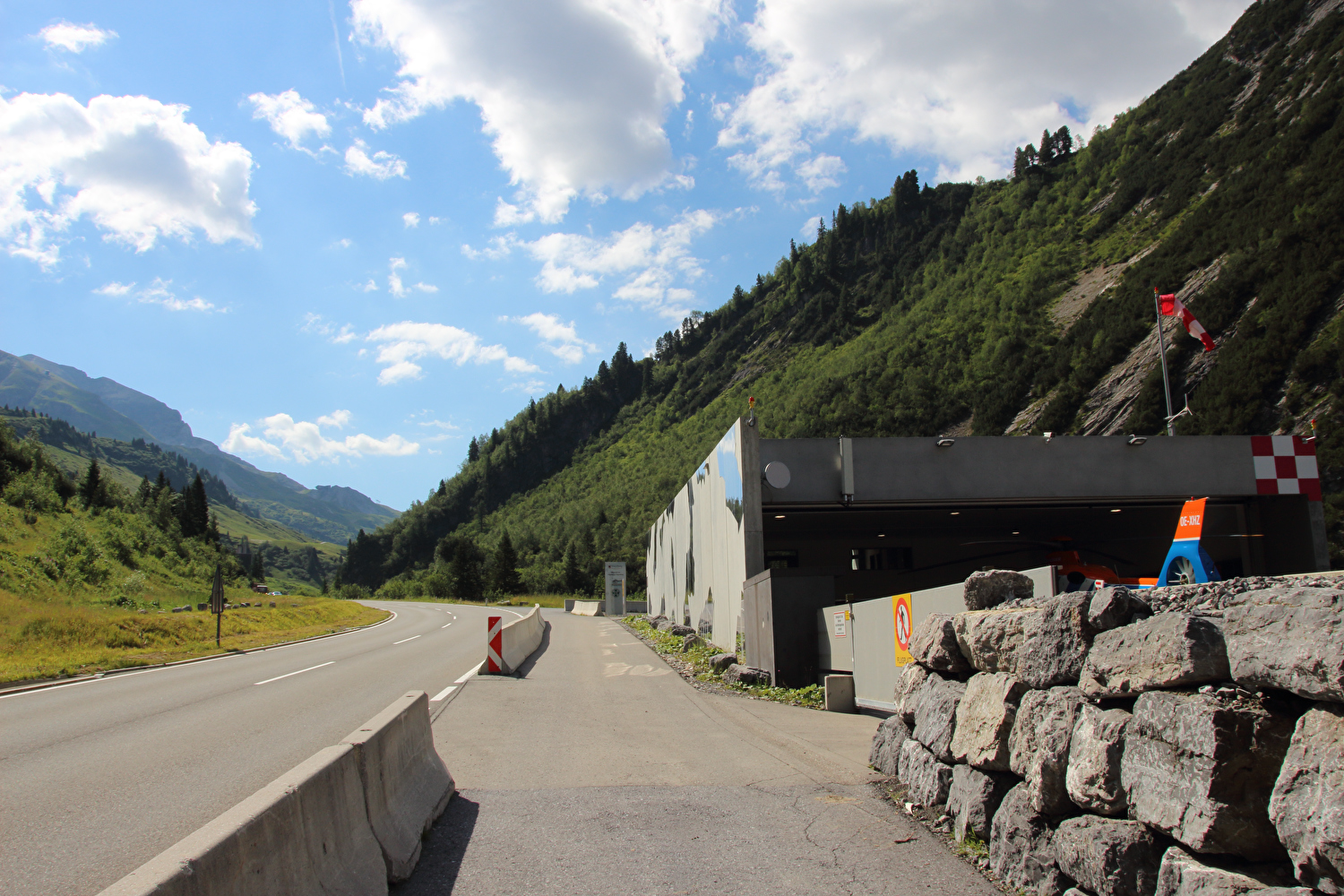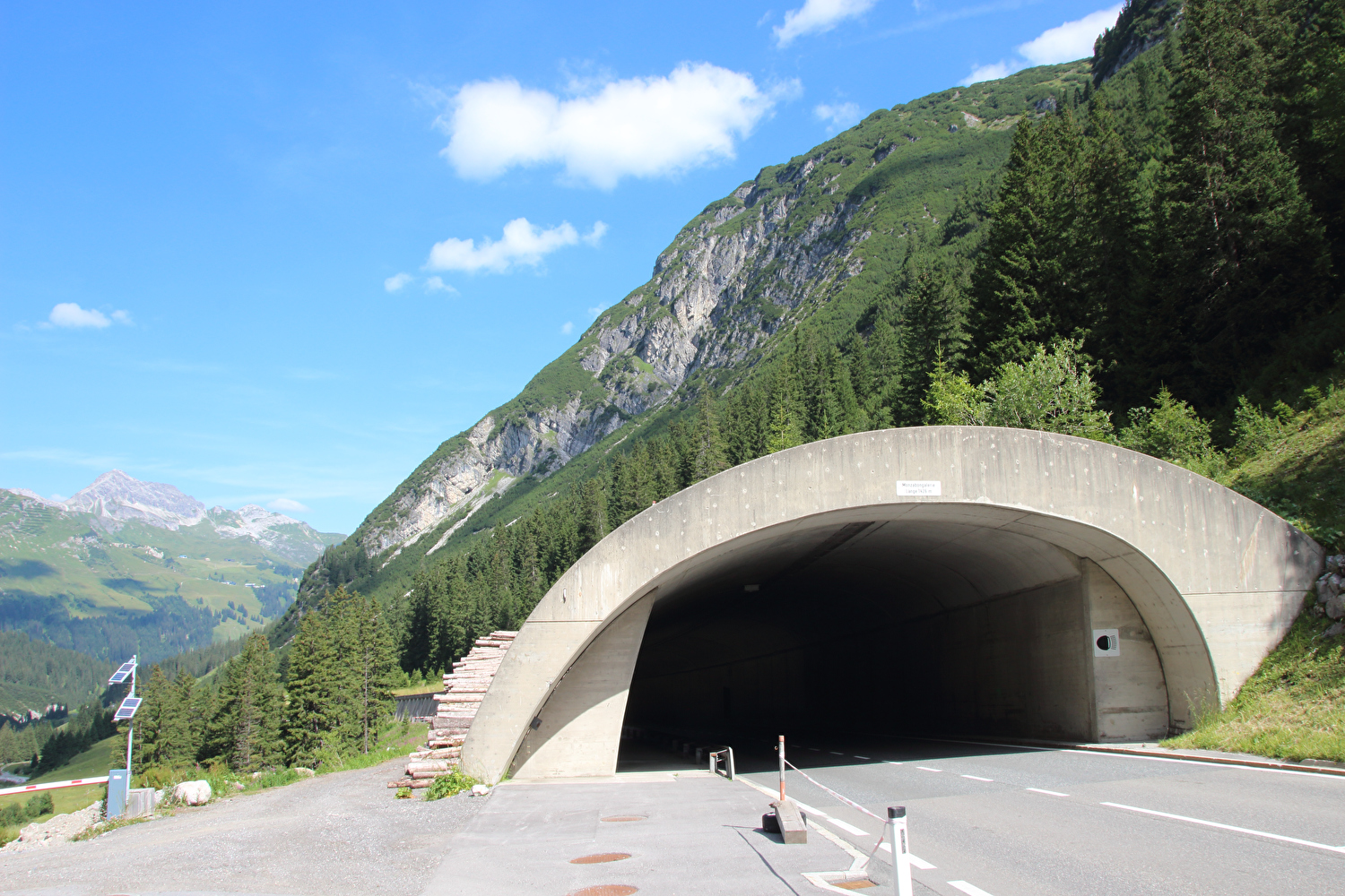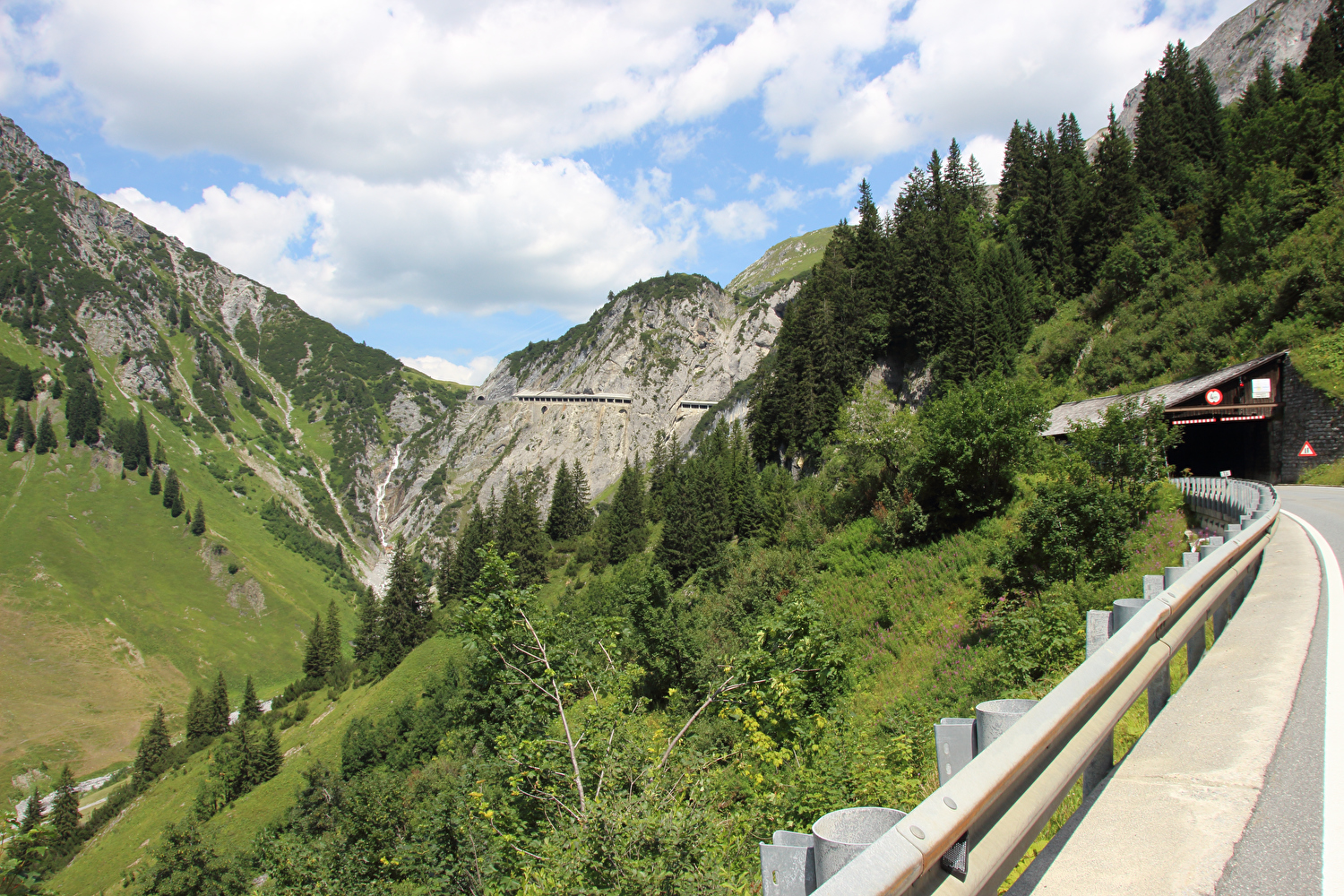 Nordrampe des Flexenpasses, Nordportal des Tunnels, am Horizont Vordere und Hintere Hasenfluh ![]() 300 dpi JPEG |