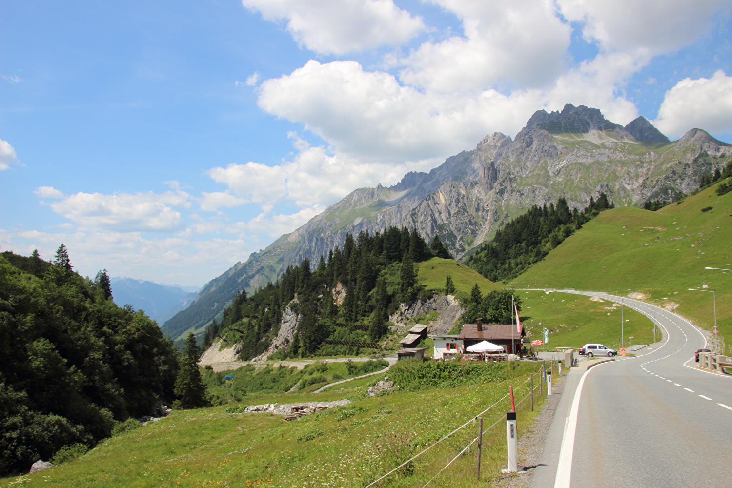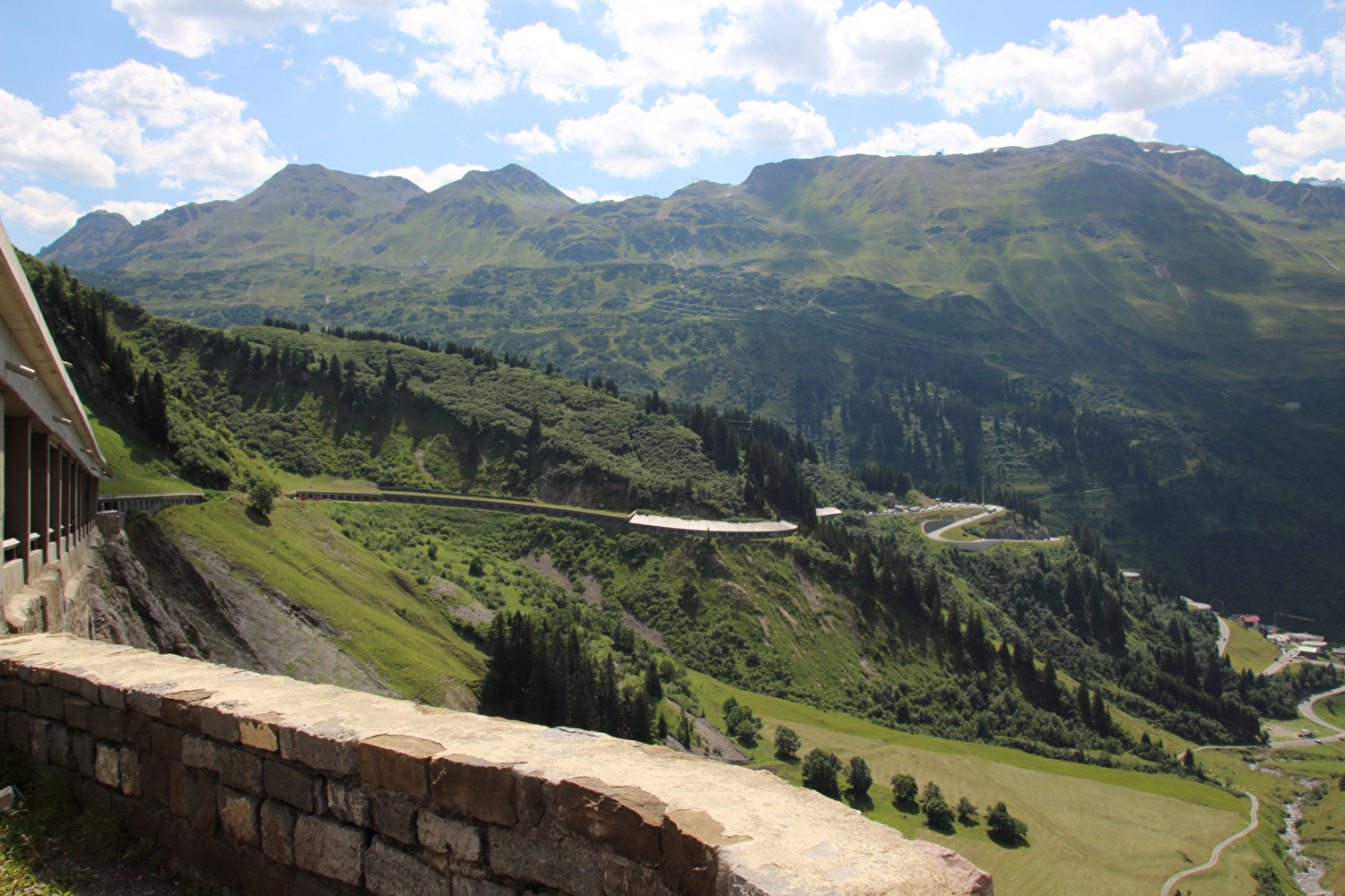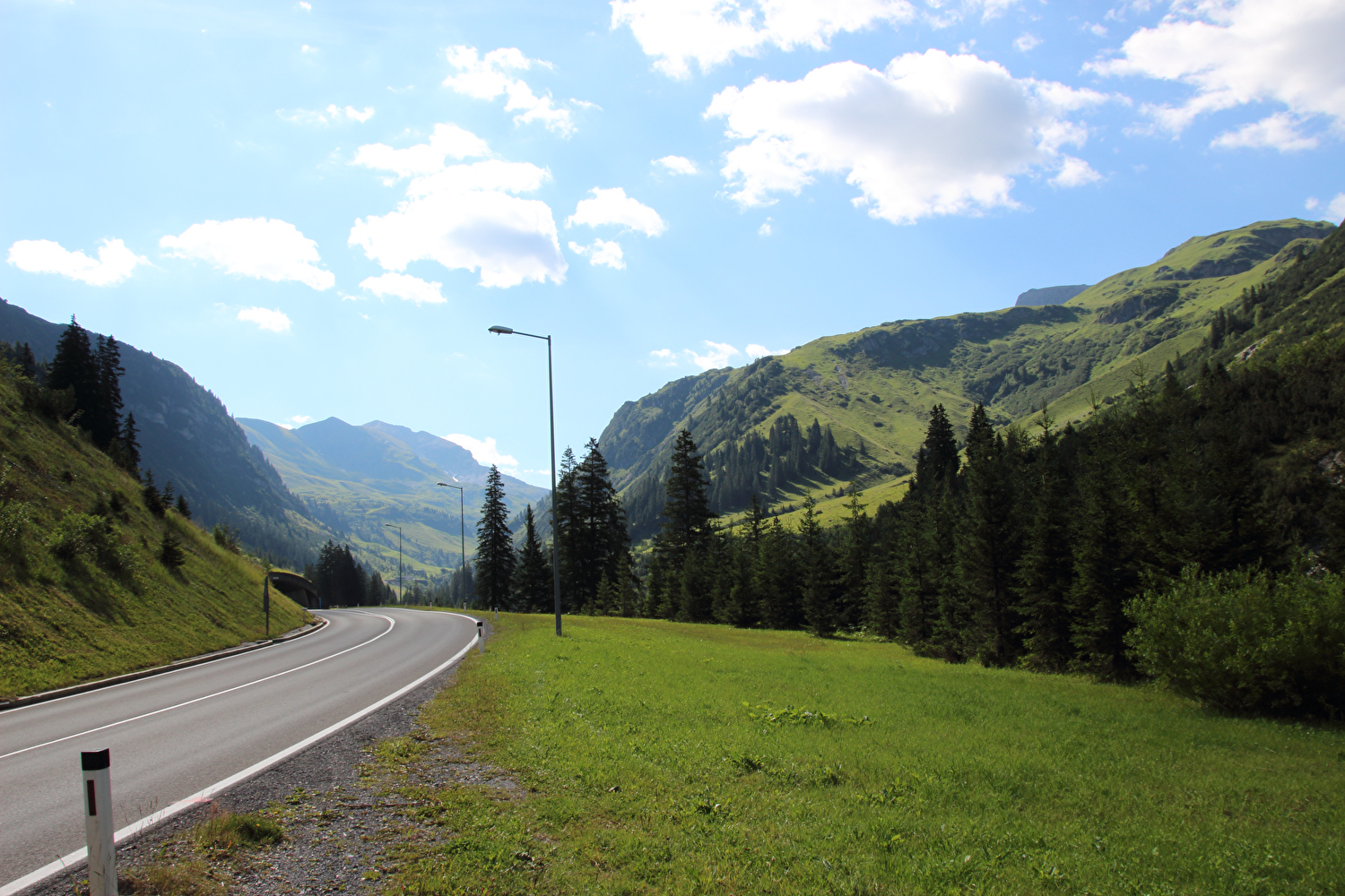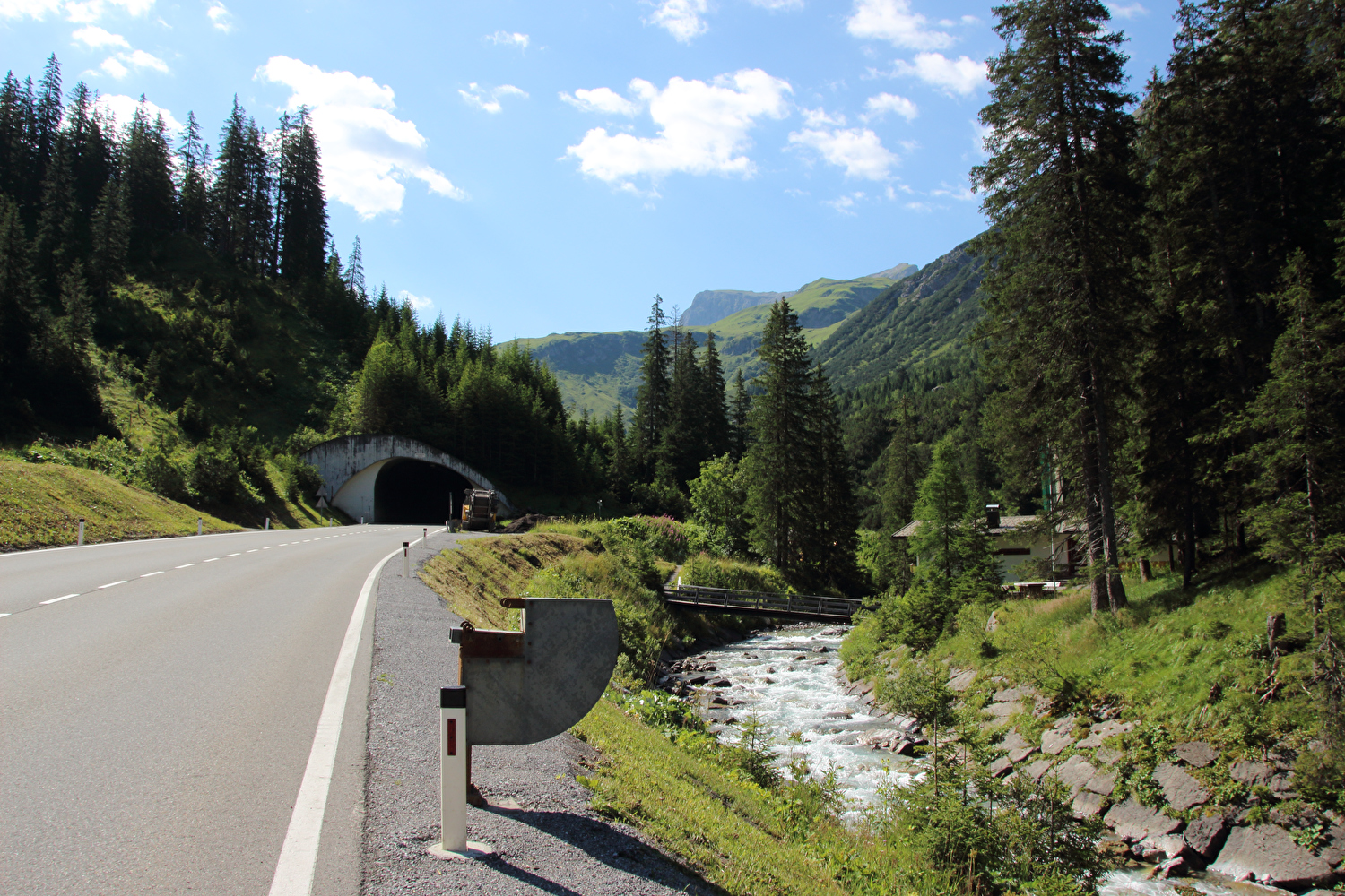 Nordrampe des Flexenpasses, Nordportal des Tunnels, am Horizont Vordere und Hintere Hasenfluh ![]() 300 dpi JPEG |