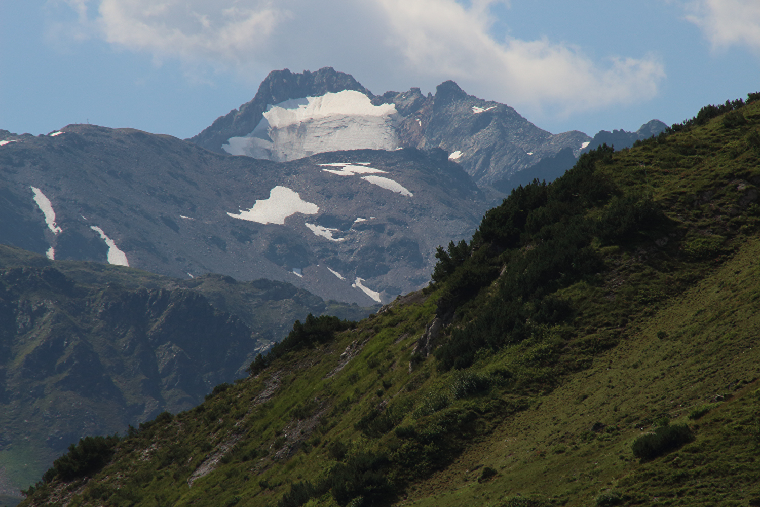 nach dem Mittagessen, Blick über die Passhöhe zur Verwallgruppe ![]() 300 dpi JPEG |