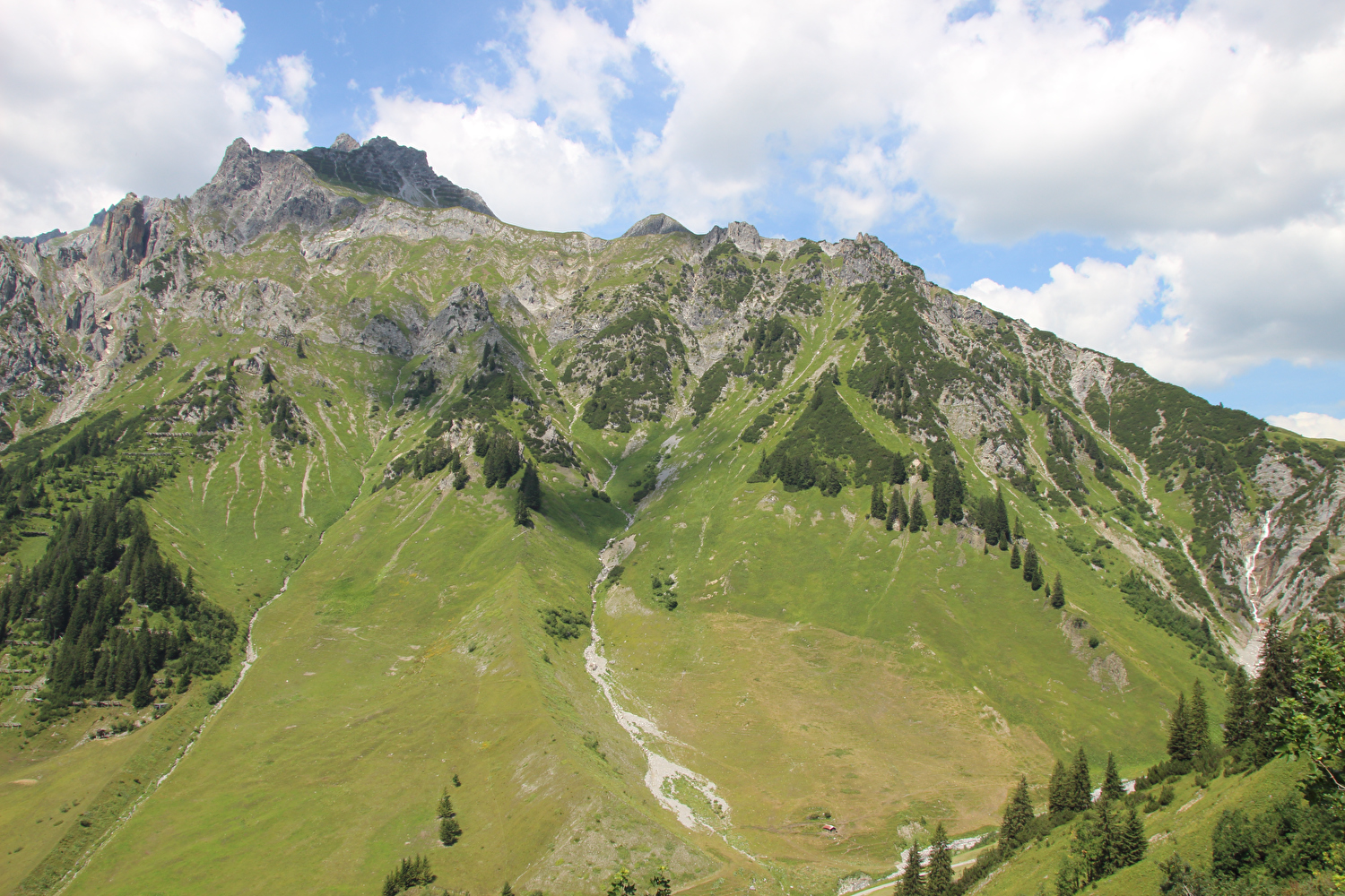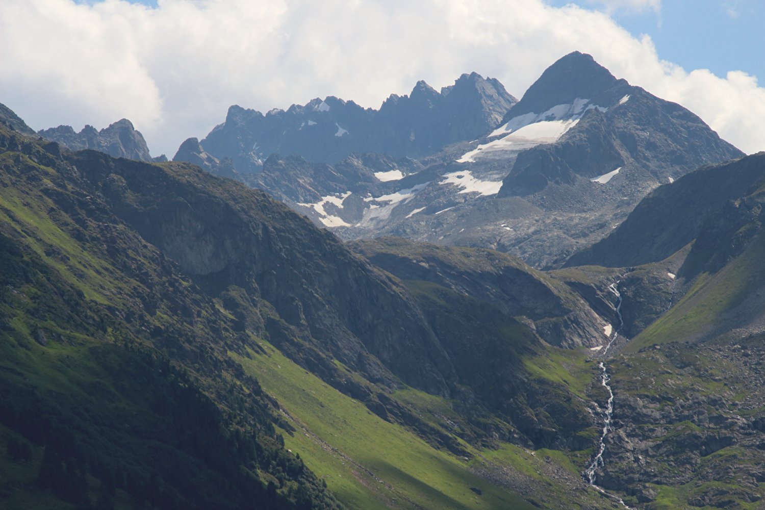 wenig weiter, Blick talaufwärts, links der Scheibler mit dem Faselfadferner … ![]() 300 dpi JPEG |