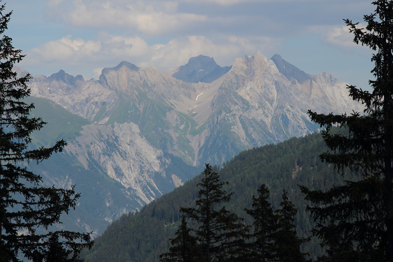 … und Blick auf v. l. n. r. Kleine und Große Sulzspitze, Faselfadspitze, Kuchenspitze, Scheibler und Hahnentrittkopf ![]() 300 dpi JPEG |