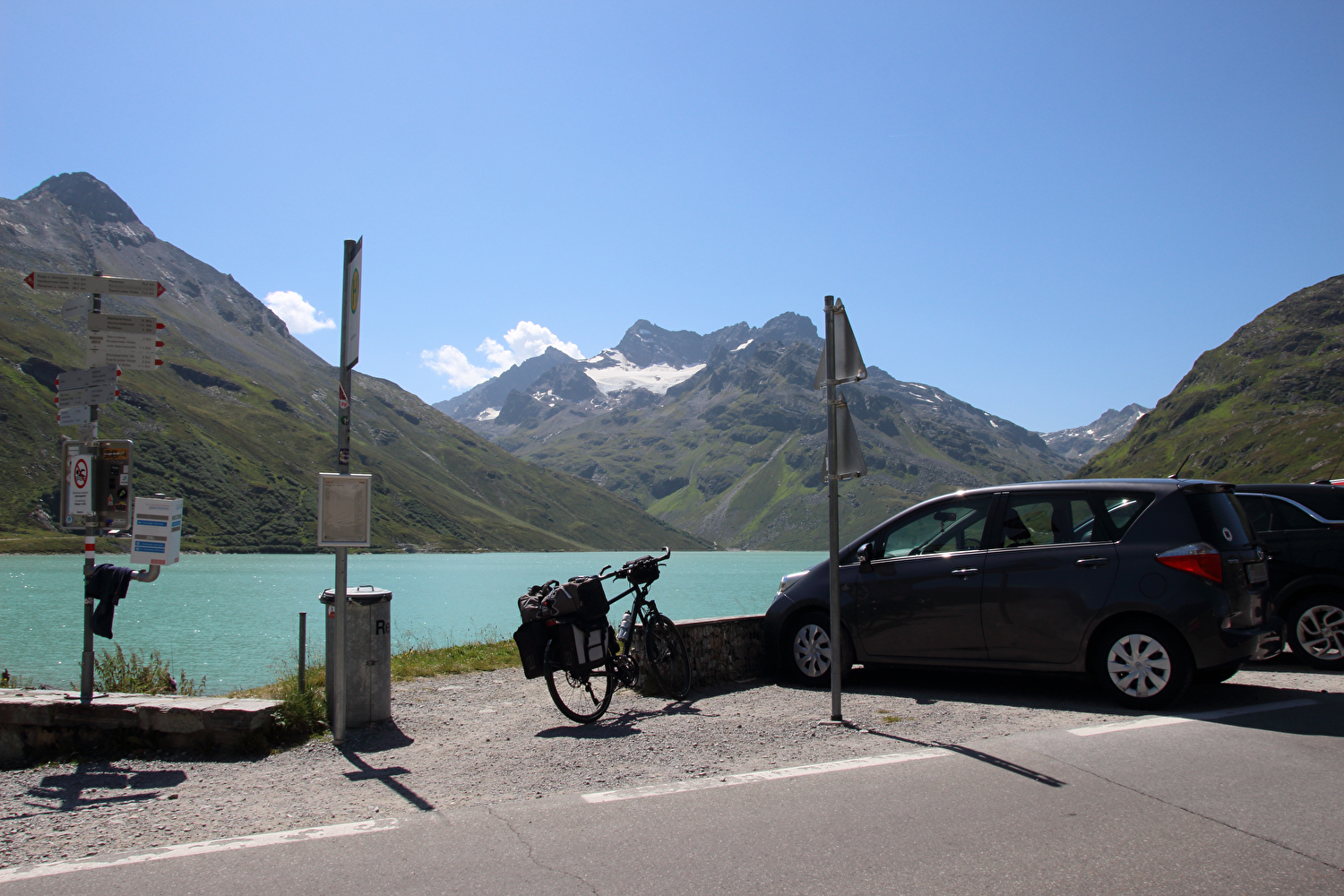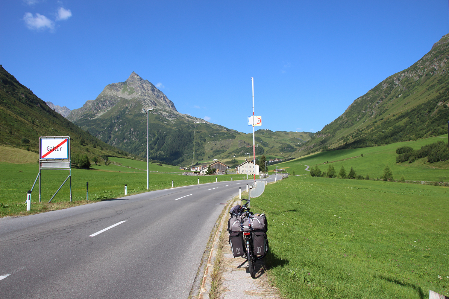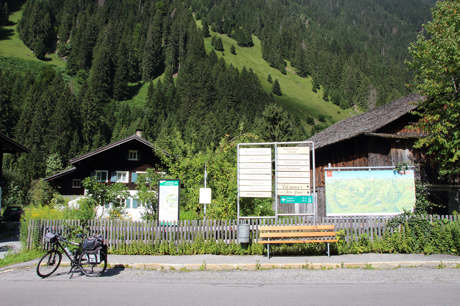 Beschreibung | Erst diese vorletzte Etappe führte mit der Bielerhöhe über das „Dach der Tour“. Im Rahmen dieser Tour war diese Etappe auch die einzige Etappe, die zeitweise oberhalb der montanen Baumgrenze und in Höhen oberhalb 2000 m.ü.A. verlief. Mit der Bielerhöhe wurde im Rahmen dieser Tour zum sechsten und letzten Mal die hier von der Rhein-Donau-Wassersheide gebildete Europäische Hauptwasserscheide überquert. Diese Etappe überwand im Rahmen dieser Tour auch die größte Höhendifferenz bergab mit 1475 m von der Bielerhöhe (Passhöhe, 2037 m.ü.A.) nach Bludenz (Straße „Oberer Illrain“ am Illufer in Bludenz, 562 m.ü.A.). Somit führte diese Etappe direkt aus dem Fahrradparadies, dem Hochgebirge an den Rand der Fahrradhölle, das dort flache Illtal bei Bludenz. Der erste Teil der Etappe von Galtür über die Bielerhöhe nach Partenen war eine inverse Streckenwiederholung. Dieser Abschnitt war in der Gegenrichtung bereis am 29.07.2016 gefahren worden. Die Trisanna trägt in ihrem Verlauf mehrere Namen. Die Quelle bildet das Gletschertor des Bieltalferners, dem der Bieltalbach entspringt. Mit dem Verlassen des Bieltals ins Paznaun, das hier auch Kleinvermunt genannt wird, wird der Fluss Vermuntbach genannt. Ab der Mündung des Jambachs in den Vermuntbach in Galtür wird der Fluss flussabwärts Trisanna genannt. Gelegentlich findet sich die Bezeichnung Trisanna auch für die oberen Flussabschnitte Bieltalbach und Vermuntbach. Die Silvrettastraße zwischen Pians und Bludenz, in Tirol die Landesstraße B188, in Vorarlberg die Landesstraße L188, trägt drei Namen. Zwischen Pians und Wirl heißt sie „Paznauntalstraße“, zwischen Wirl und Partenen „Silvretta-Hochalpenstraße“ und zwischen Partenen und Bludenz „Montafoner Straße“. Als Enden der Silvretta-Hochalpenstraße werden häufig die beiden Mautstellen Galtür ud Partenen genannt. Laut Beschilderung vor Ort beginnt bzw. endet die Silvretta-Hochalpenstraße jedoch jeweils unterhalb der Mautstellen am Ostrand von Wirl und am Südrand von Partenen. Das Illtal trägt mehrere Namen. Der oberste Teil vom Quellgebiet der Ill bis zur Bielerhöhe heißt Ochsental, dessen unterster Teil vom Silvretta-Stausee überflutet ist. Von der Bielerhöhe bis Partenen (oder Gaschurn) wird es Großvermunt genannt. Flussabwärts bis Sankt Anton im Montafon (oder bis Lorüns) wird es Montafon genannt. Weiter flussabwärts bis Feldkirch wird es Walgau genannt. Danach fießt die Ill im Vorarlberger Rheintal und mündet dort in den Rhein. Der Name Montafon wird mitunter auch für den Teil, der Großvermunt genannt wird, verwendet. Vermunt ist eine Sammelbezeichnung für Großvermunt und Kleinvermunt. Südwestlich oberhalb des Vermuntstausees liegt ein auffälliger unbenannter Berg mit einer Höhe von ca. 2570 m.ü.A.. Falls dieser Berg doch einen Namen trägt, ist er auf den online verfügbaren Landkarten nicht präsent. In Partenen liegt das obere Ende des Illradweges. Der Illradweg endet als Sackgasse in Partenen genauso wie der am 10.08.2021 gefahrene Radweg Bregenzer Wald in Schoppernau und der am 26.07.2016 gefahrene Lechtalradweg in Steeg. Ab Partenen wurde auf dem bis Bludenz durchgängig asphaltierten Illradweg gefahren, was viel Stinkeverkehr ersparte. Da der Illradweg mehr oder weniger direkt an der Ill verläuft, bleiben fiese Gegensteigungen erspart. Die Etappe zog sich zeitlich etwas in die Länge, was aber egal war, da dies die letzte Bergetappe dieser Tour war. Am gebuchten Quartier in Bludenz angekommen hieß es, dass dieses belegt sei und eine Umbuchung zu einem 1,3 km entfernt gelegenen Quartier erfolgt sei. Obwohl das Ausweichquartier nominell höherwertig, aber wegen der bestehenden Buchung nicht teurer war, hielt sich die Begeisterung darüber in sehr engen Grenzen. Die Übernachtung erfolgte in dem Ausweichquartier. |