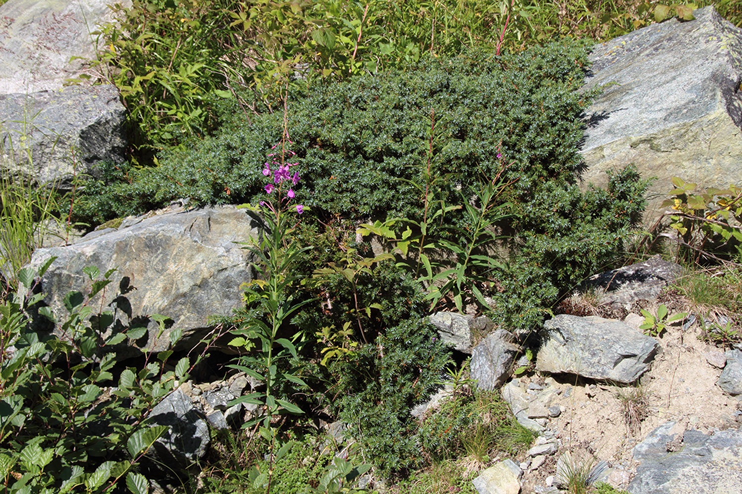 Schmalblättrige Weidenröschen (Epilobium angustifolium) und Alpen-Wacholder (Juniperus communis var. saxatilis) ![]() 300 dpi JPEG |