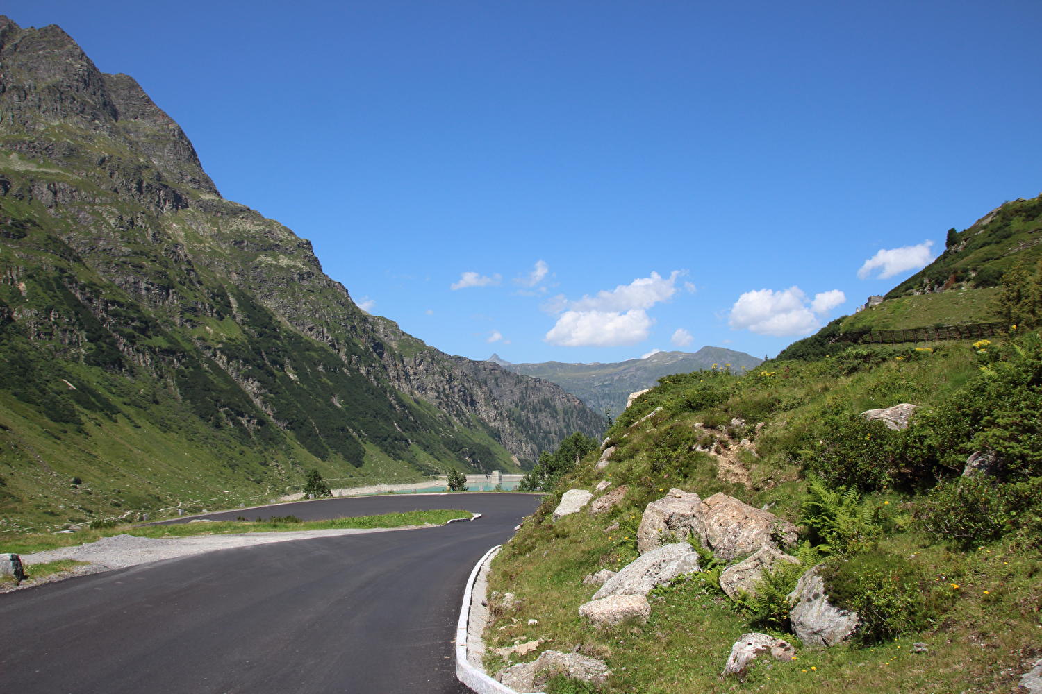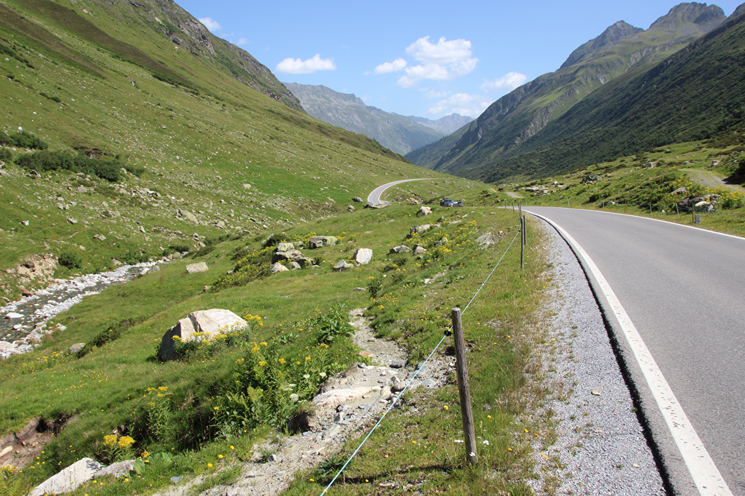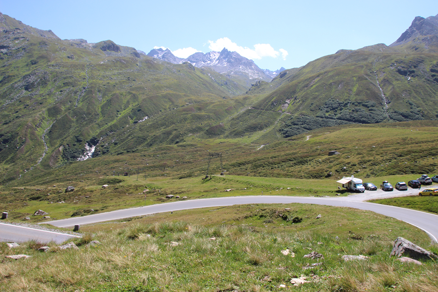 Blick bergauf auf die Mautstelle Partenen ![]() 300 dpi JPEG |