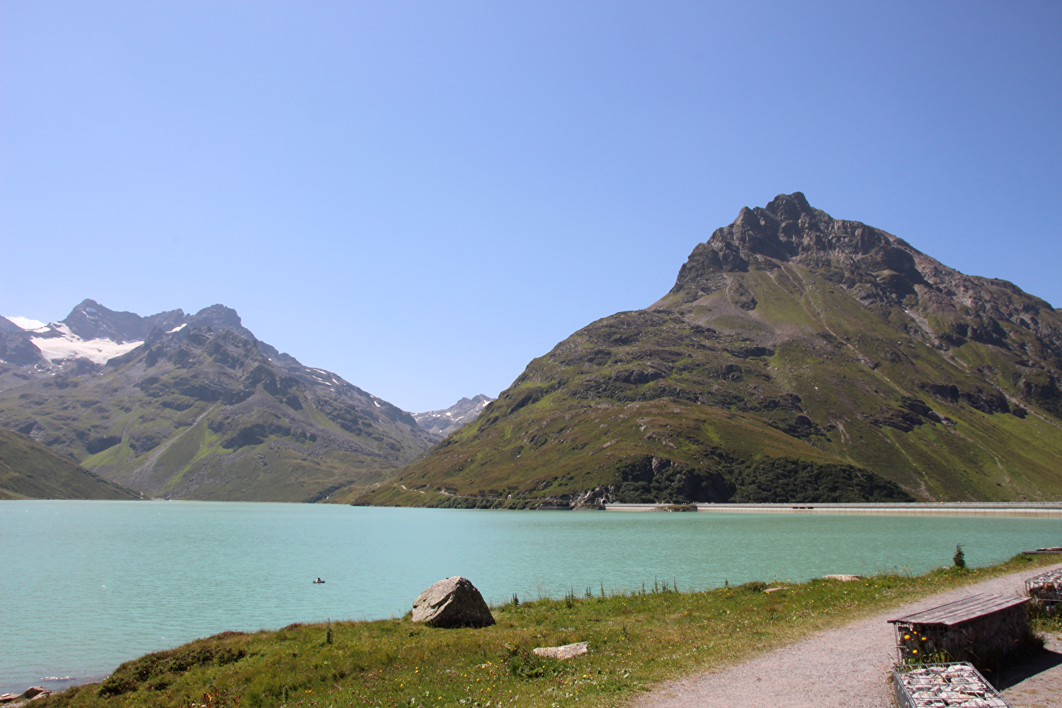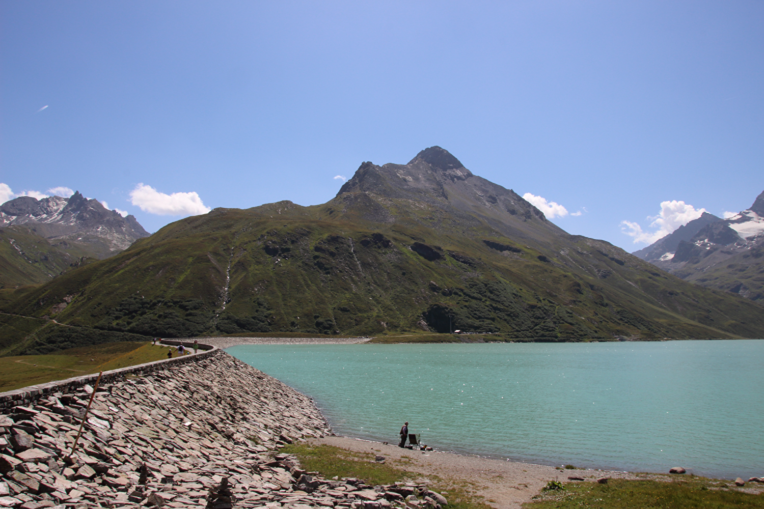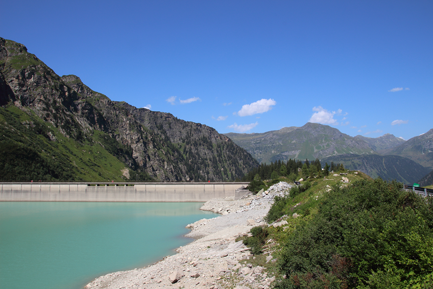 Blick auf Oststaumauer des Silvretta-Stausees, Passhöhe und Kleine Lobspitze ![]() 300 dpi JPEG |