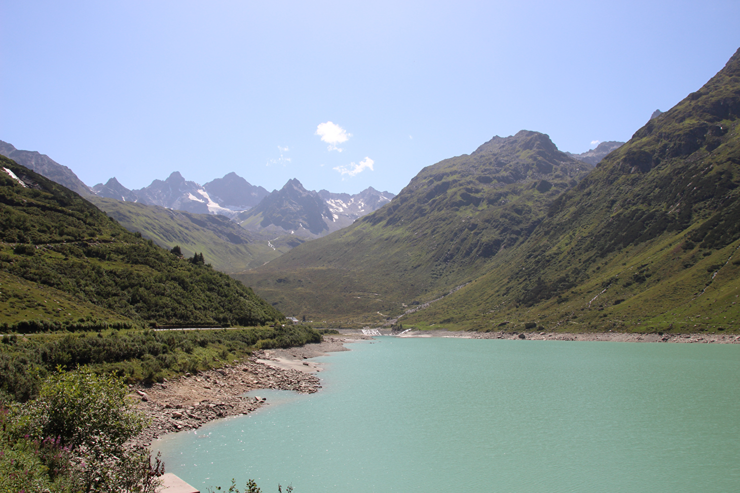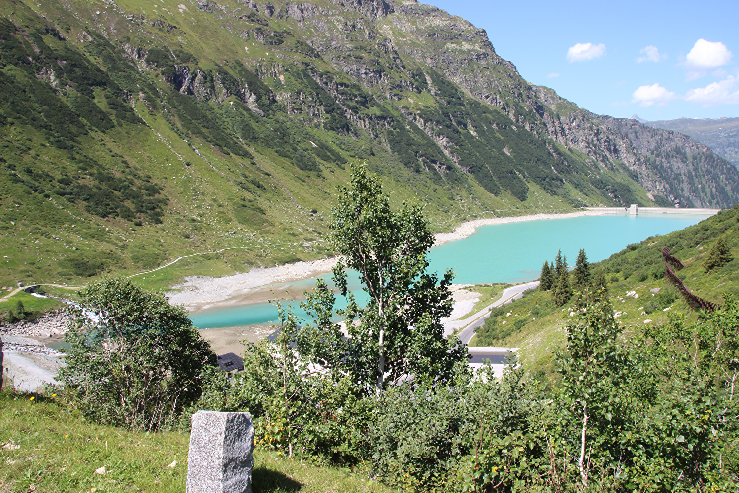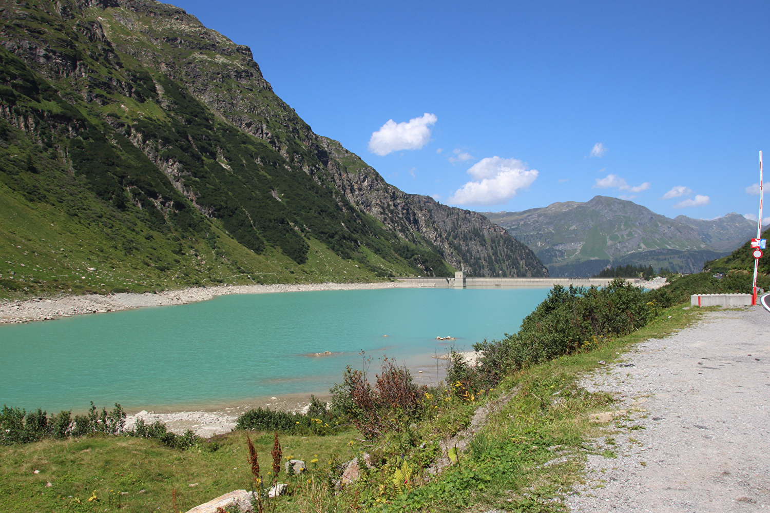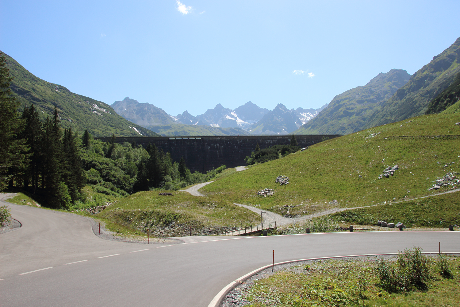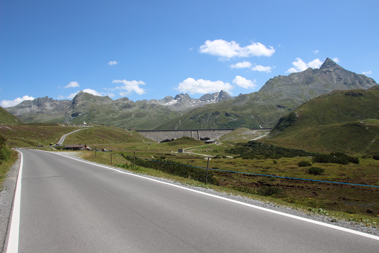 Blick auf Passhöhe und Weststaumauer des Silvretta-Stausees ![]() 300 dpi JPEG |