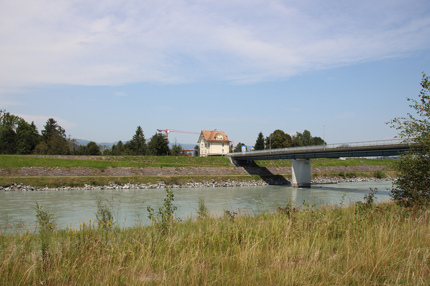 Blick talabwärts zur Eisenbahnbrücke zwischen Lustenau und Sankt Margarethen ![]() 300 dpi JPEG |