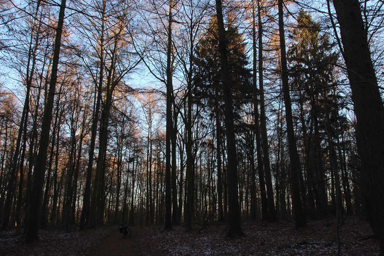 Beschreibung | Der nahezu wolkenlose Himmel ließ keine Wahl zu einer Fahrradtour. Bei extrem guter Fernsicht waren im Zoomobjektiv sogar Details auf dem Brockengipfel im Harz zu erkennen. Die Luft war recht trocken, wodurch die Kälte nicht so sehr in die Klamotten kroch. An schattigen Stellen herrschte Frost. Auch an diesem Tag wurde von Northen aus über den Benther Berg gefahren, wo die Waldwege immer noch gefroren waren. |