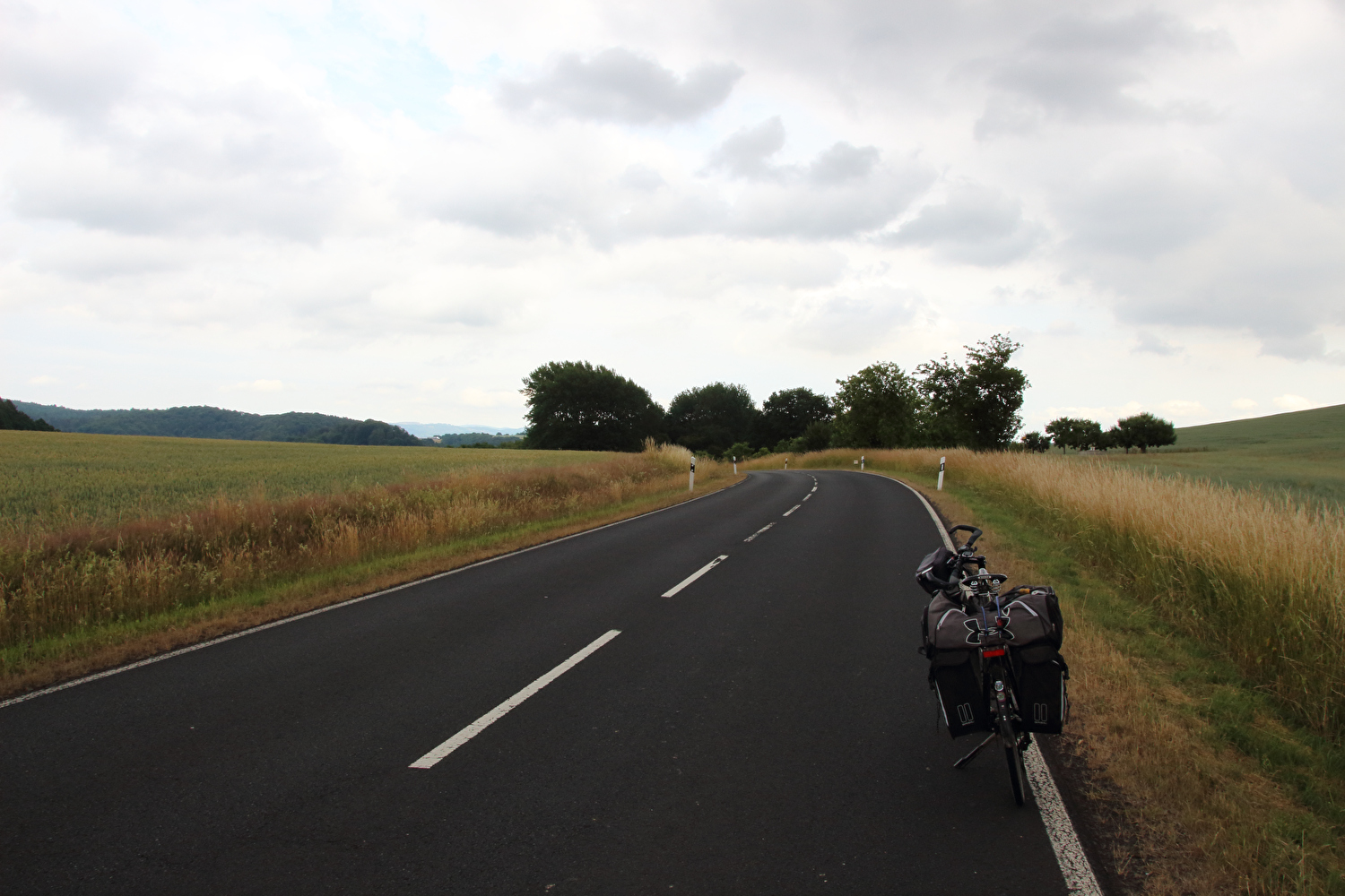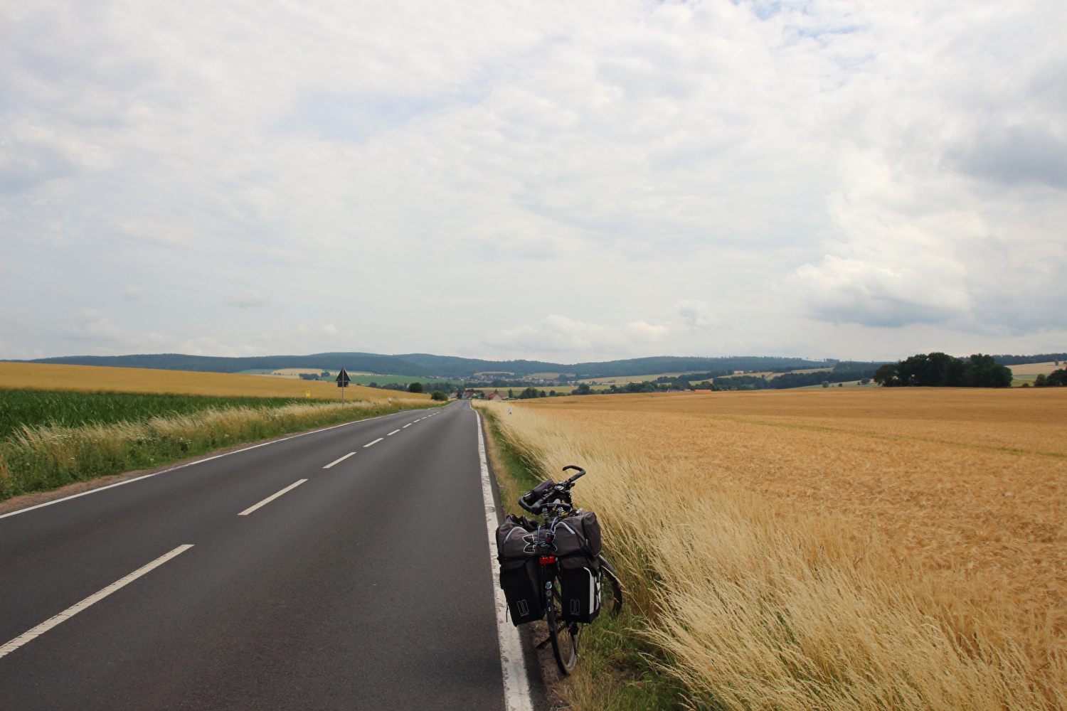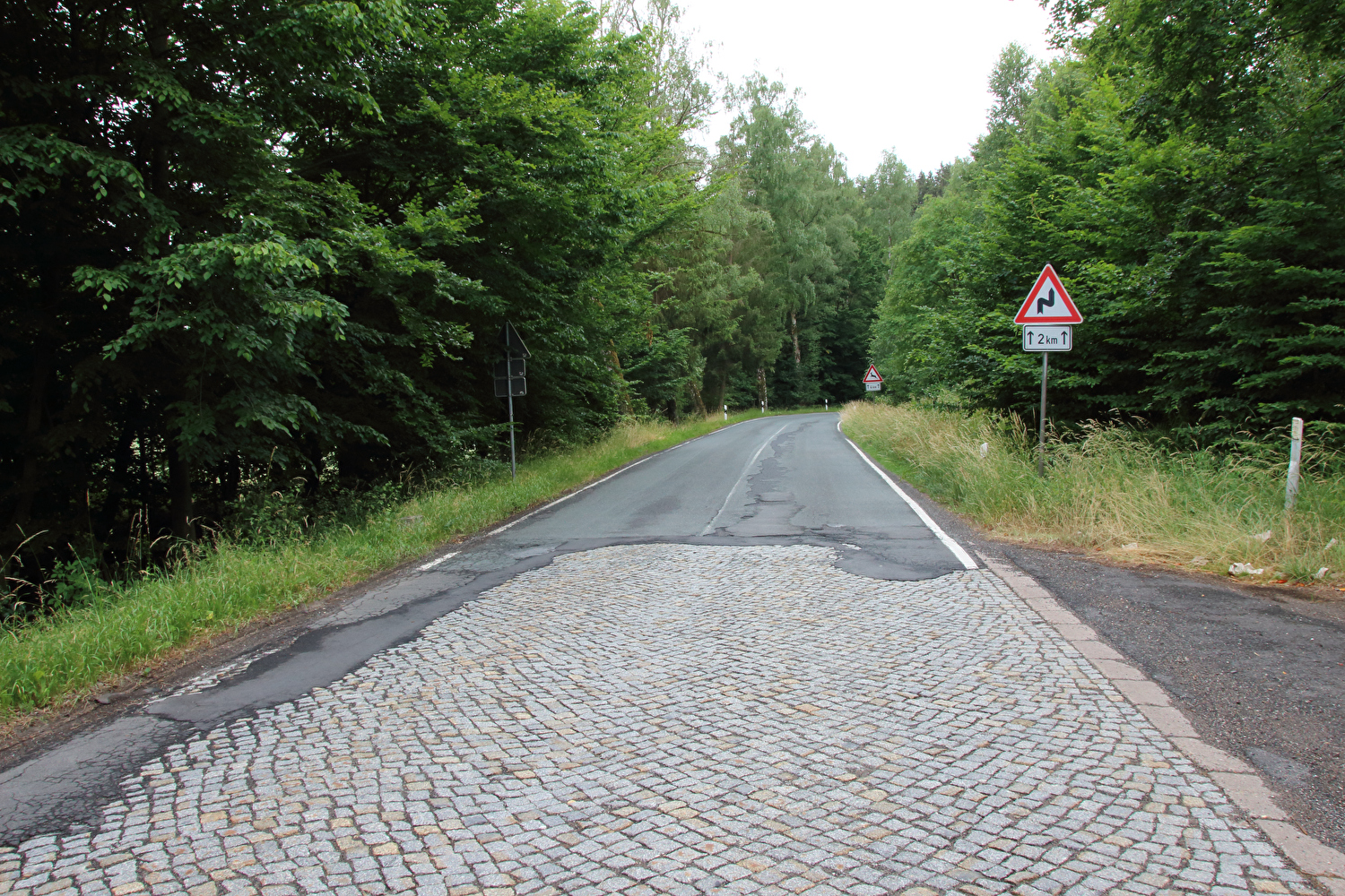 Beschreibung | Kurzfristig angesetzt wurde eine Viertagestour gefahren. Die Wahl fiel auf den Thüringer Wald. Zur Vermeidung einer überlangen Bahnanreise wurde mit nur einem Umstieg in Göttingen die Tour im Westen, also außerhalb des Thüringer Waldes gestartet. Die Tour begann am äußert einladenden Bahnhof in Sontra bei bedecktem Himmel. Nach ca. 4 km fiel ein erster Regenschauer, dessen stärkster Teil unter einem Baum abgewartet wurde, wobei auch das Gepäck regenfest verpackt wurde. Bei Bauhaus, also noch im Westen, wurde auf einem namenlosen Pass das „Dach der Etappe“ erreicht. In der Abfahrt vom „Dach der Etappe“ zur Werra wurde zwischen Richelsdorf und Gerstungen die Zonengrenze überquert. Zwischen Gerstungen und Berka/Werra führte die Route noch einmal etwa einen halben Kilometer durch den Westen. Da es in diesem Bereich einen Verkehrsunfall gegeben hatte, nur Fahrradfahrer und Fußgänger passieren durften und vor allem der Feuerwehreinsatz noch lief, gibt es von diesen beiden Überquerungen der Zonengrenze keine Fotos. Ab Berka/Werra verlief der Rest der Tour in der Zone. Der Streckenabschnitt zwischen Gerstungen bis zum Abzweig der K106 von der L1022 im Frauenseer Forst war eine inverse Streckenwiederholung. In der Gegenrichtung war dieser Streckenabschnitt am 02.07.2015 gefahren worden. Kurz nach dem Ende der inversen Streckenwiederholung rückte der Große Inselsberg im Thüringer Wald zum ersten Mal im Rahmen dieser Tour ins Blickfeld. Auf dem Weg nach Tiefenort zog im Nordwesten der nächste Regenschauer auf. In Tiefenort erfolgte zu allem Überfluss noch eine wegverlägernde Umleitung des Fahrradverkehrs Richtung Bad Salzungen. In Hämbach war der Regen dann da. Da die Fahrradumleitung schlecht bis gar nicht ausgeschildert war und wegen des Regens auch keine Fahrt auf einer Schotterpiste erfolgen sollte, wurde bis Leimbach auf der stark befahrenen B62 gefahren. Vor Leimbach hörte der Regen wieder auf. Und wieder eine FFP2-Maske für die Tonne … ☹ |
