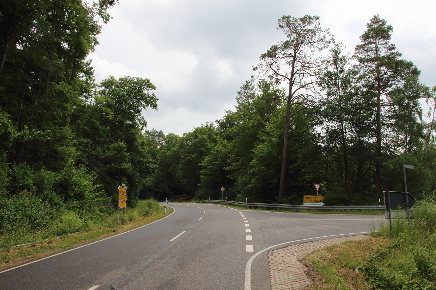 vierter Sattelpunkt der Etappe: namenloser Pass, L1120 zwischen Abzweig vond er B84 und Tiefenort; Blick nach Südosten … ![]() 300 dpi JPEG |