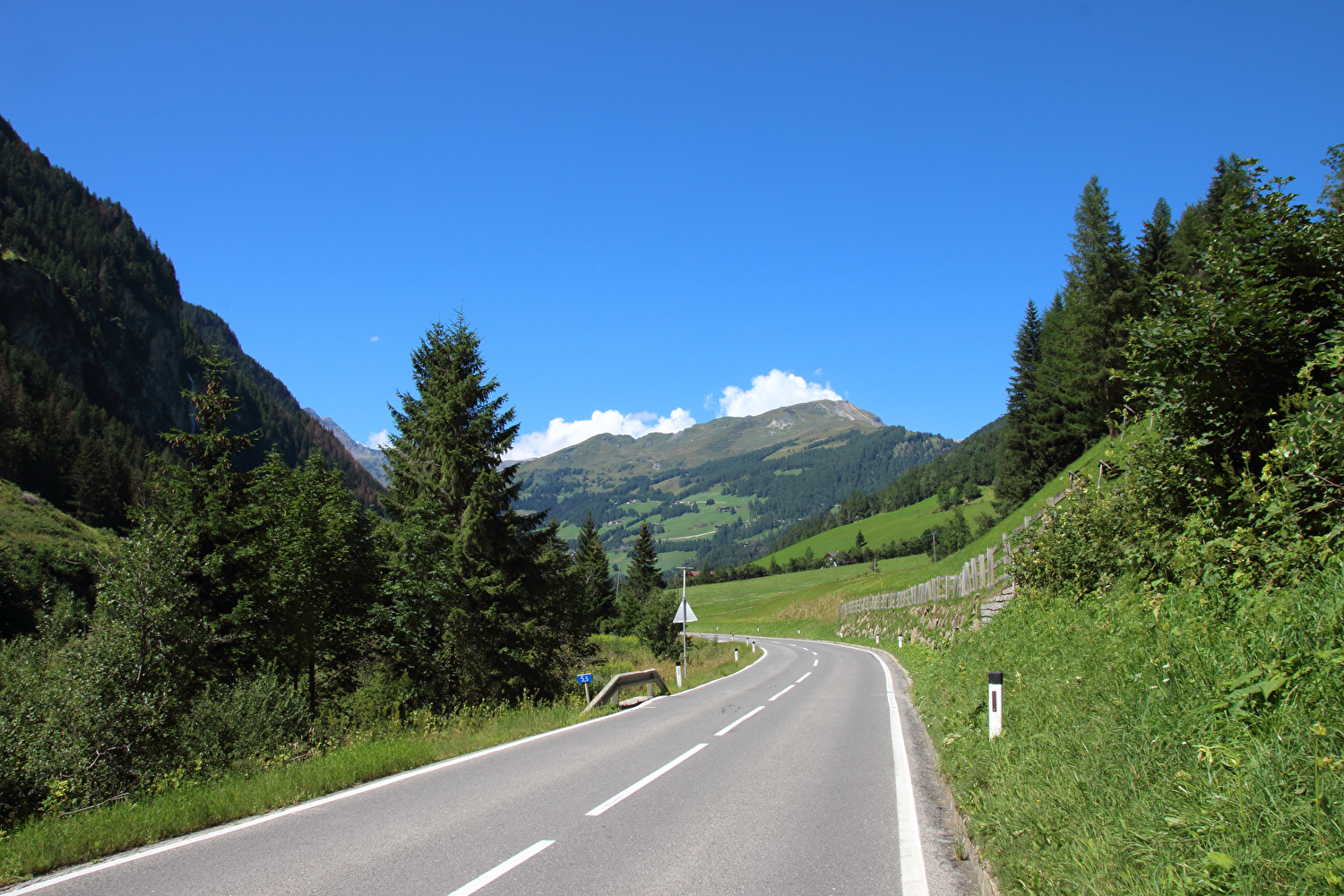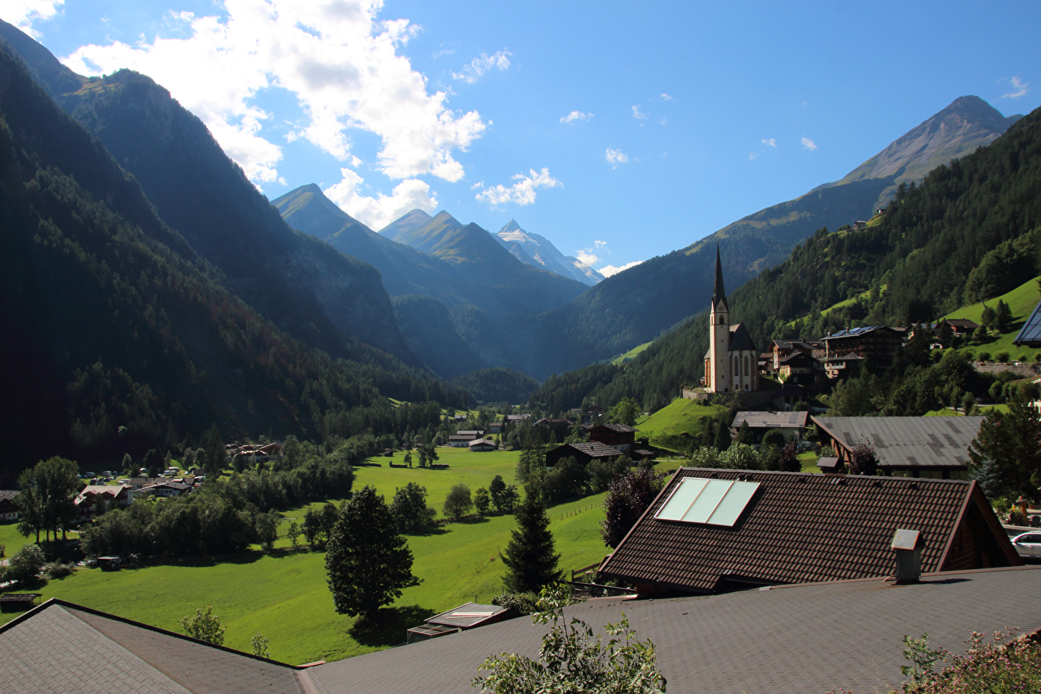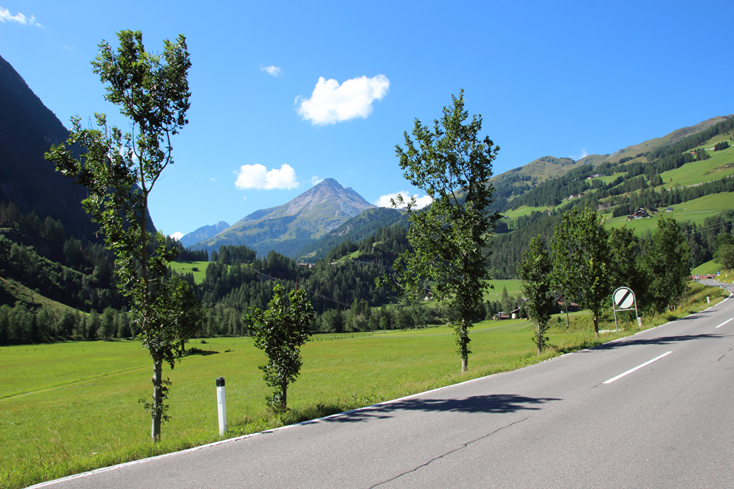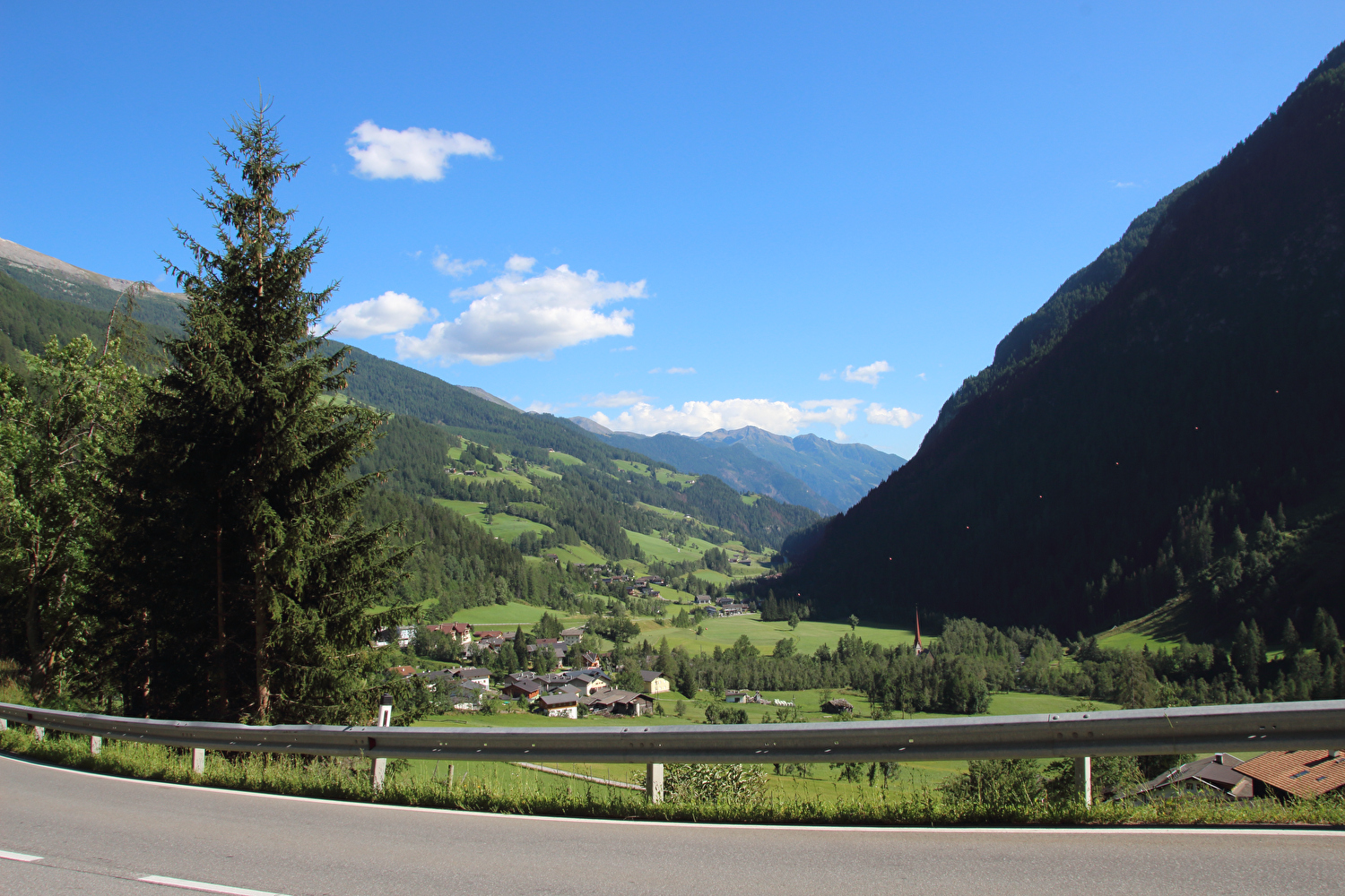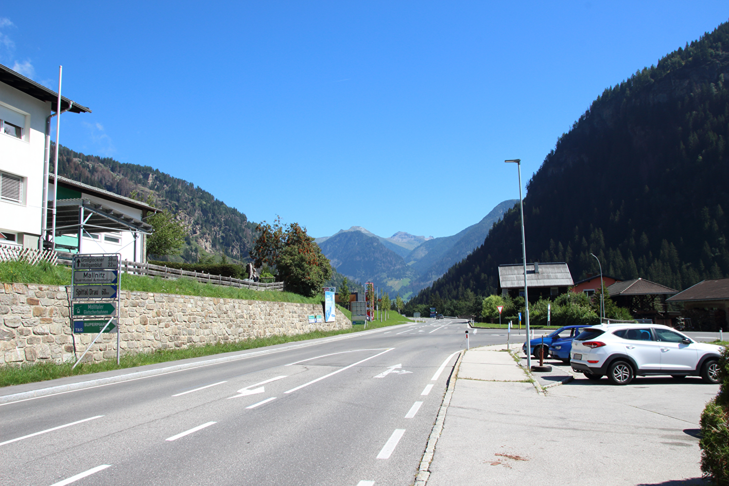 Beschreibung | Über Nacht hatte sich eine Hochdruckwetterlage eingestellt. Der Tag begann sonnig und dabei blieb es auch. Der erste Abschnitt der Etappe bis zum Iselsbergpass war schon einmal am 07.08.2014 gefahren worden. Dieses Mal wurde der Iselsbergpass komplett überquert. Die Nordrampe des Iselsbergpasses fällt mitunter sehr steil nach Winklern im Mölltal ab. Winklern ist der südliche Talort des Hochtors, dessen (natürliche) Passhöhe von der Großglockner-Hochalpenstraße mit einem Scheiteltunnel (Passhöhe der Straße) unterquert wird. Alle von Winklern aus erreichbaren höher und weiter nördlich gelegenen Orte können auf der Straße nur nach Winklern oder über das Hochtor verlassen werden. Vom Etappenstart bis zur Möllbrücke nördlich von Winklern wurde auf der Großglocknerstraße, die in Kärnten „Großglockner Straße (B 107)“ genannt wird, gefahren. Danach wurde auf den „Glockner Radweg R8“, auch Mölltalradweg genannt, gewechselt, der in diesen Abschnitt asphaltiert ist. In Großkirchheim wurde dieser Radweg wieder verlassen, da der Fahrbahnbelag von Asphalt auf Schotter wechselt. Der Rest der Etappe wurde auf der „Großglockner Straße (B 107)“ fortgesetzt. Von Pockhorn aus wurde der Großglockner, der mit einer Höhe von 3798 m.ü.A. höchste Berg Österreichs, sichtbar. Unter dem Ortsschild Heiligenblut findet sich unter anderem der Hinweis auf die Partnergemeinde Friedrichsroda. Dieser Ort war am 29.06.2022 bergauf fahrend durchquert worden. Am unteren Ortseingang in Friedrichsroda findet sich ein entsprechender Hinweis auf Heiligenblut. Damals stand bereits die Planung der Alpenfahrradtour, aber sie war eben noch nicht gefahren worden, weshalb Heiligenblut bei der damals gefahrenen Etappe nicht erwähnt wird. Die Etappe endete mit der fünften Bergankunft im Rahmen der Tour. Beim Fußweg vom Quartier zum Abendessen in einem Restaurant zeigte sich, dass Heiligenblut in den Hang gebaut wurde. |