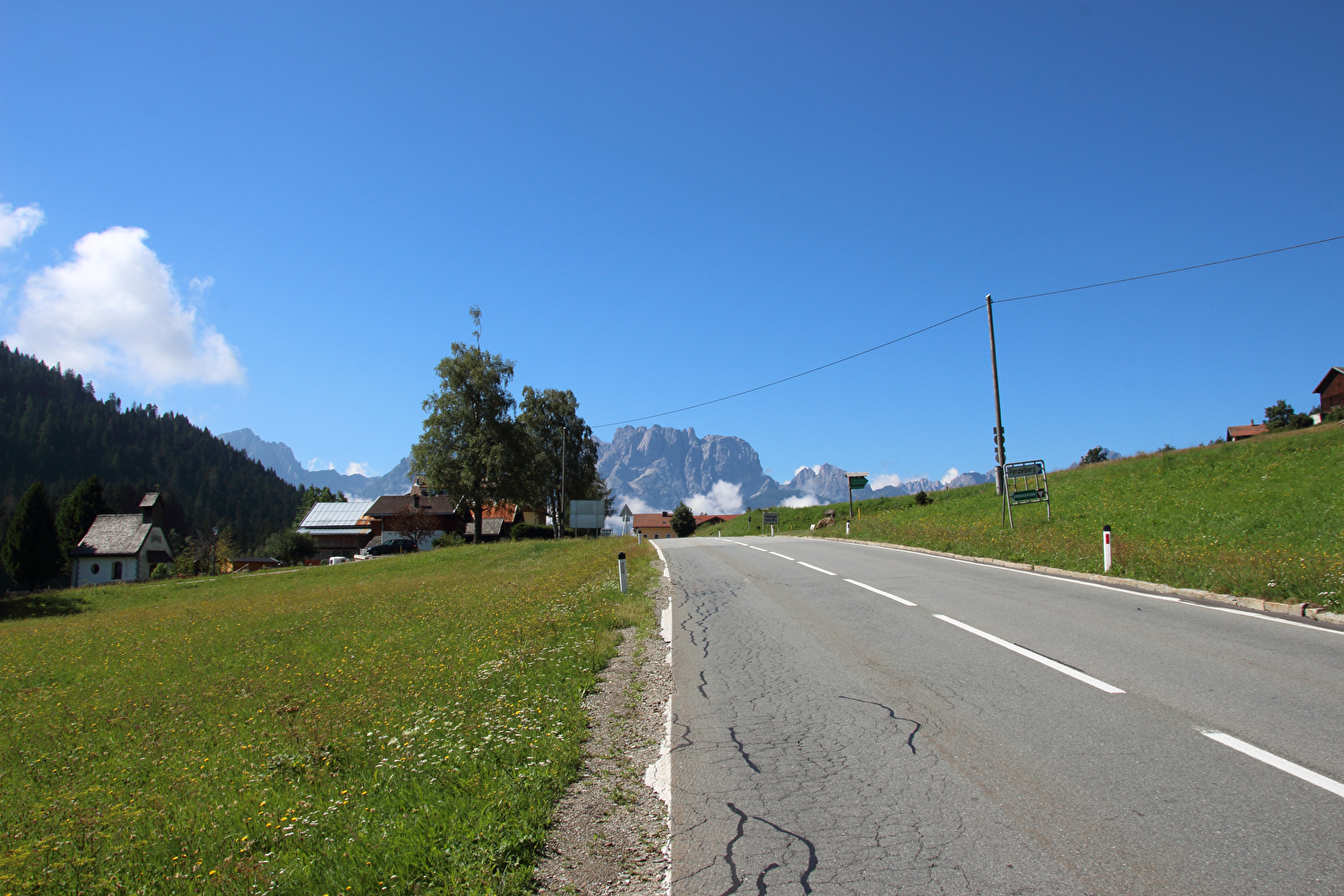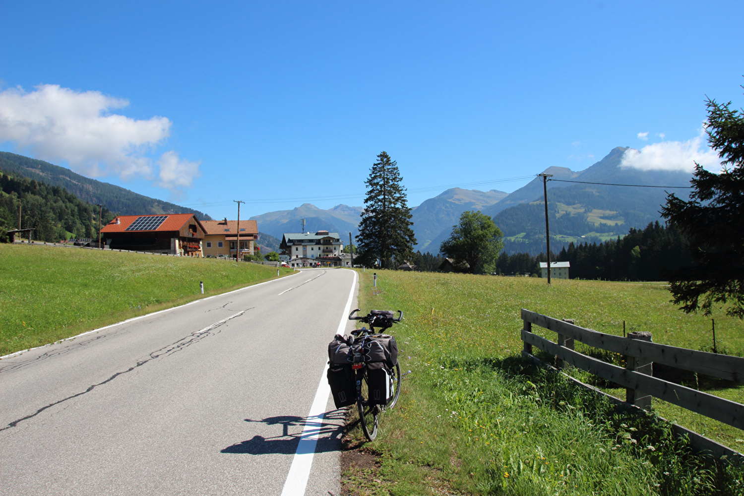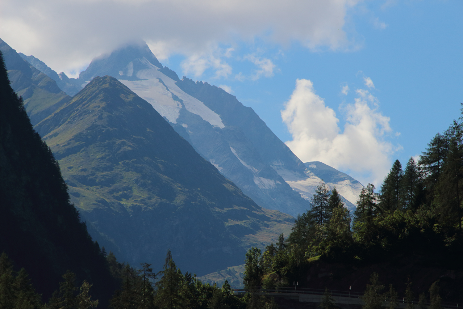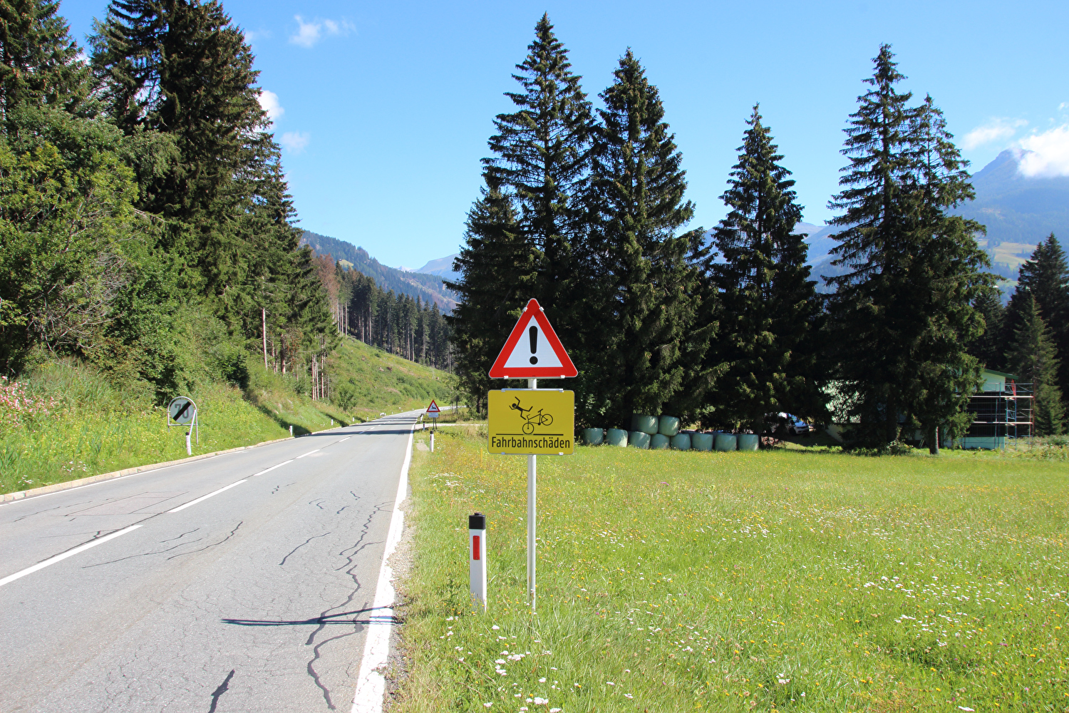 Beschreibung | Über Nacht hatte sich eine Hochdruckwetterlage eingestellt. Der Tag begann sonnig und dabei blieb es auch. Der erste Abschnitt der Etappe bis zum Iselsbergpass war schon einmal am 07.08.2014 gefahren worden. Dieses Mal wurde der Iselsbergpass komplett überquert. Die Nordrampe des Iselsbergpasses fällt mitunter sehr steil nach Winklern im Mölltal ab. Winklern ist der südliche Talort des Hochtors, dessen (natürliche) Passhöhe von der Großglockner-Hochalpenstraße mit einem Scheiteltunnel (Passhöhe der Straße) unterquert wird. Alle von Winklern aus erreichbaren höher und weiter nördlich gelegenen Orte können auf der Straße nur nach Winklern oder über das Hochtor verlassen werden. Vom Etappenstart bis zur Möllbrücke nördlich von Winklern wurde auf der Großglocknerstraße, die in Kärnten „Großglockner Straße (B 107)“ genannt wird, gefahren. Danach wurde auf den „Glockner Radweg R8“, auch Mölltalradweg genannt, gewechselt, der in diesen Abschnitt asphaltiert ist. In Großkirchheim wurde dieser Radweg wieder verlassen, da der Fahrbahnbelag von Asphalt auf Schotter wechselt. Der Rest der Etappe wurde auf der „Großglockner Straße (B 107)“ fortgesetzt. Von Pockhorn aus wurde der Großglockner, der mit einer Höhe von 3798 m.ü.A. höchste Berg Österreichs, sichtbar. Unter dem Ortsschild Heiligenblut findet sich unter anderem der Hinweis auf die Partnergemeinde Friedrichsroda. Dieser Ort war am 29.06.2022 bergauf fahrend durchquert worden. Am unteren Ortseingang in Friedrichsroda findet sich ein entsprechender Hinweis auf Heiligenblut. Damals stand bereits die Planung der Alpenfahrradtour, aber sie war eben noch nicht gefahren worden, weshalb Heiligenblut bei der damals gefahrenen Etappe nicht erwähnt wird. Die Etappe endete mit der fünften Bergankunft im Rahmen der Tour. Beim Fußweg vom Quartier zum Abendessen in einem Restaurant zeigte sich, dass Heiligenblut in den Hang gebaut wurde. |