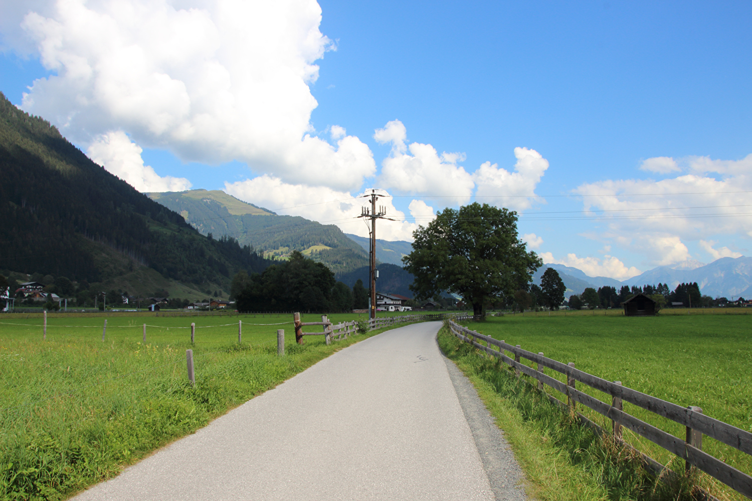 zwischen Weißbach und Grubhof, Blick talaufwärts auf die Leoganger Steinberge ![]() 300 dpi JPEG |