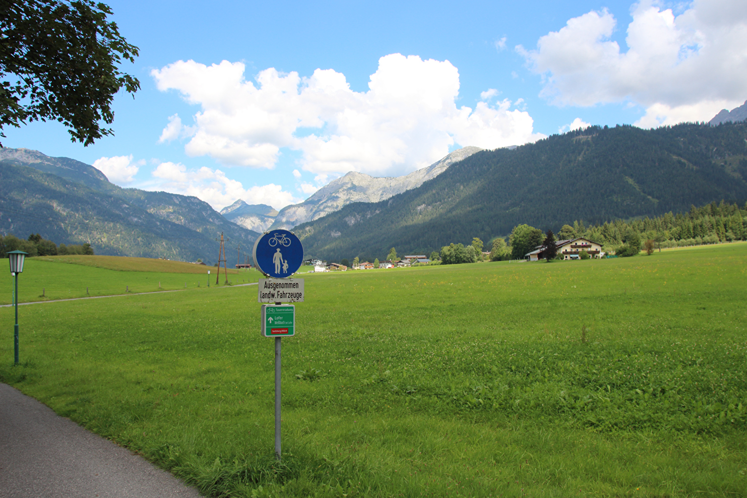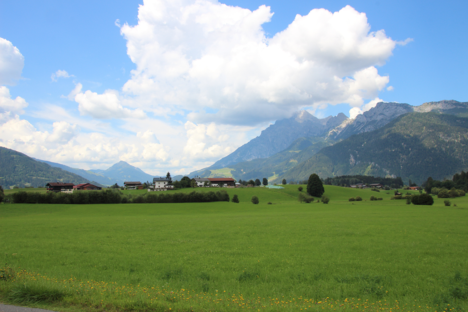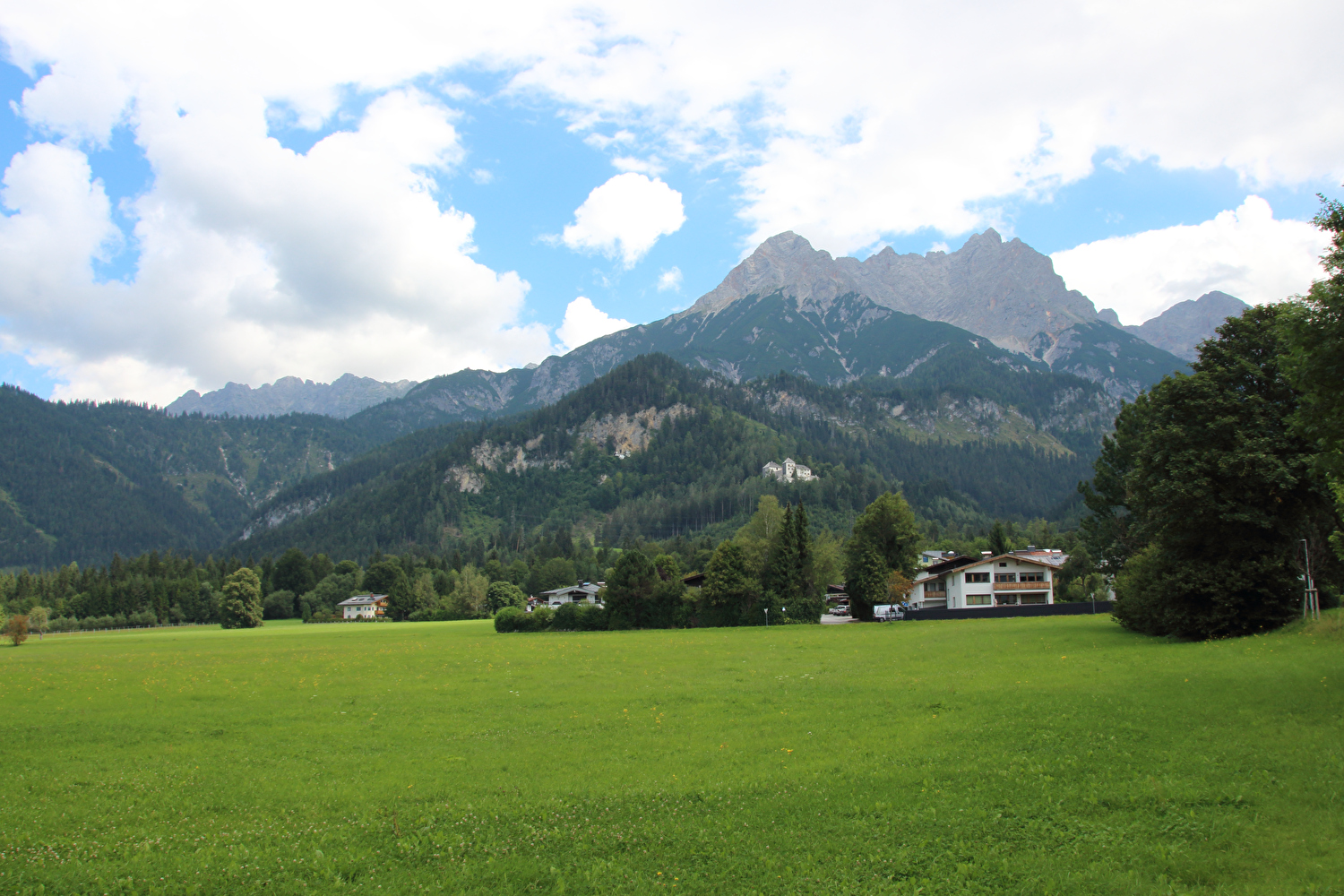 Südrand von Weißbach, Blick talabwärts auf die Loferer Steinberge … ![]() 300 dpi JPEG |