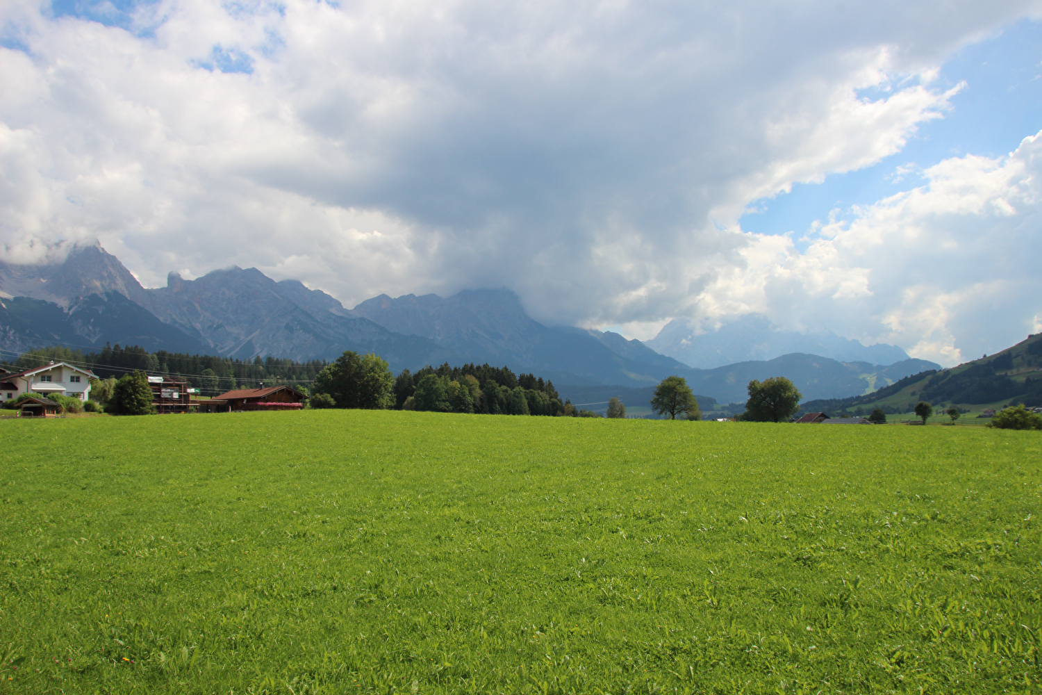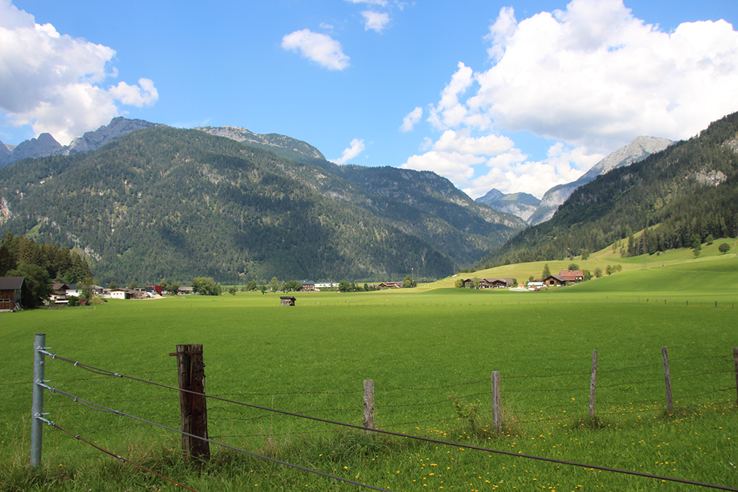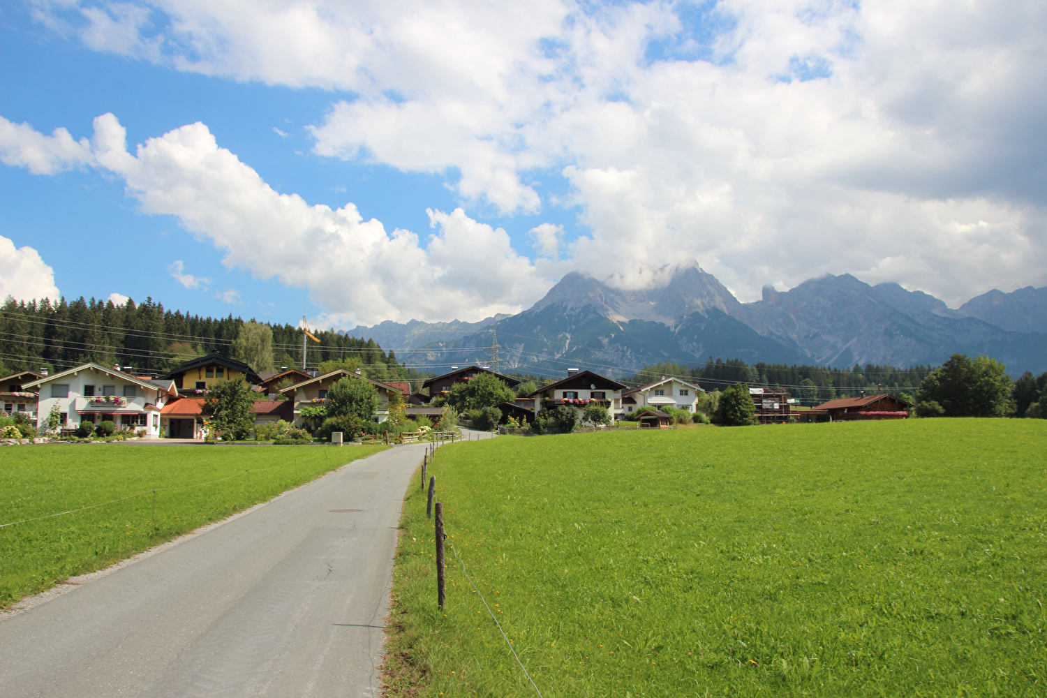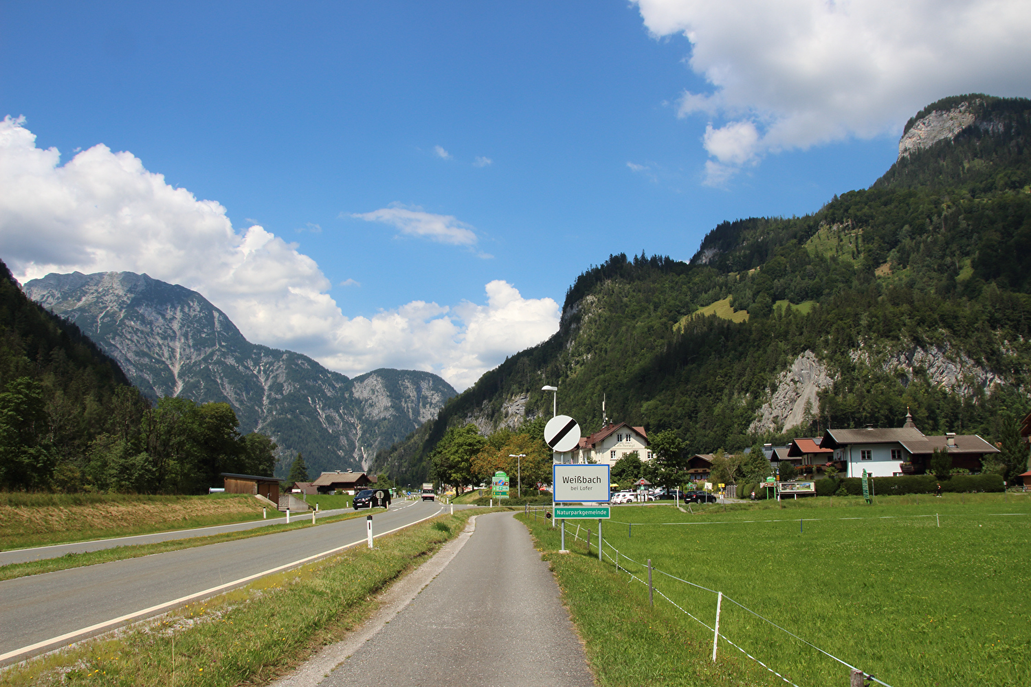 Südrand von Weißbach, Blick talabwärts auf die Loferer Steinberge … ![]() 300 dpi JPEG |