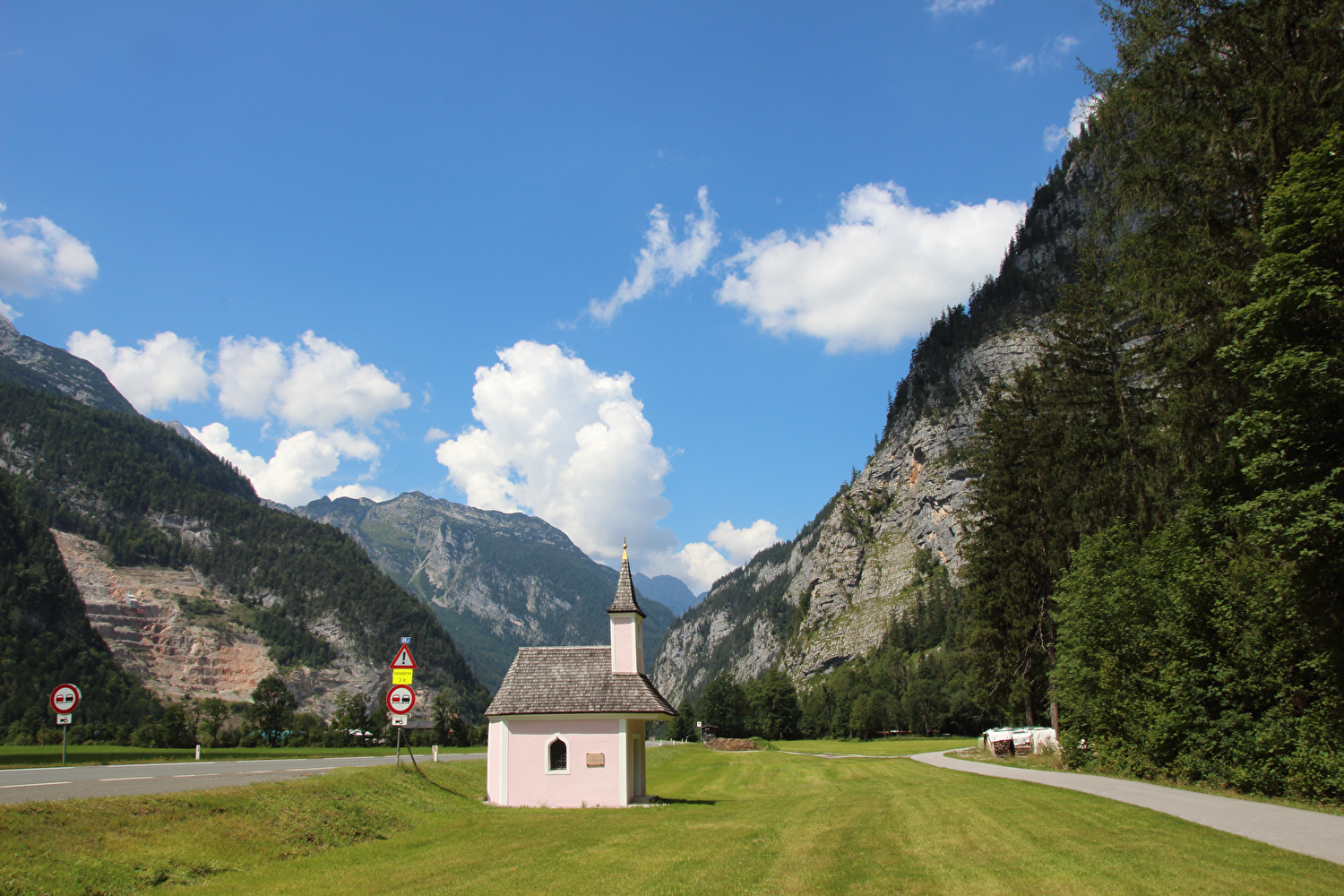 Blick talabwärts auf die Nusserkapelle in plüschigem Rosa ![]() 300 dpi JPEG |