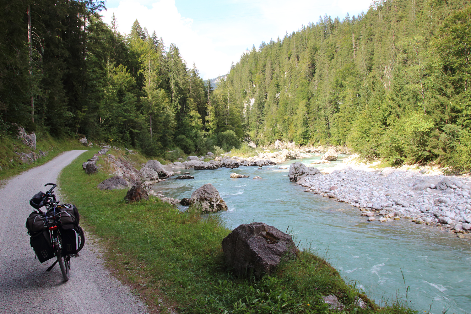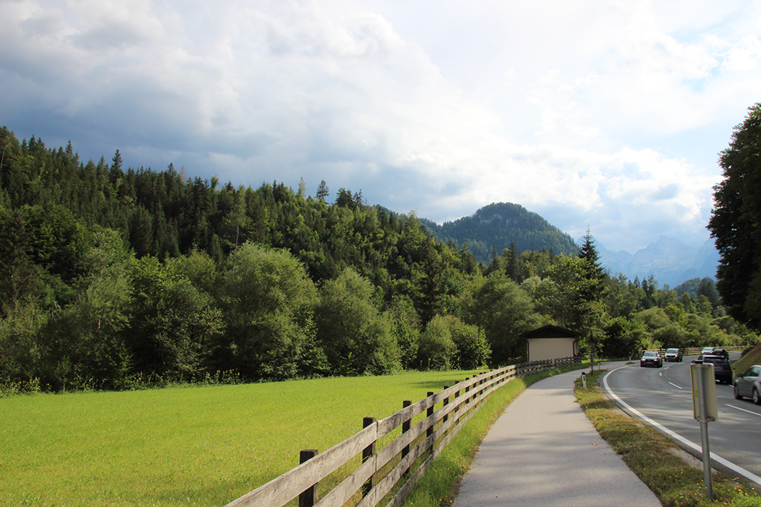 Beschreibung | Diese letzte Etappe der Tour war als Flachetappe zum Ausrollen geplant worden. Was hätte nach der Fahrt über Hochtor und Fuscher Törl am Vortag auch noch kommen sollen? Bereits zu Beginn der Etappe wurde anders als geplant auf den Tauernradweg gewechselt, um dem Stinkeverkehr auf der Straße zu entkommen. Im weiteren Verlauf der Etappe zeigte sich, dass eine durchgängige Fahrt auf der Straße auch gar nicht möglich gewesen wäre, da einige Abschnitte für Fahrradfahrer gesperrt sind. Der Tauernradweg ist deutlich welliger als die Straße im Saalachtal trassiert inklusive einiger Neigungen mit mehr als 10 %, die bergauf geschoben wurden, wobei es sich meist aber nur um jeweils wenige Meter Strecke handelte. Zudem ist der Tauernradweg nicht durchgängig asphaltiert. Auf so einer Schotterstrecke, die an der Grenze zwischen Österreich und Deutschland auf deutscher Seite vom Aschauer Bach wenige zehn Meter zum Haiderhof hinauf führt, wird eine Steigung von bis zu 30 % erreicht. Im Rahmen dieser Etappe brachte die Welligkeit des Tauernradweges gegenüber der Straße zusätzlich etwa 100 Höhenmeter bergauf mit sich. Etwas seltsam ist der Name „Tauernradweg“. Dessen südlichster Teil verläuft zwar am Nordrand der Hohen Tauern, der größte Teil dieses Radweges verläuft jedoch fernab irgendwelcher Tauern durch andere Alpenregionen und das nördliche Alpenvorland. Die Etappe führte durch das Zeller Becken und weiter ins Saalfeldner Becken. Beide Becken wirken optisch wie ein zusammenhängendes Becken. Sie sind nur durch eine landschaftlich unauffällige Talwasserscheide getrennt, die hier die Einzugsbereiche von Salzach und Saalach, die erst im nördlichen Alpenvorland in die Salzach mündet, trennt. Zwischen Maishofen und Bsuch bot sich ein letzter „Gletscherblick“ auf den Schmiedingerkees am Kitzsteinhorn, dessen Gipfel von Wolken umhüllt war. Das „Dach der Etappe“ konnte während der Fahrt nicht eindeutig identifiziert werden. Der Ort im Kollingwald war nicht zweifelsfrei als Sattelpunkt erkennbar. Auch fand sich vor Ort kein entsprechender Hinweis. Da im Kollingwald zudem sehr schlechte Lichtverhältnisse herrschten, gibt es von dem extrem unscheinbaren „Dach der Etappe“ kein Foto. Die Streckenführung des Tauernradweges in Saalfelden war auch wegen einiger Baustellen sehr unübersichtlich und kostete daher etwas Zeit. Eine steile Rampe im Verlauf des Tauernradweges innerhalb des Ortes wurde auf der Straße umfahren. Nördlich von Marzon tritt die Saalach in ein enges Durchbruchstal ein, das in Bad Reichenhall endet. Nördlich von Lofer liegen die nicht asphaltierten Abschnitte des Tauernradweges, über die diese Etappe führte. Die Bergwelt wird nach Norden hin erwartungsgemäß immer mittelgebirgiger. Von daher passte das Ende der Tour in Bad Reichenhall. Von den über den Bergen aufziehenden Regenschauern erreichten nur einmal einige Tropfen das Saalachtal, sodass die Etappe ohne das Anziehen der Regenjacke zu Ende gefahren werden konnte. |