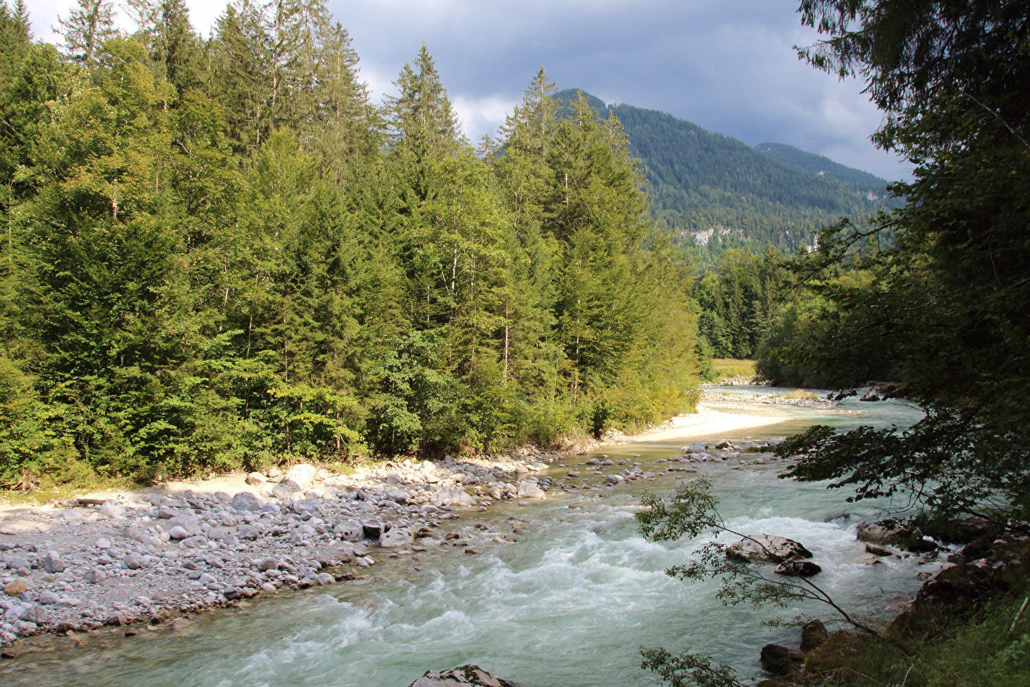 die Saalach bei Weißbach, Blick flussaufwärts … ![]() 300 dpi JPEG |