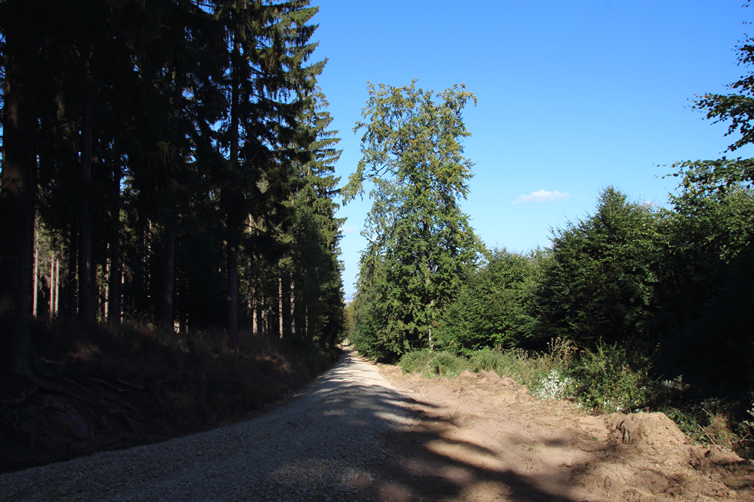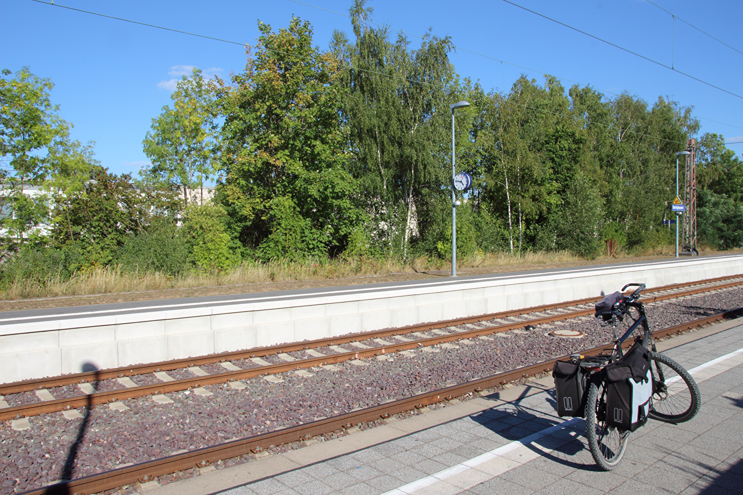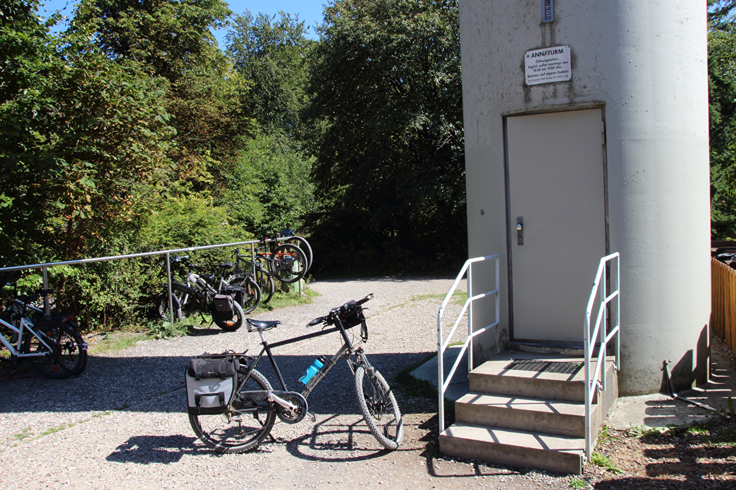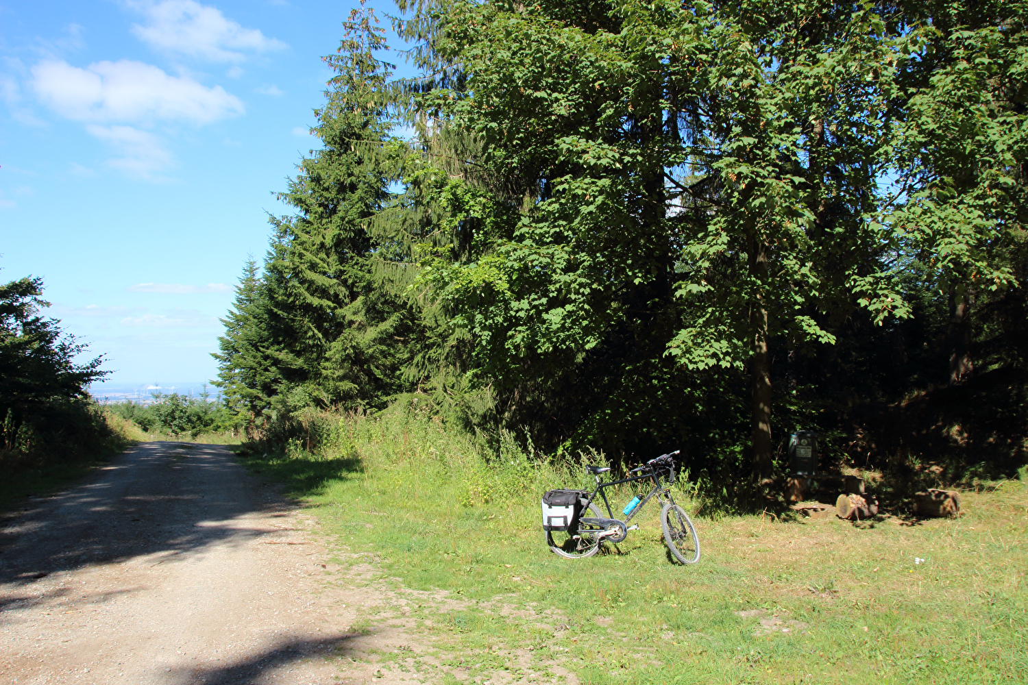Beschreibung | Nach den Alpen stand nun wieder biedere Hausmannskost auf den Tourplan, also „nur der Deister“. Das Wetter bot eine gute Fernsicht. Auf dem Weg zu Müllers Höh zeigte sich aber, dass die dort angepflanzten Douglasien den Nordblick bald verstellen werden. Die bis dato unbekannte Abfahrt vom Gelände der ehemaligen HAWK-Raketenstellung, von der nur noch einige Fundamentreste zu sehen sind, die zunehmend überwuchert werden, nach Barsinghausen enthält einen Abschnitt mit extrem schlechter Oberfläche. In diesem Bereich wurde Lockermaterial aufgeschüttet und nicht verdichtet. Selbst auf dem geländegängigen Fahrrad war die Fahrt bergab darauf grenzwertig und erfolgte daher nur in Schleichfahrt. |