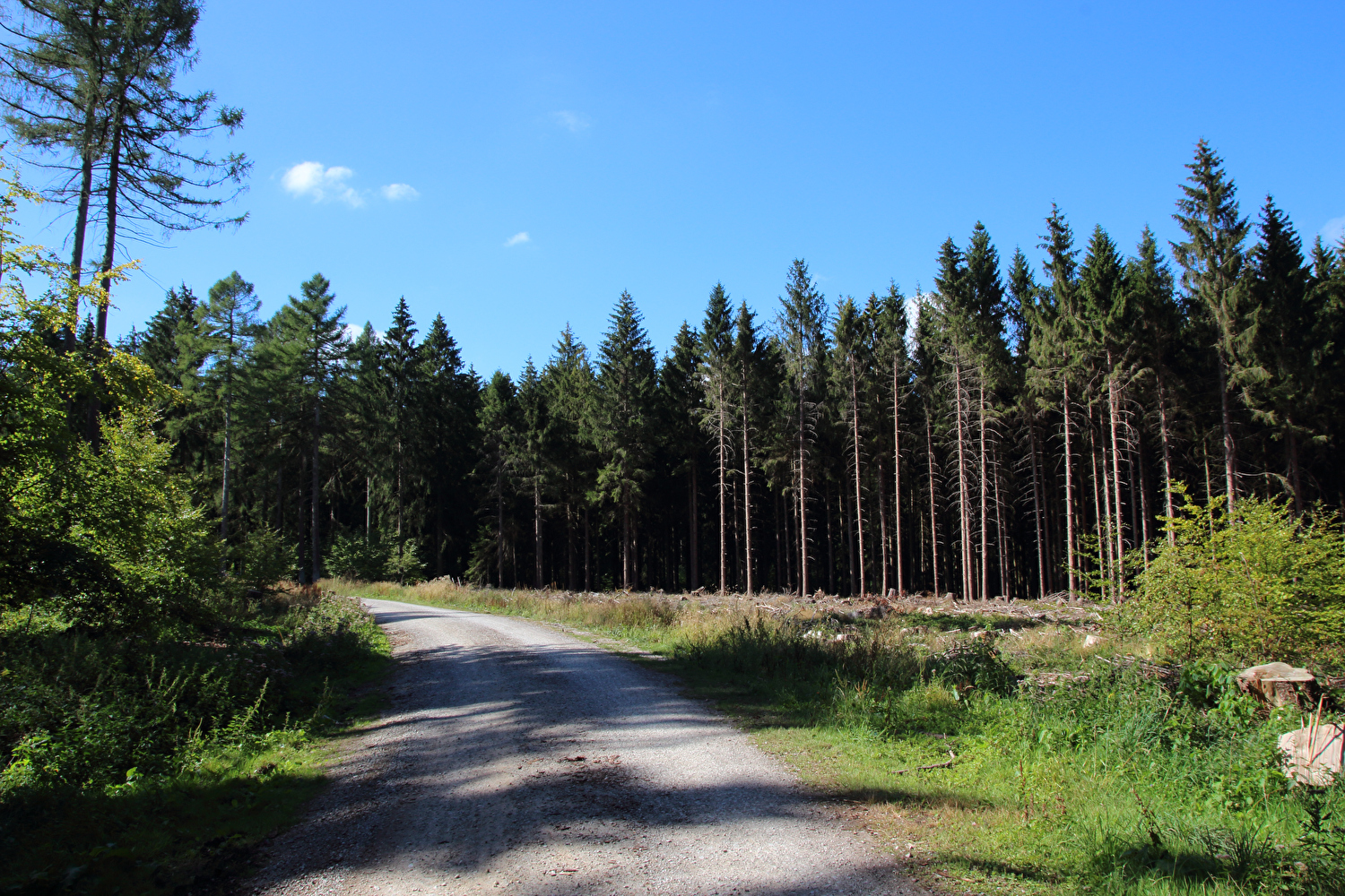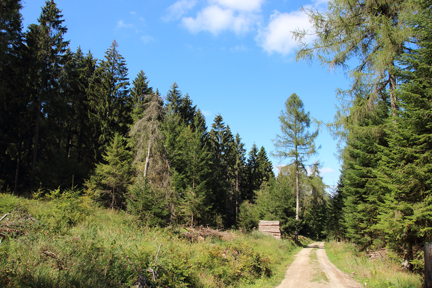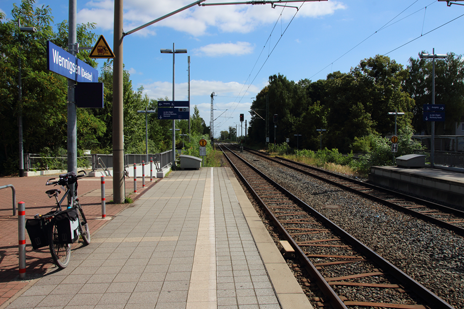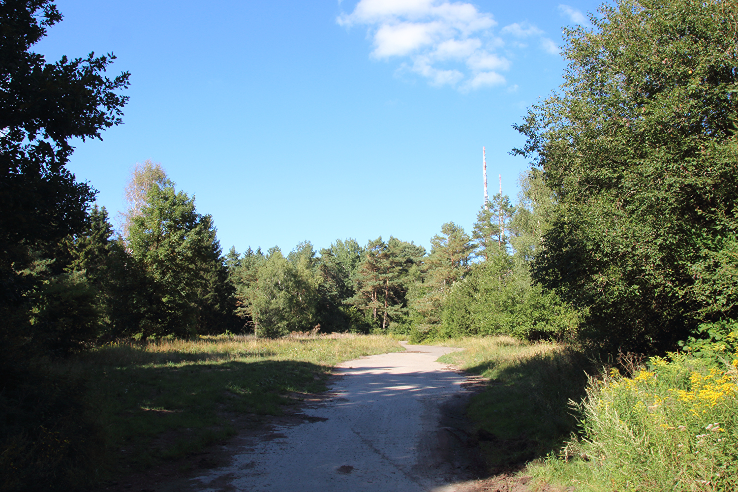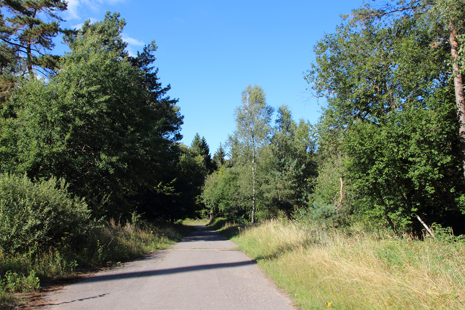 Beschreibung | Nach den Alpen stand nun wieder biedere Hausmannskost auf den Tourplan, also „nur der Deister“. Das Wetter bot eine gute Fernsicht. Auf dem Weg zu Müllers Höh zeigte sich aber, dass die dort angepflanzten Douglasien den Nordblick bald verstellen werden. Die bis dato unbekannte Abfahrt vom Gelände der ehemaligen HAWK-Raketenstellung, von der nur noch einige Fundamentreste zu sehen sind, die zunehmend überwuchert werden, nach Barsinghausen enthält einen Abschnitt mit extrem schlechter Oberfläche. In diesem Bereich wurde Lockermaterial aufgeschüttet und nicht verdichtet. Selbst auf dem geländegängigen Fahrrad war die Fahrt bergab darauf grenzwertig und erfolgte daher nur in Schleichfahrt. |