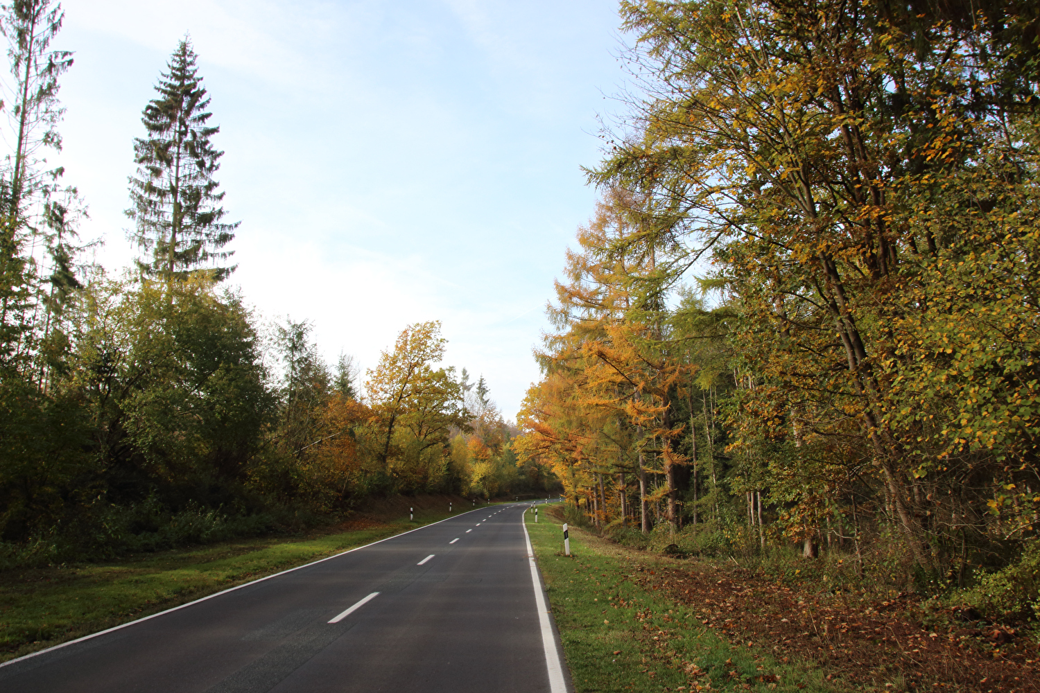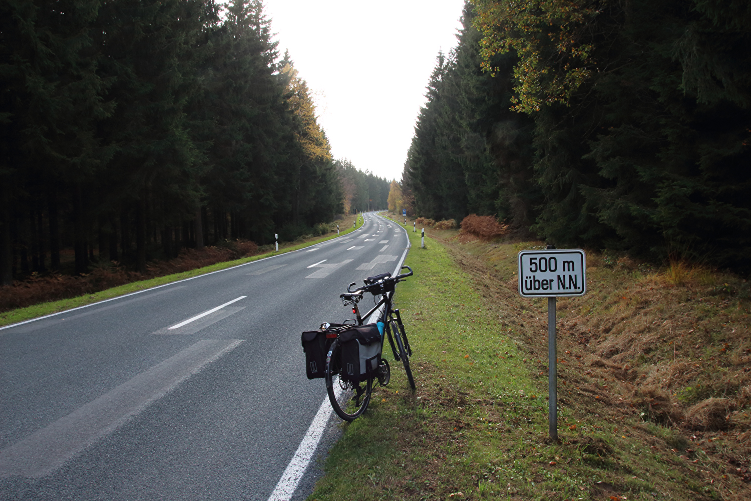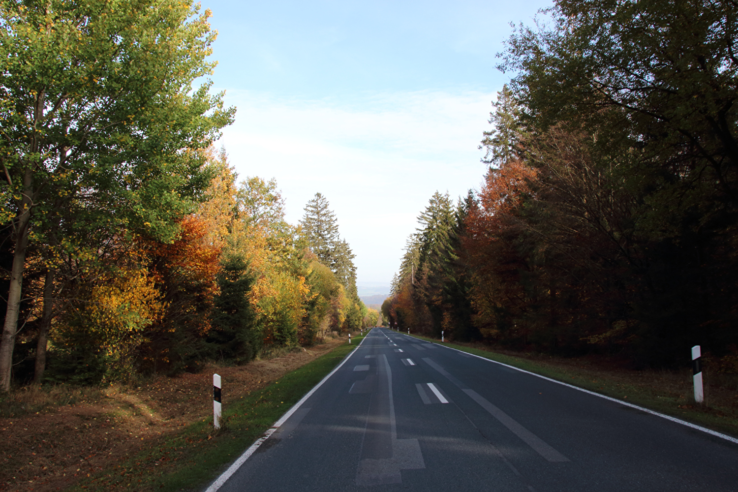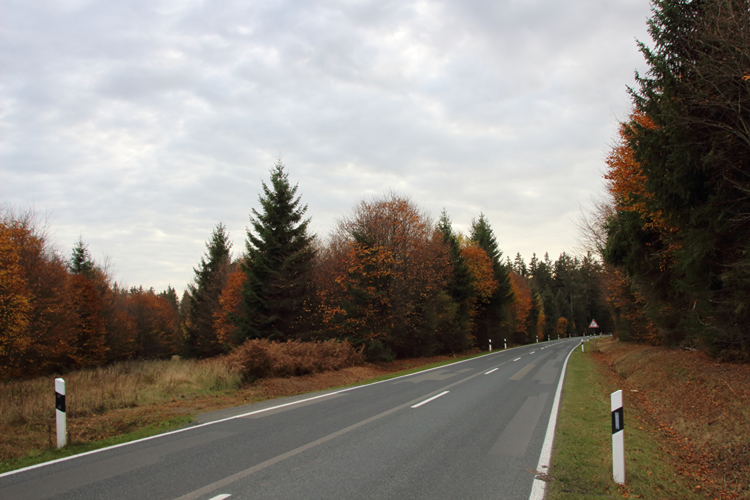 Beschreibung | Diese Tour war eine „Wiederholungstat“ in diesem Jahr. Die gleiche Route war schon einmal am 18.04.2022 gefahren worden. Hatte sich im Frühjahr gerade frisches Laub an Bäumen und Sträuchern gezeigt, bestimmte nun die Vergänglichkeit des fallenden Laubes das Landschaftsbild. Zu Beginn der Tour hingen in den Amtsbergen und im Elfas Wolken, was in so niedrigen Mittelgebirgen eher selten vorkommt. Insgesamt war die Wolkendecke zu Beginn der Tour nahezu vollständig geschlossen, wurde im Verlauf aber löchriger, sodass wenigstens zeitweise die Sonne schien. Mit der Überquerung des Sollings wurde zum letzten Mal in diesem Jahr eine Höhe über 500 m ü.NHN erreicht. Und wieder eine FFP2-Maske für die Tonne … ☹ |