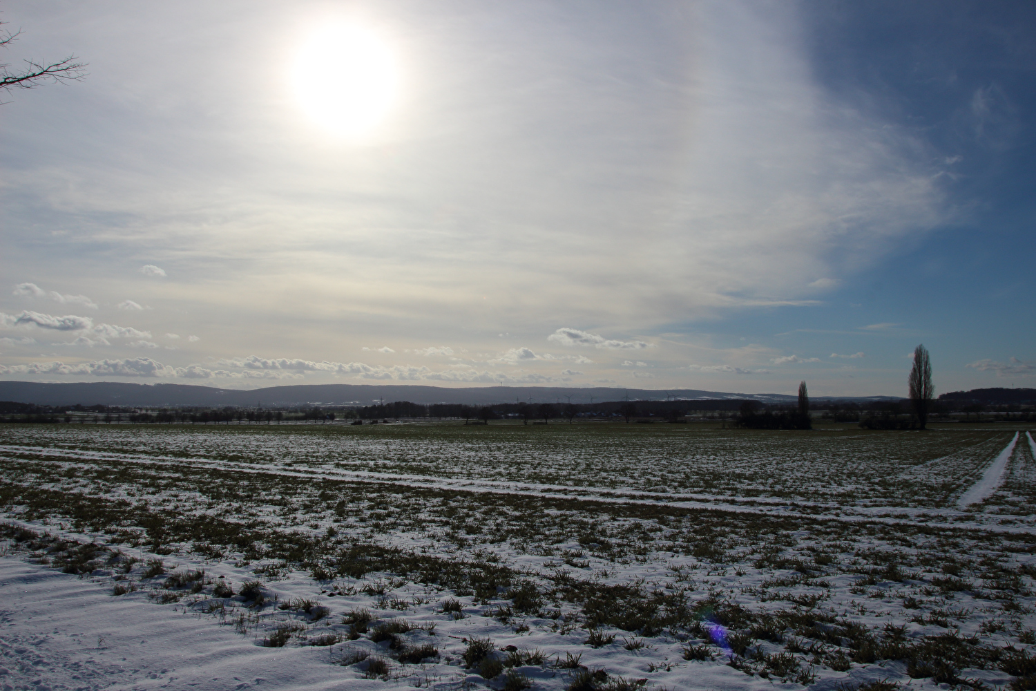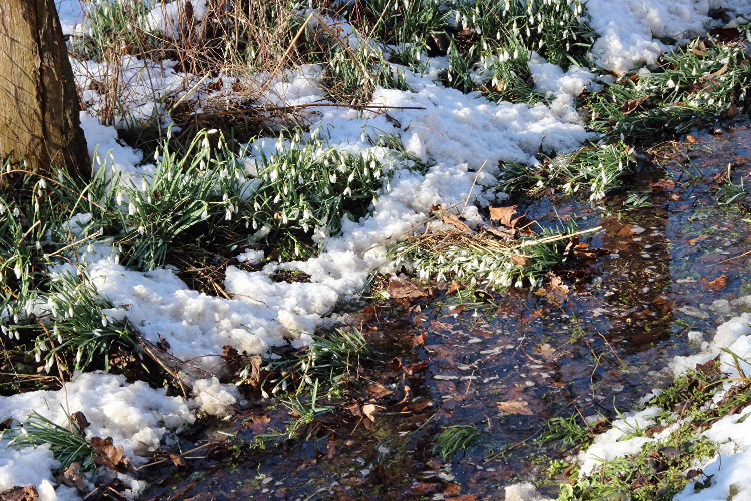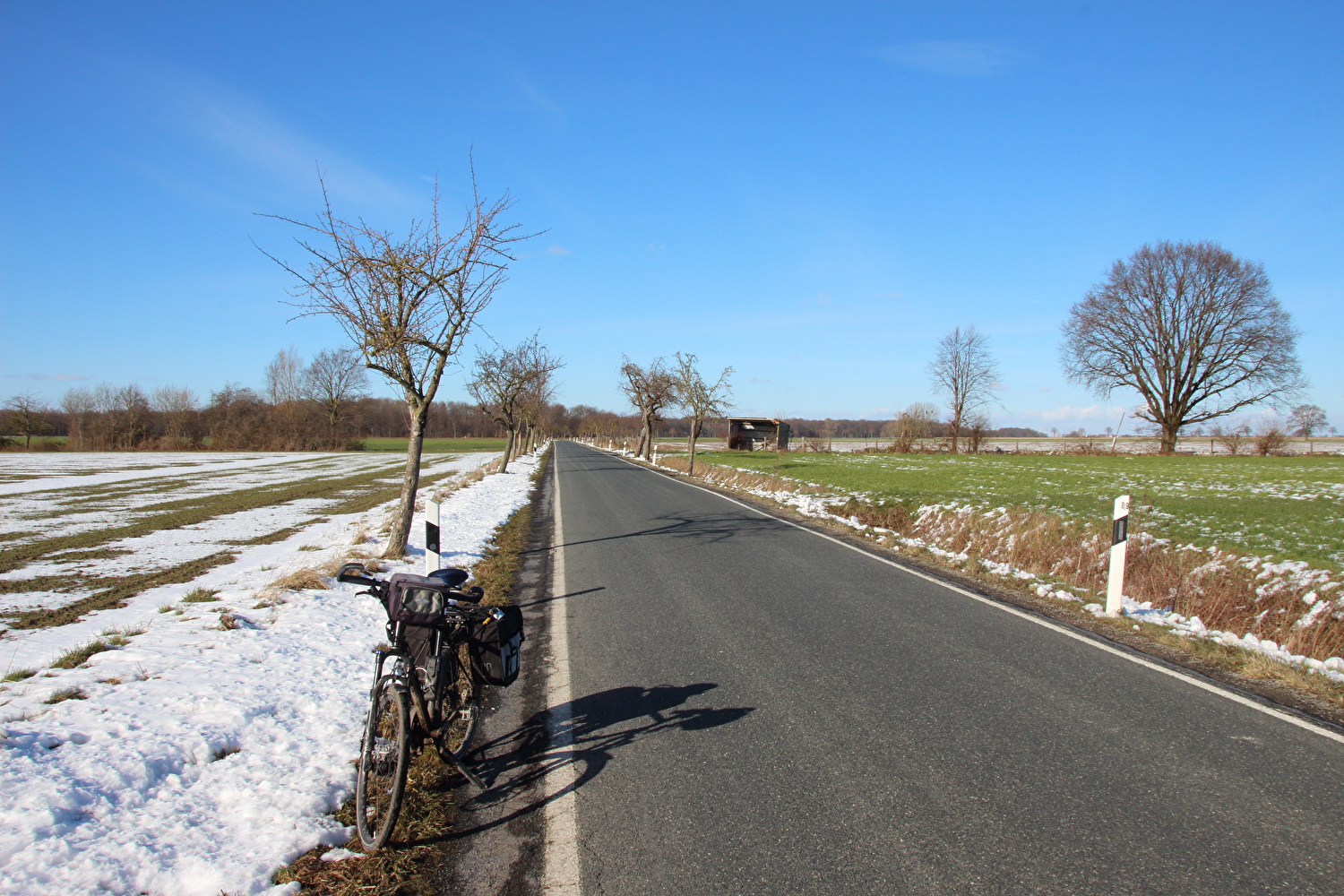 Beschreibung | Nix da Frühling! Über Nacht war der Winter mit einem Schneesturm zurück gekehrt. ☹ Dem entsprechend war die Landschaft mit einem weißen Leichentuch überzogen worden. Nach dem nächtlichen Schneesturm kam die Sonne raus und ließ den Schnee erst zögerlich, am Nachmittag dann zügiger schmelzen. Somit konnte das sonnige Wetter für eine kurze Tour genutzt werden, bei der die Fahrt auf Feldwegen allerdings nicht möglich war. Zwischen Ditterke und Everloh war allerdings auch der an der B65 verlaufende Radweg streckenweise unpassierbar, sodass auf die Straße gewechselt werden musste. Trotz des sonnigen Wetters war es recht kalt. Die Fernsicht reichte gerade noch bis zum Brocken im Harz, dessen Gipfel in Wolken lag. Die bei Königseiche blühenden Schneeglöckchen mussten teilweise ihre Qualitäten als „Wasserglöckchen“ beweisen. |