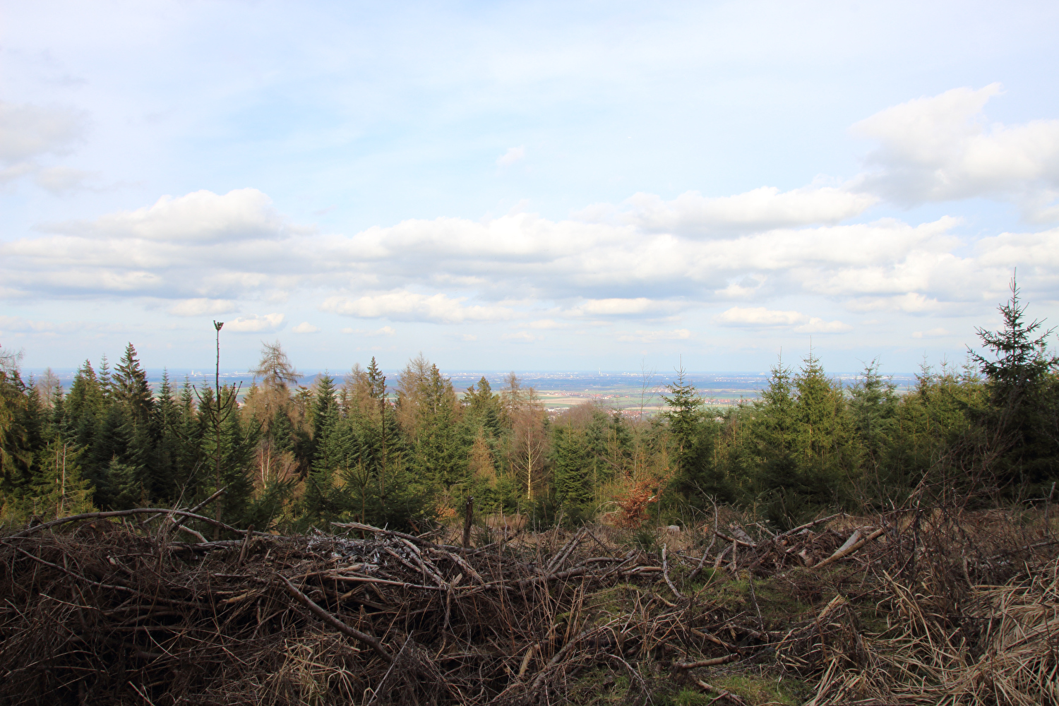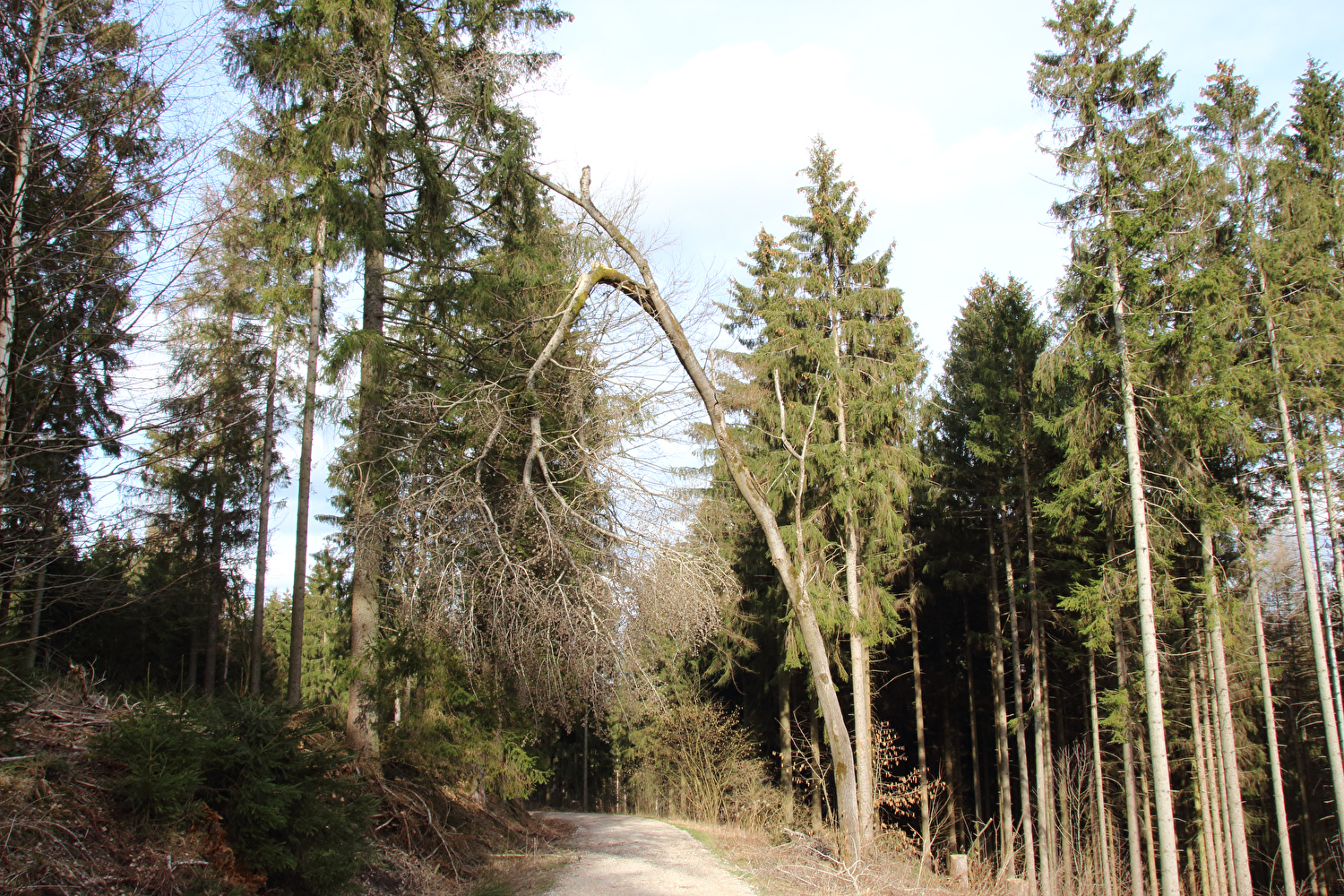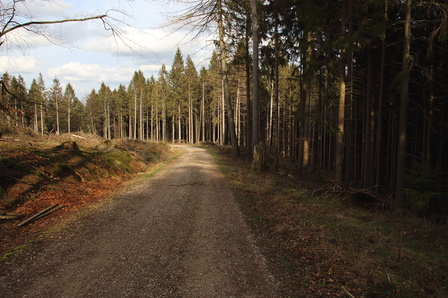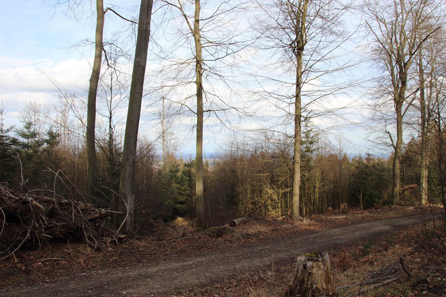 Beschreibung | Nach dem völlig überflüssigen Wintereinbruch eine Woche zuvor war es an diesem Tag endlich warm genug für eine Deistertour und somit auch die erste Tour auf dem geländegängigen Fahrrad in diesem Jahr. Die Tour startete bei recht sonnigem Wetter. Es herrschte eine sehr gute Fernsicht. Im späteren Verlauf der Tour zogen vermehrt Wolken auf. Laubbäume und Sträucher mit Ausnahme der Europäischen Stechpalme (Ilex aquifolium) zeigten sich noch kahl und gestatteten somit einige Weitblicke, die so nur in der laubfreien Zeit möglich sind. Völlig kahl wirkte der Deister nicht, denn im Deister gibt es noch immergrüne Nadelbäume, vor allem Gemeine Fichte (Picea abies), aber auch Weiß-Tanne (Abies alba) und Gewöhnliche Douglasie (Pseudotsuga menziesii), wobei letztere auch Nachteile mit sich bringt. Diese schnellwüchsigen Bäume wurden unter anderem direkt unterhalb des „Deister Nordblick“ angepflanzt, wo sie aktuell diesen Blick nach Norden zuwuchern. Schon zum Ende der diesjährigen Vegetationsperiode könnte sich der Nordblick erledigt haben. |