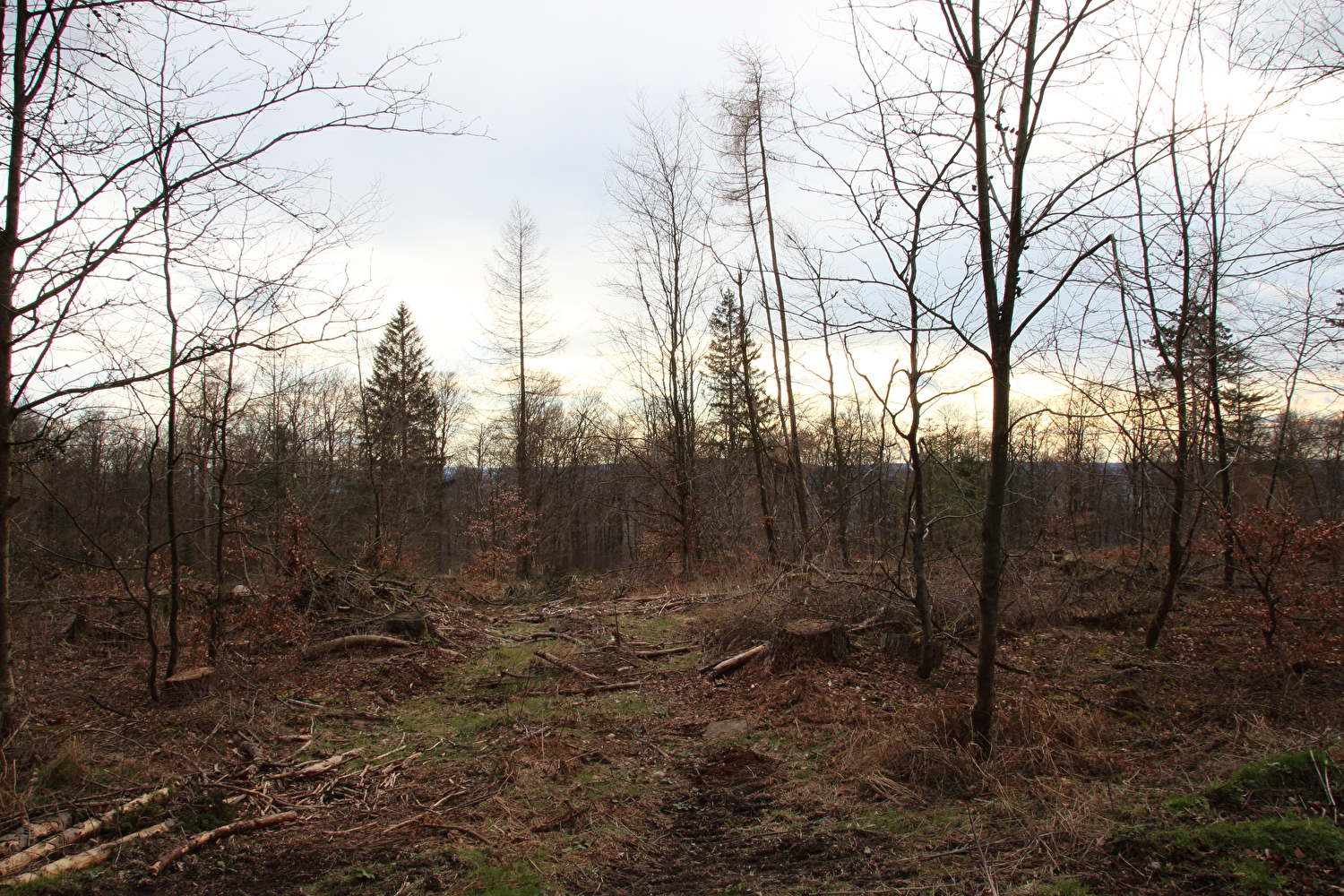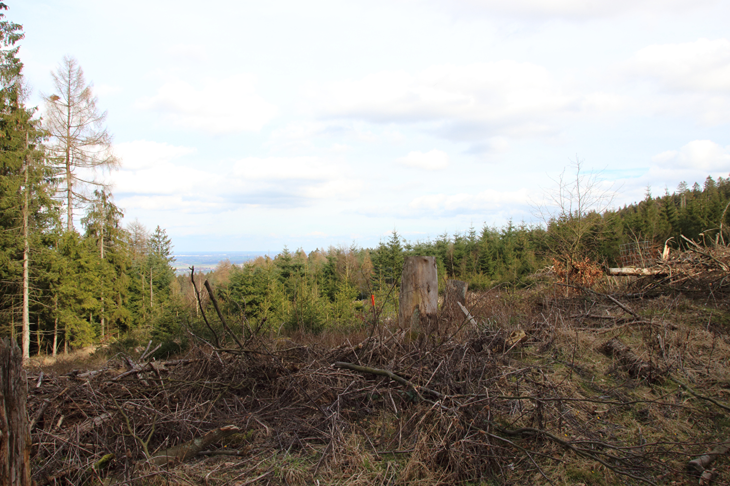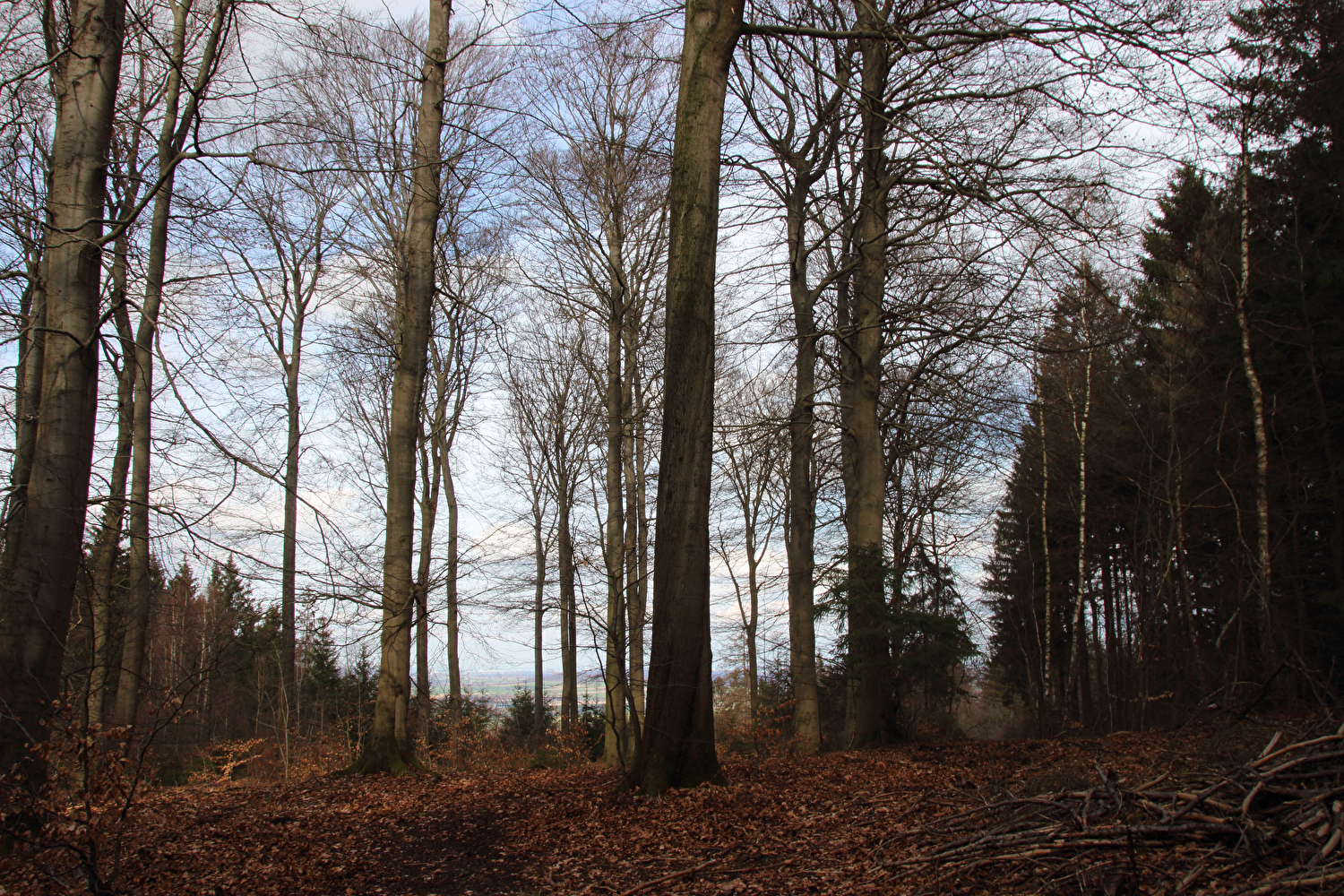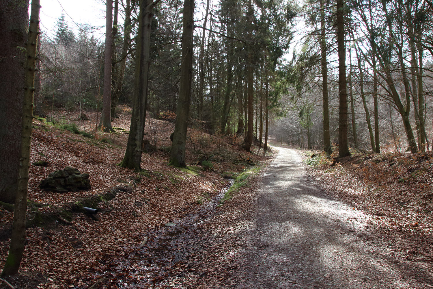 Beschreibung | Nach dem völlig überflüssigen Wintereinbruch eine Woche zuvor war es an diesem Tag endlich warm genug für eine Deistertour und somit auch die erste Tour auf dem geländegängigen Fahrrad in diesem Jahr. Die Tour startete bei recht sonnigem Wetter. Es herrschte eine sehr gute Fernsicht. Im späteren Verlauf der Tour zogen vermehrt Wolken auf. Laubbäume und Sträucher mit Ausnahme der Europäischen Stechpalme (Ilex aquifolium) zeigten sich noch kahl und gestatteten somit einige Weitblicke, die so nur in der laubfreien Zeit möglich sind. Völlig kahl wirkte der Deister nicht, denn im Deister gibt es noch immergrüne Nadelbäume, vor allem Gemeine Fichte (Picea abies), aber auch Weiß-Tanne (Abies alba) und Gewöhnliche Douglasie (Pseudotsuga menziesii), wobei letztere auch Nachteile mit sich bringt. Diese schnellwüchsigen Bäume wurden unter anderem direkt unterhalb des „Deister Nordblick“ angepflanzt, wo sie aktuell diesen Blick nach Norden zuwuchern. Schon zum Ende der diesjährigen Vegetationsperiode könnte sich der Nordblick erledigt haben. |