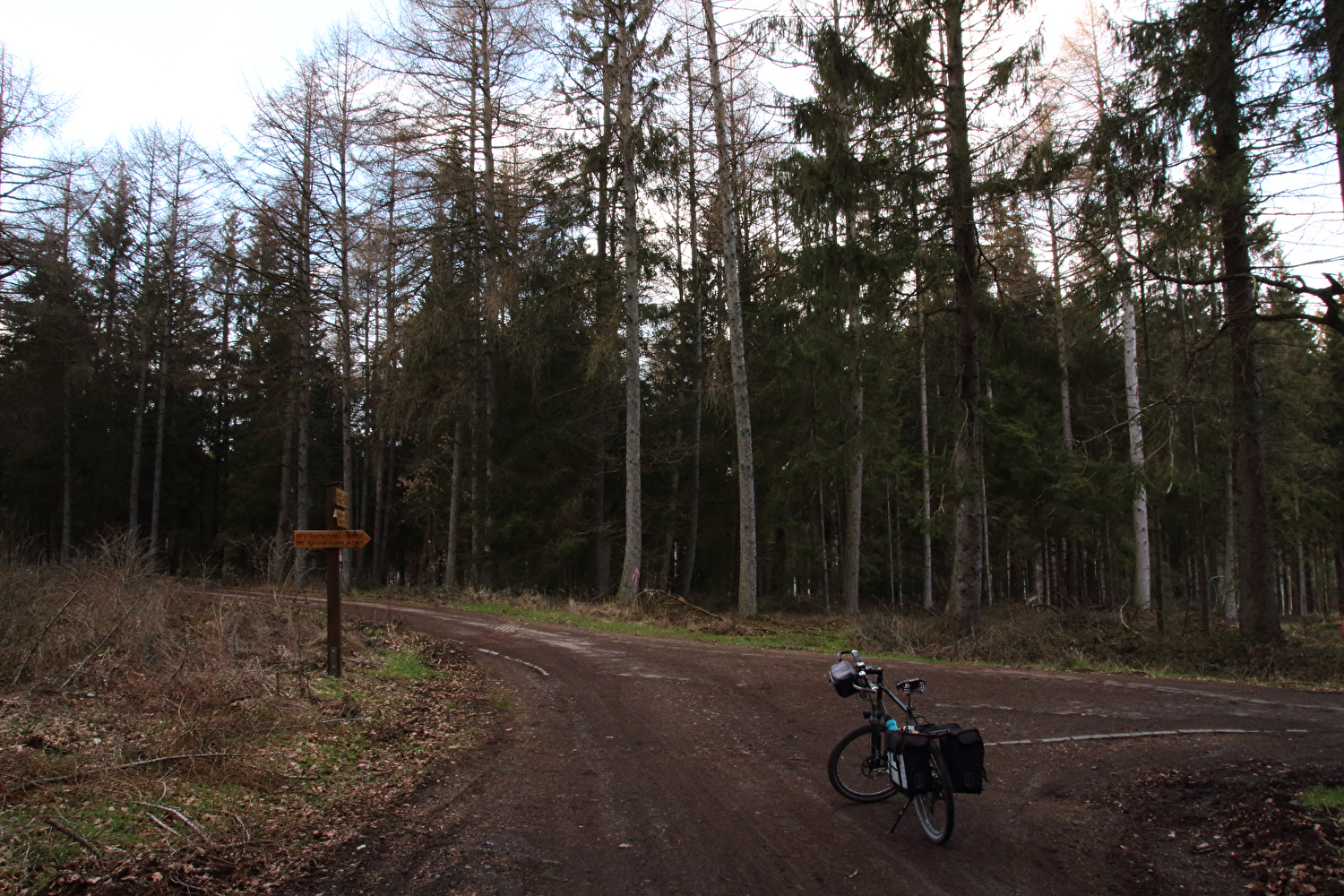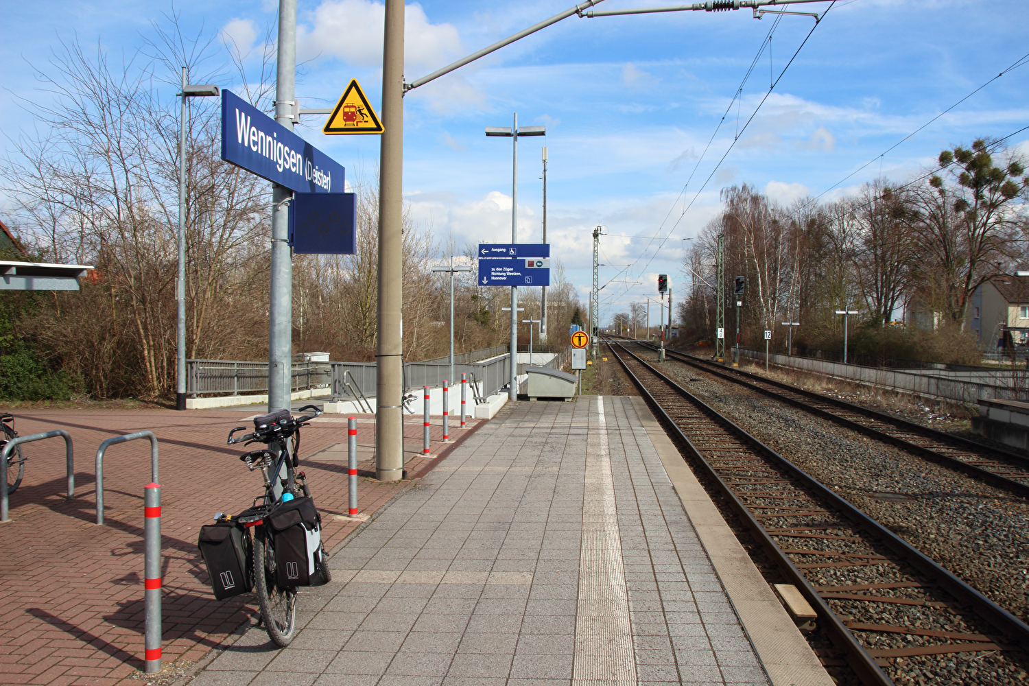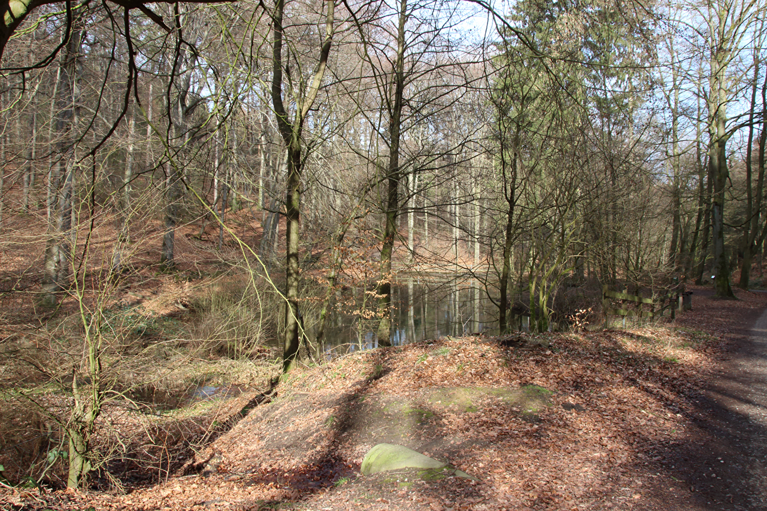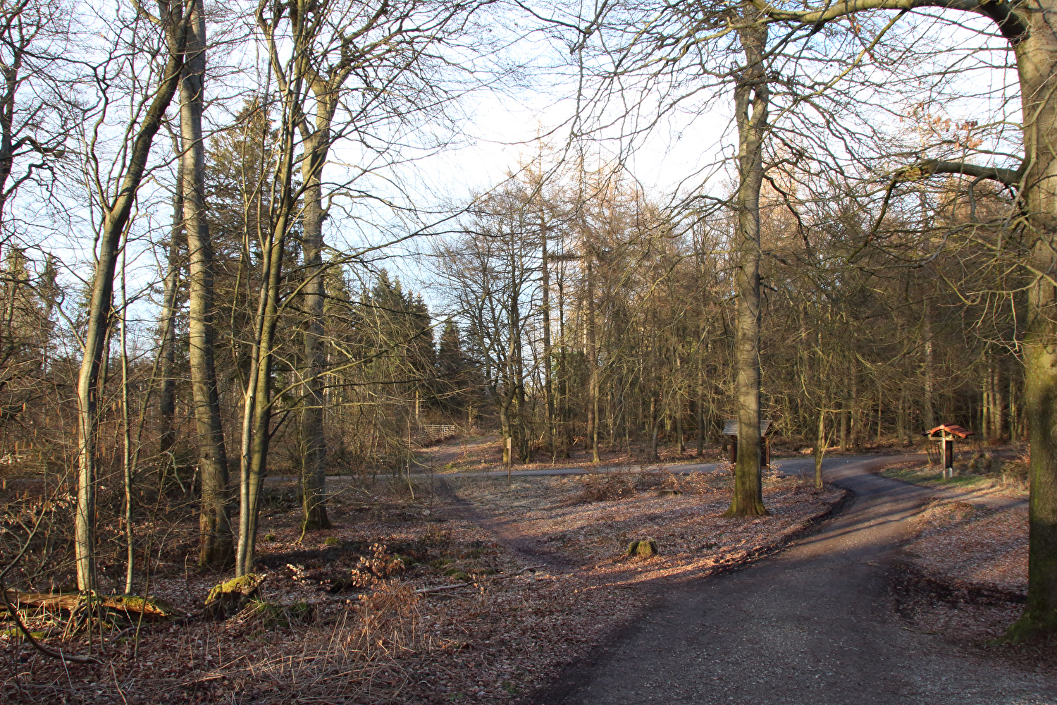 Beschreibung | Nach dem völlig überflüssigen Wintereinbruch eine Woche zuvor war es an diesem Tag endlich warm genug für eine Deistertour und somit auch die erste Tour auf dem geländegängigen Fahrrad in diesem Jahr. Die Tour startete bei recht sonnigem Wetter. Es herrschte eine sehr gute Fernsicht. Im späteren Verlauf der Tour zogen vermehrt Wolken auf. Laubbäume und Sträucher mit Ausnahme der Europäischen Stechpalme (Ilex aquifolium) zeigten sich noch kahl und gestatteten somit einige Weitblicke, die so nur in der laubfreien Zeit möglich sind. Völlig kahl wirkte der Deister nicht, denn im Deister gibt es noch immergrüne Nadelbäume, vor allem Gemeine Fichte (Picea abies), aber auch Weiß-Tanne (Abies alba) und Gewöhnliche Douglasie (Pseudotsuga menziesii), wobei letztere auch Nachteile mit sich bringt. Diese schnellwüchsigen Bäume wurden unter anderem direkt unterhalb des „Deister Nordblick“ angepflanzt, wo sie aktuell diesen Blick nach Norden zuwuchern. Schon zum Ende der diesjährigen Vegetationsperiode könnte sich der Nordblick erledigt haben. |