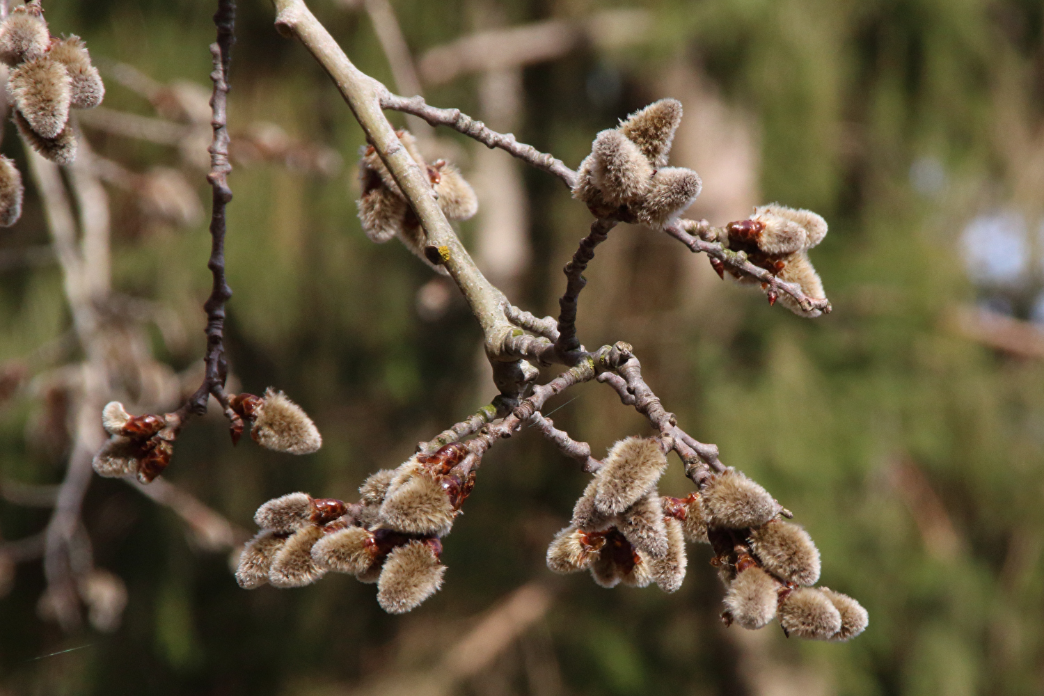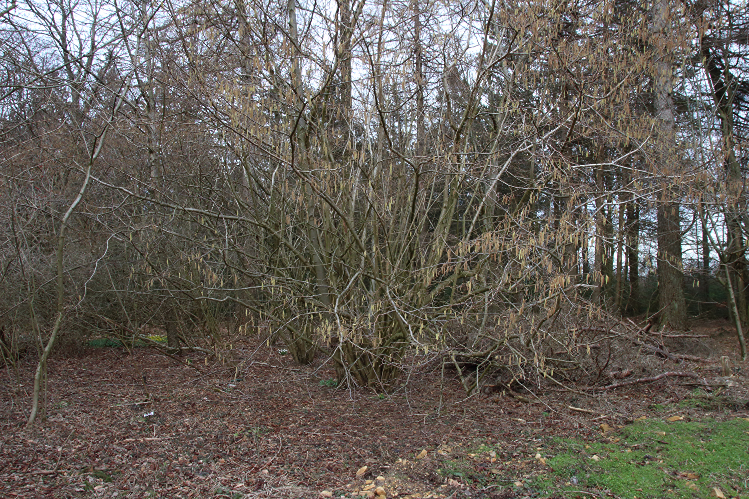 … und Blick auf einen blühenden Haselstrauch (Corylus avellana) ![]() 300 dpi JPEG |