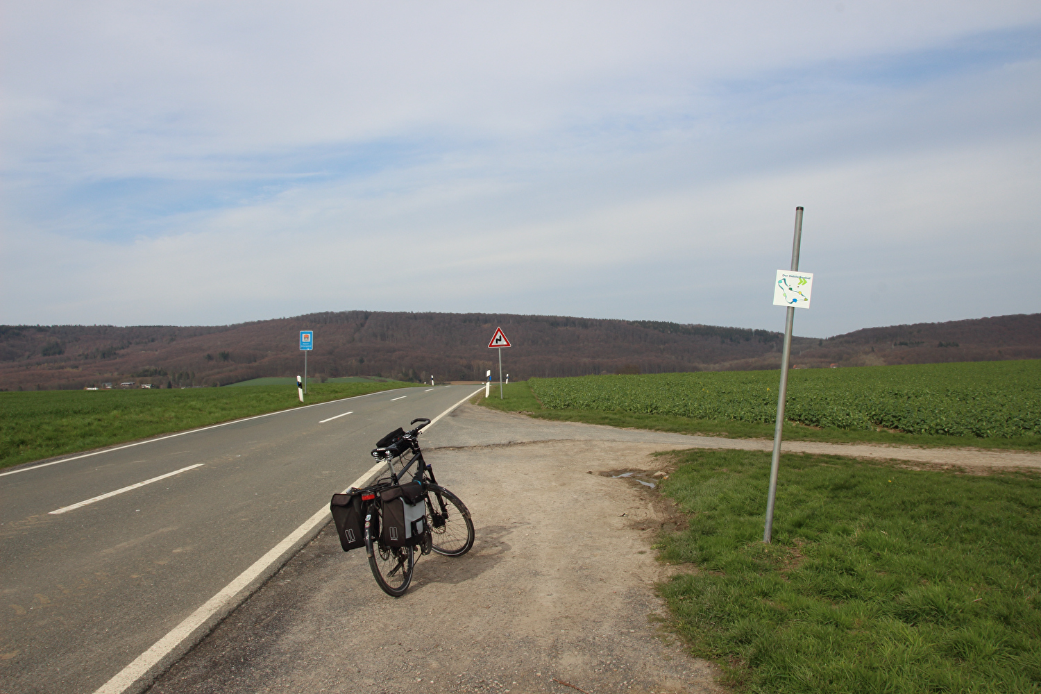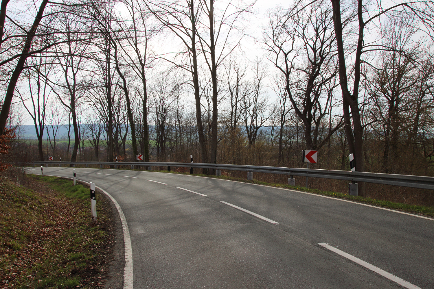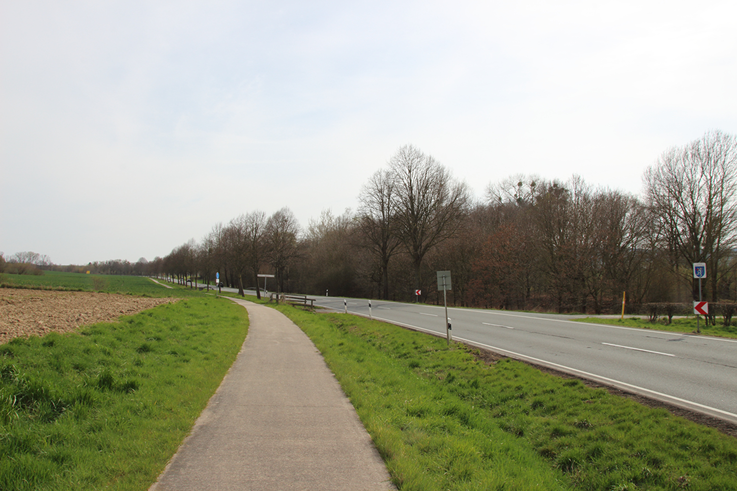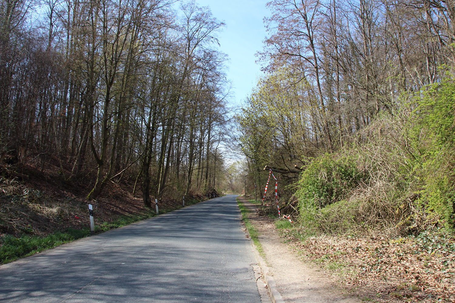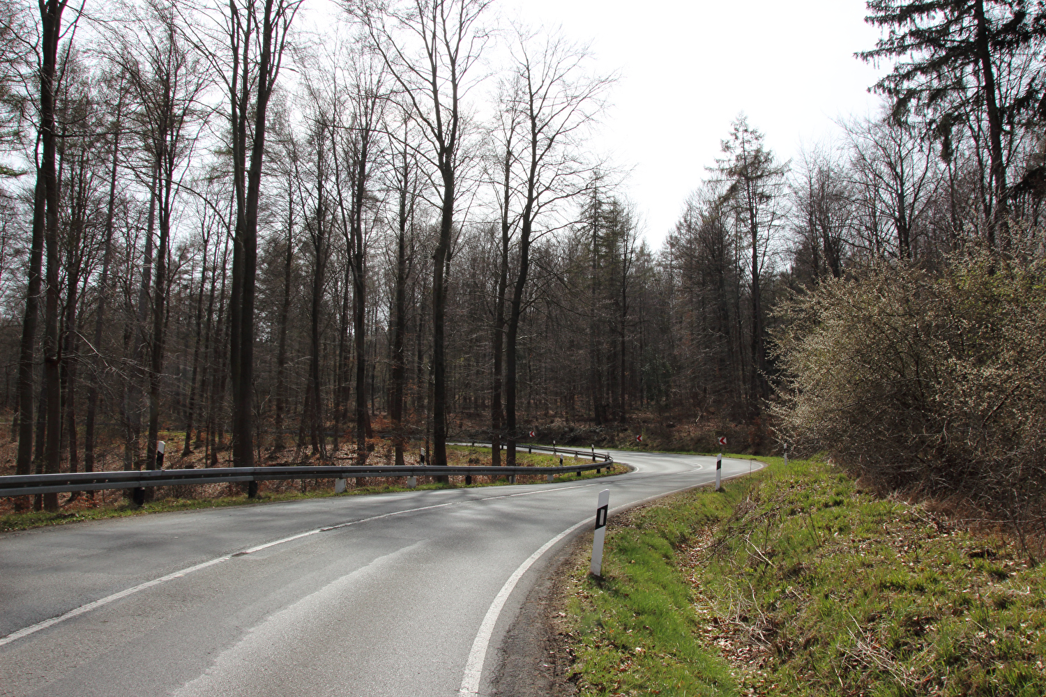 Beschreibung | Diese Tour sollte eigentlich weiter südlich im Leinebergland gefahren werden, aber die Bahnen feierten mal wieder Chaostage. Für den für die Anreise nach Kreiensen geplanten Regionalexpress wurden bei der Ankunft im Hauptbahnhof Hannover 40 min Verspätung angezeigt. Kurz darauf wechselte die Anzeige auf „Zug fällt aus“. Der fahrplanmäßig eine Stunde später verkehrende Zug wurde gleich mit 30 min Verspätung angezeigt. Damit hatte sich eine Tour mit Bahnanreise erledigt. ☹ Deshalb wurde am Hauptbahnhof auf eine Deistertour ohne Bahnfahrt(en) umgeplant, da diese wenigstens entsprechend Höhenmeter bergauf bot und zudem ohne Zuhilfenahme einer Landkarte gefahren werden konnte. Nach der lästigen Ausfahrt aus der Stadt gen Westen wurden Benther Berg und Gehrdener Berg überquert, um letztlich über den Nienstedter Pass und die dahinter liegenden Orte Nienstedt, Messenkamp und Eimbeckhausen zu fahren. Ab dem Nienstedter Pass hat diese Route etwa die Form eines Triangels. Die Orte Nienstedt, Messenkamp und Eimbeckhausen bilden die Ecken des Triangels, wobei Nienstedt im oberen Winkel liegt und dieses Triangel am Nienstedter Pass aufgehängt ist. Die Straße zwischen Eimbeckhausen und Nienstedt ist trotz des recht geringen Höhenunterschieds von nur 113 m zwischen ihrem unteren Ende in Eimbeckhausen und der namenlosen Passhöhe als für Zugtiergespanne taugliche Bergstrecke mit insgesamt zehn Kehren trassiert. Acht dieser Kehren liegen zwischen Eimbeckhausen und Passhöhe. Mit dem Nienstedter Pass wurde das „Dach der Tour“ an diesem Tag zweimal überquert. Die Tour startete bei sonnigem Wetter. Im Tagesverlauf zogen vermehrt Wolken auf, zunächst Federwolken, dann Schleierwolken und zum Ende der Tour hin Schichtwolken, welche die Sonne schließlich vollständig verdeckten. Während sich die größeren Laubbäume noch kahl zeigten, war an Sträuchern und jungen Bäumen teilweise erster Laubaustrieb zu erkennen. |