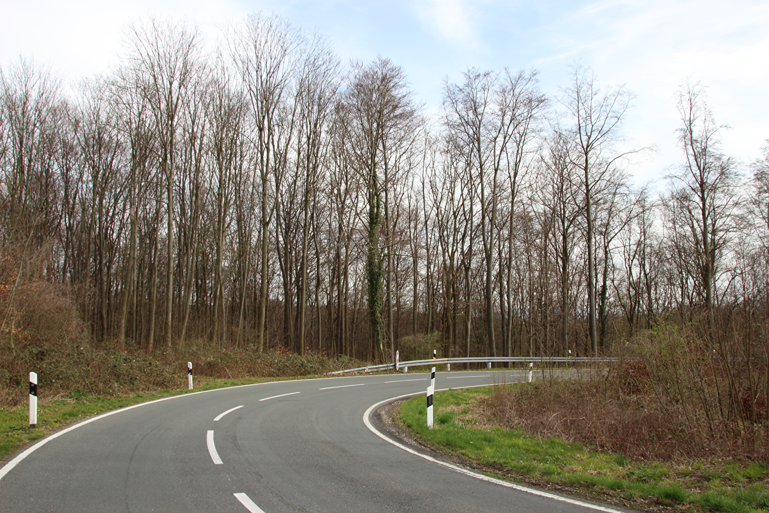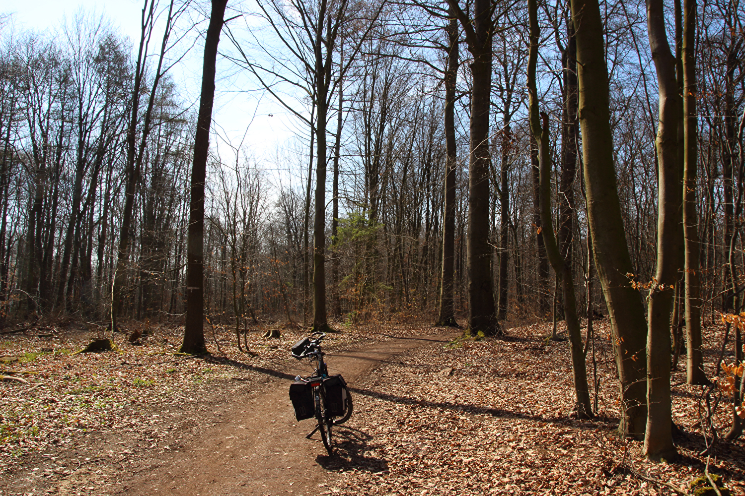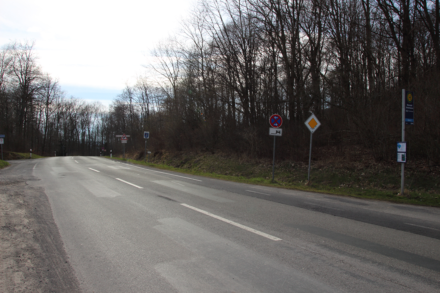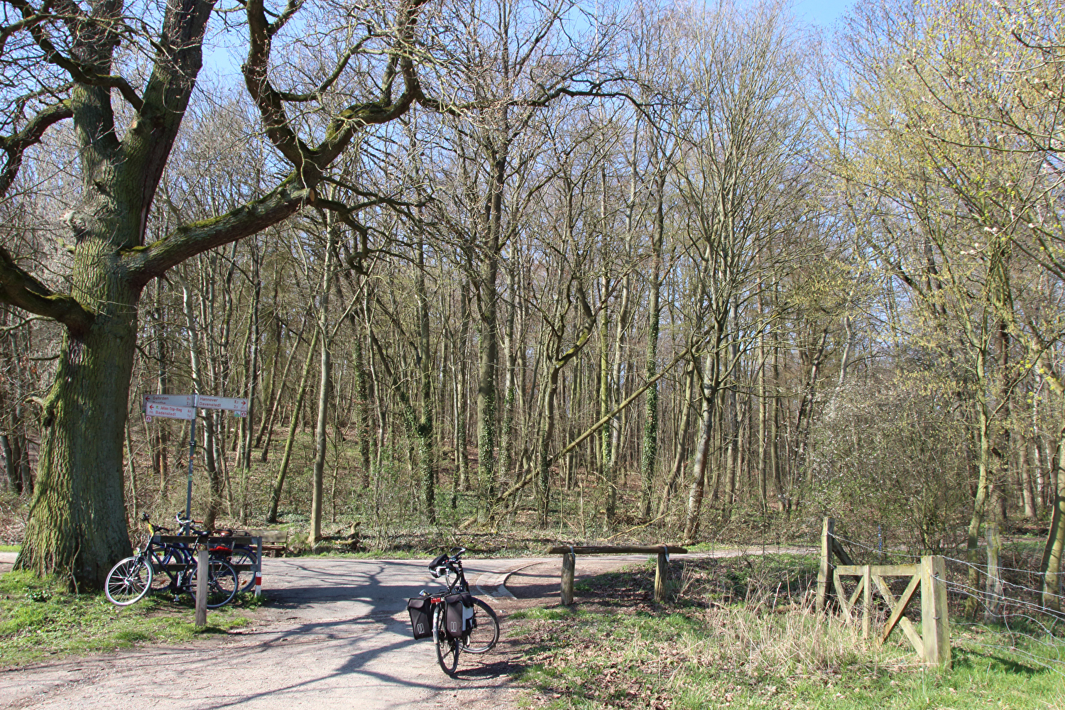 Beschreibung | Diese Tour sollte eigentlich weiter südlich im Leinebergland gefahren werden, aber die Bahnen feierten mal wieder Chaostage. Für den für die Anreise nach Kreiensen geplanten Regionalexpress wurden bei der Ankunft im Hauptbahnhof Hannover 40 min Verspätung angezeigt. Kurz darauf wechselte die Anzeige auf „Zug fällt aus“. Der fahrplanmäßig eine Stunde später verkehrende Zug wurde gleich mit 30 min Verspätung angezeigt. Damit hatte sich eine Tour mit Bahnanreise erledigt. ☹ Deshalb wurde am Hauptbahnhof auf eine Deistertour ohne Bahnfahrt(en) umgeplant, da diese wenigstens entsprechend Höhenmeter bergauf bot und zudem ohne Zuhilfenahme einer Landkarte gefahren werden konnte. Nach der lästigen Ausfahrt aus der Stadt gen Westen wurden Benther Berg und Gehrdener Berg überquert, um letztlich über den Nienstedter Pass und die dahinter liegenden Orte Nienstedt, Messenkamp und Eimbeckhausen zu fahren. Ab dem Nienstedter Pass hat diese Route etwa die Form eines Triangels. Die Orte Nienstedt, Messenkamp und Eimbeckhausen bilden die Ecken des Triangels, wobei Nienstedt im oberen Winkel liegt und dieses Triangel am Nienstedter Pass aufgehängt ist. Die Straße zwischen Eimbeckhausen und Nienstedt ist trotz des recht geringen Höhenunterschieds von nur 113 m zwischen ihrem unteren Ende in Eimbeckhausen und der namenlosen Passhöhe als für Zugtiergespanne taugliche Bergstrecke mit insgesamt zehn Kehren trassiert. Acht dieser Kehren liegen zwischen Eimbeckhausen und Passhöhe. Mit dem Nienstedter Pass wurde das „Dach der Tour“ an diesem Tag zweimal überquert. Die Tour startete bei sonnigem Wetter. Im Tagesverlauf zogen vermehrt Wolken auf, zunächst Federwolken, dann Schleierwolken und zum Ende der Tour hin Schichtwolken, welche die Sonne schließlich vollständig verdeckten. Während sich die größeren Laubbäume noch kahl zeigten, war an Sträuchern und jungen Bäumen teilweise erster Laubaustrieb zu erkennen. |