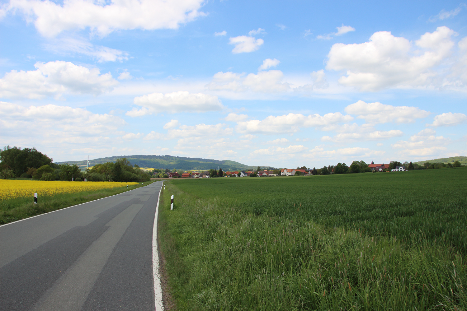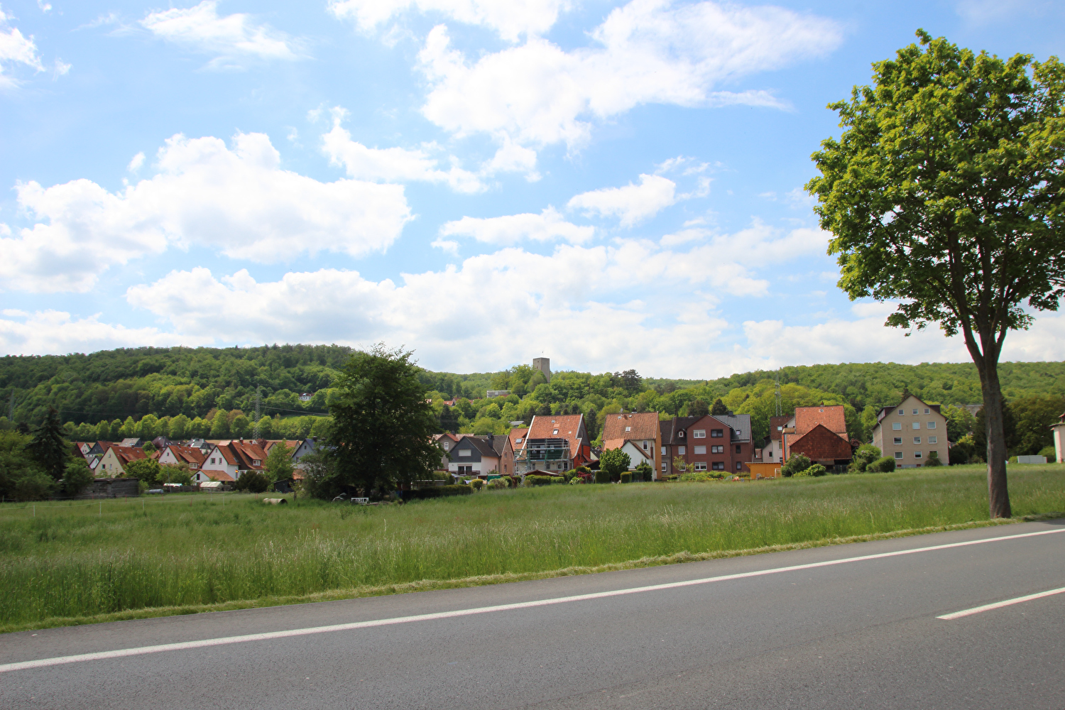 zwischen Delligsen und Kreisel L462↺L484, Blick über Delligsen zum Burgberg im Hils ![]() 300 dpi JPEG |