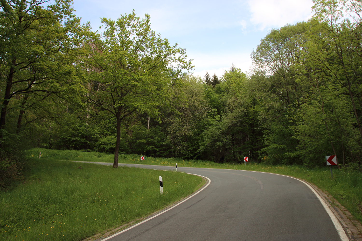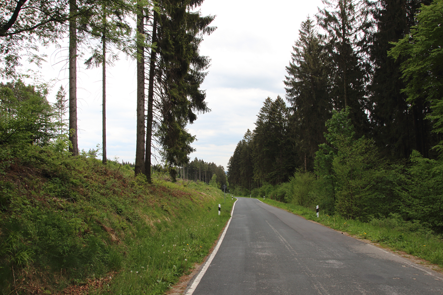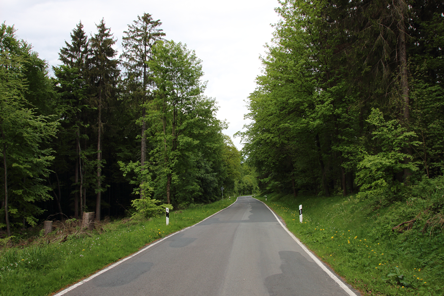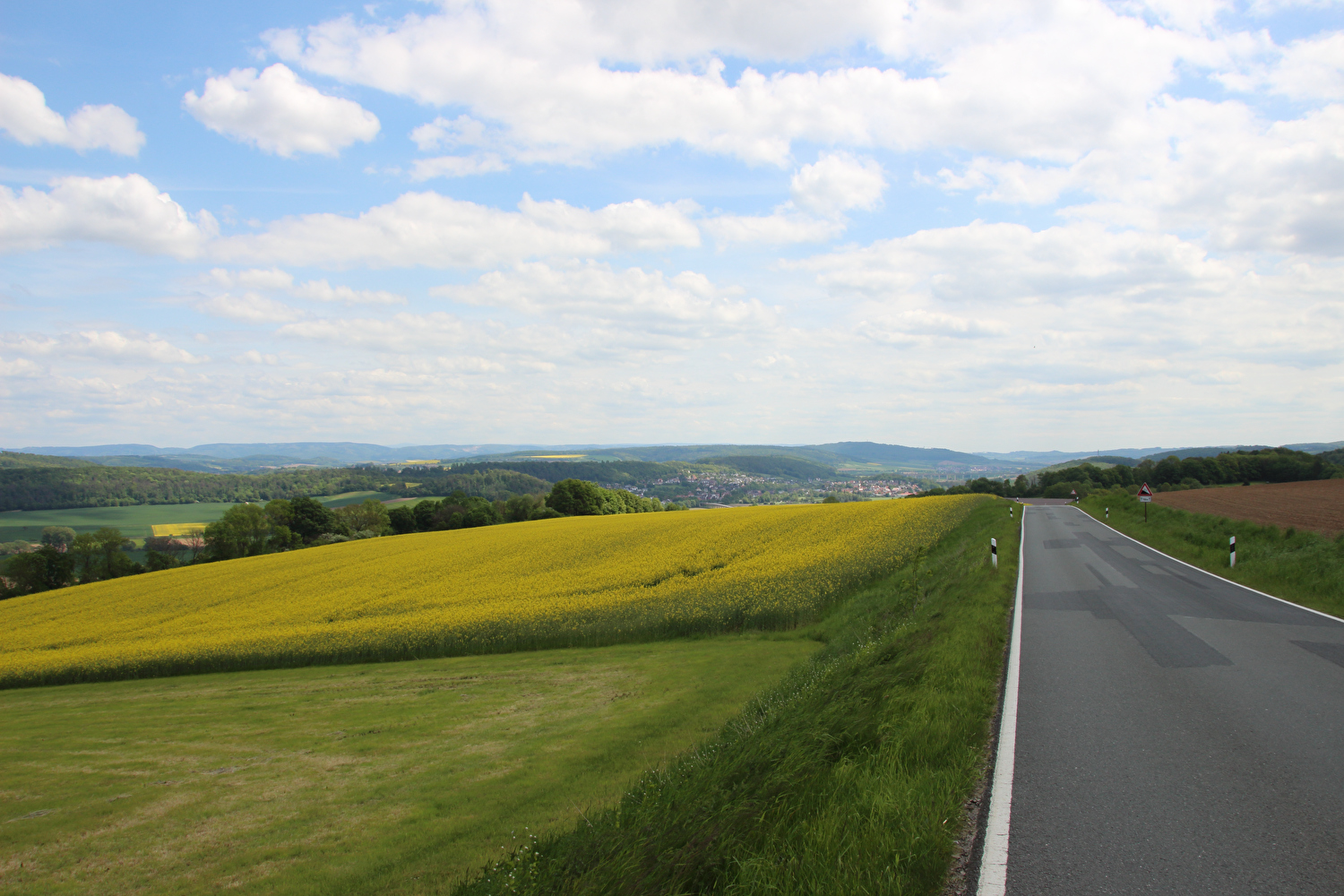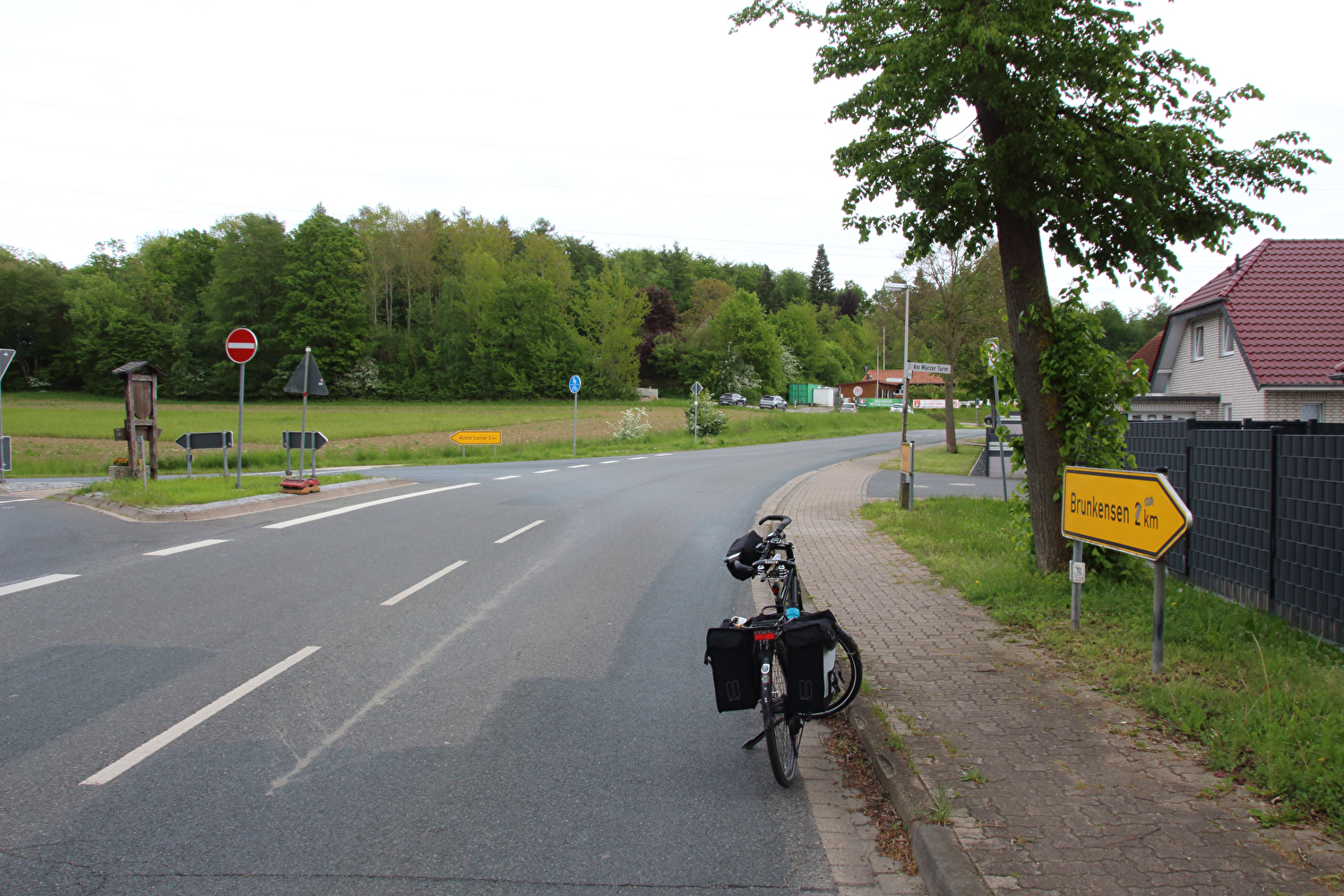 Beschreibung | „In Kreiensen steigt man nicht aus sondern um.“ An diesem Tag wurde von dieser Regel für Bahnreisende ein Ausnahme gemacht und die Tour planmäßig in Kreiensen gestartet. Damit wurde ein zeitkritischer Umstieg in Kreiensen vermieden. Die Tour startete bei freundlichem Wetter. Im Tagesverlauf versammelten sich zwar zunehmend mehr Wolken am Himmel, aber es blieb trocken und es bildete sich auch keine komplett geschlossene Wolkendecke aus. Die lange Brücke im Zuge der B64 zwischen Kreiensen und Greene überspannt nicht nur die Leine und den wenige Meter westlich daneben verlaufenden Oberwasserkanal an sich, sondern auch eine größere landswirtschaftlich genutzte Fläche, die bei Hochwasser überflutet werden kann, ohne dass dadurch die Straße zwischen Kreiensen und Greene überflutet werden würde. In Greene überspannt das Luhetal-Viadukt, ein Eisenbahnviadukt, das gleichnahmige Tal. In Norddeutschland gibt es keine vergleichbaren Bauwerke. Die etwas seltsame Bezeichnung „Hilskamm/Jägerlinde“ für die Passhöhe rührt daher, dass „Jägerlinde“ einen Baum, eben eine Linde (Tilia) auf der Passhöhe bezeichnet. Die Südrampe zur Passhöhe Hilskamm/Jägerlinde steigt nach der Überquerung des Hillebachs bei Wenzen zunächst in direkter Falllinie mit bis zu 11 % an. Erst ab der ersten Kurve, die oberhalb der Bahnstrecke Altenbeken–Kreiensen und der Landkreisgrenze zwischen Northeim und Holzminden liegt, nimmt die Steigung spürbar ab und bleibt bis zur Passhöhe im einstelligen Bereich. Die Bahnabreise ab Alfeld bot wie schon die Bahnanreise die Vorteile von stündlicher Anbindung im Nahverkehr und umsteigefreier Fahrt. |